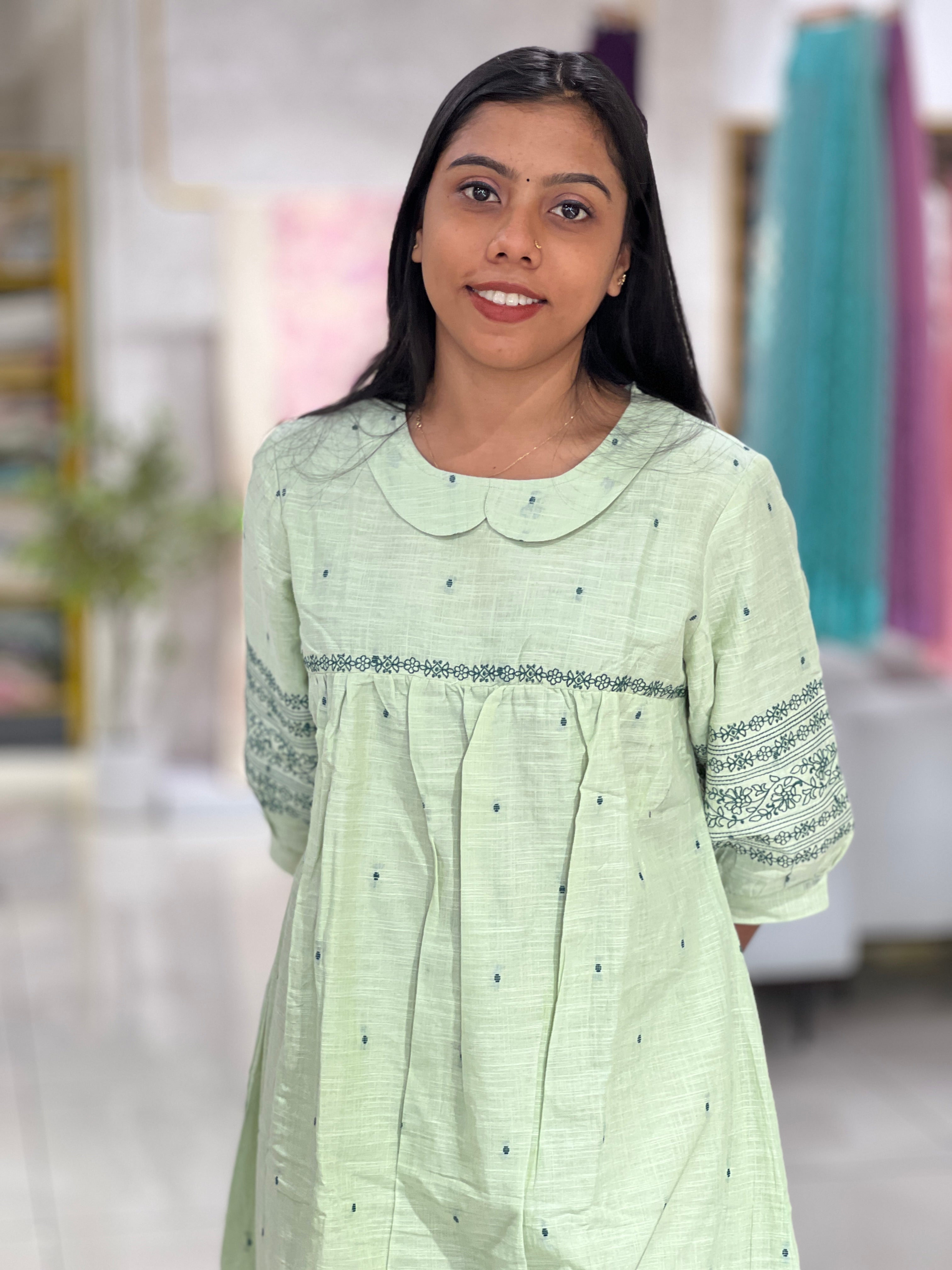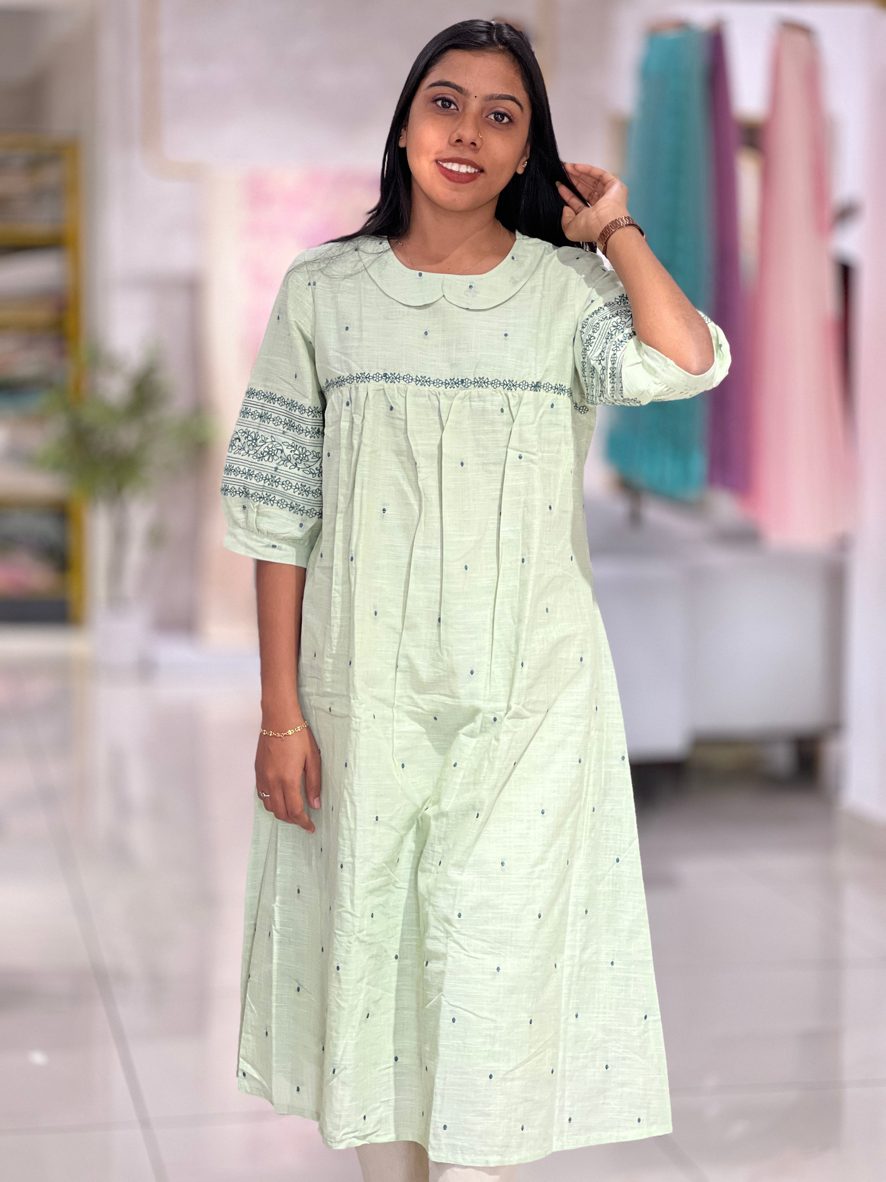 - Style: Machine Embroidery On Yoke, A-line Pattern With Gathering Detailing