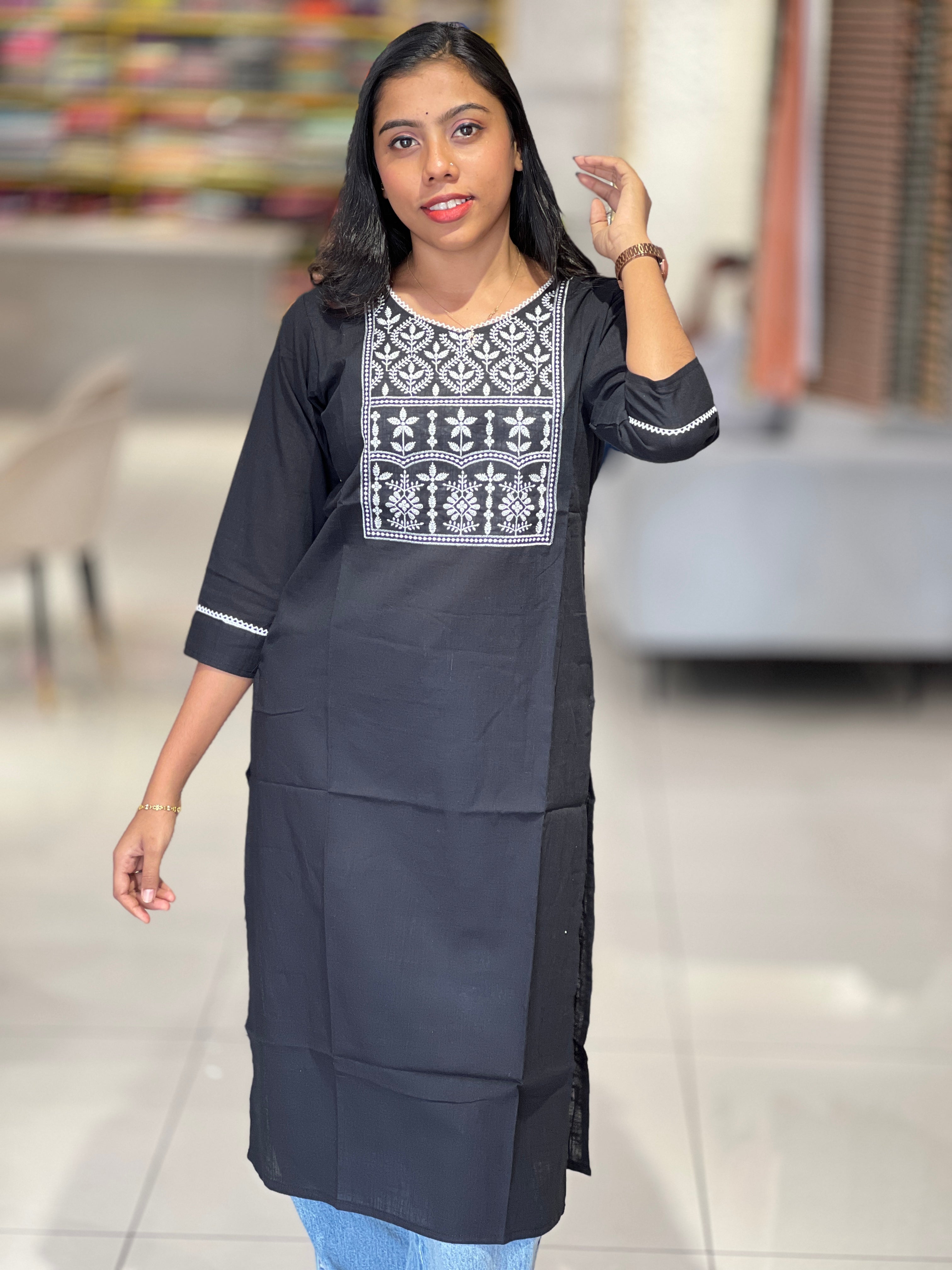 - Style: Machine Embroidery on Yoke, Side Slit Pattern, Lace Detailing