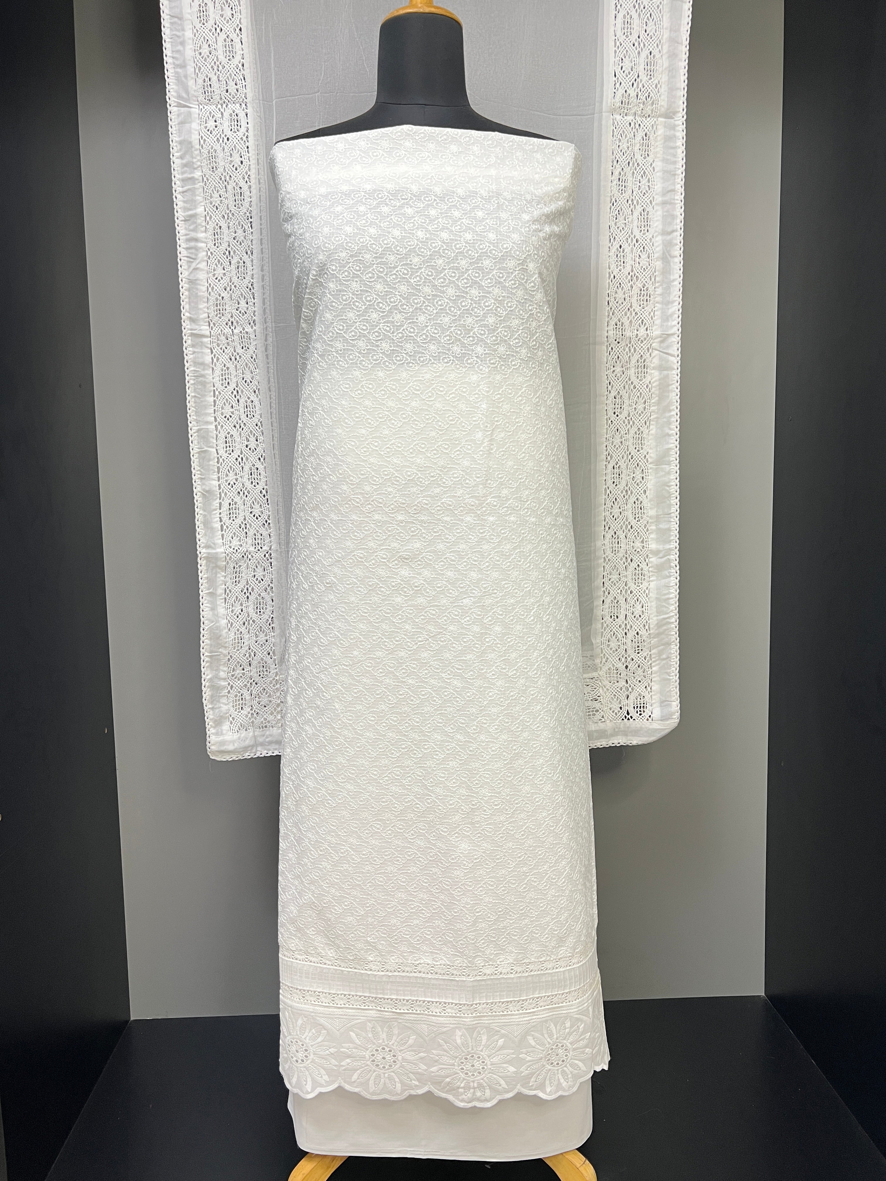 - Style: Machine Embroidery, Brocade Pattern, Lace Detailing, Schiffli Patterned Lower Hem Portion
