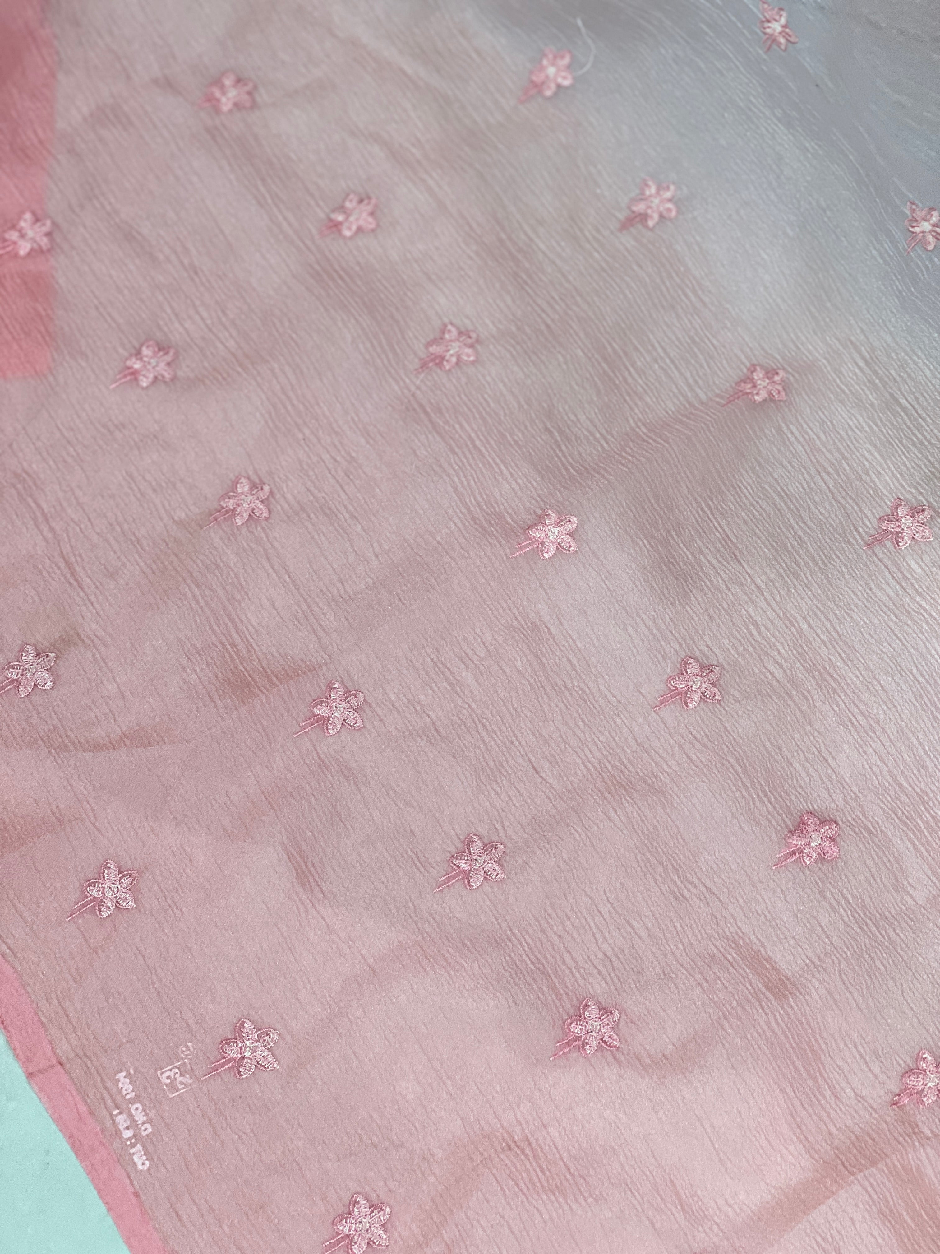 • Machine Embroidery Detailed Crushed Organza Saree | BLD1658
