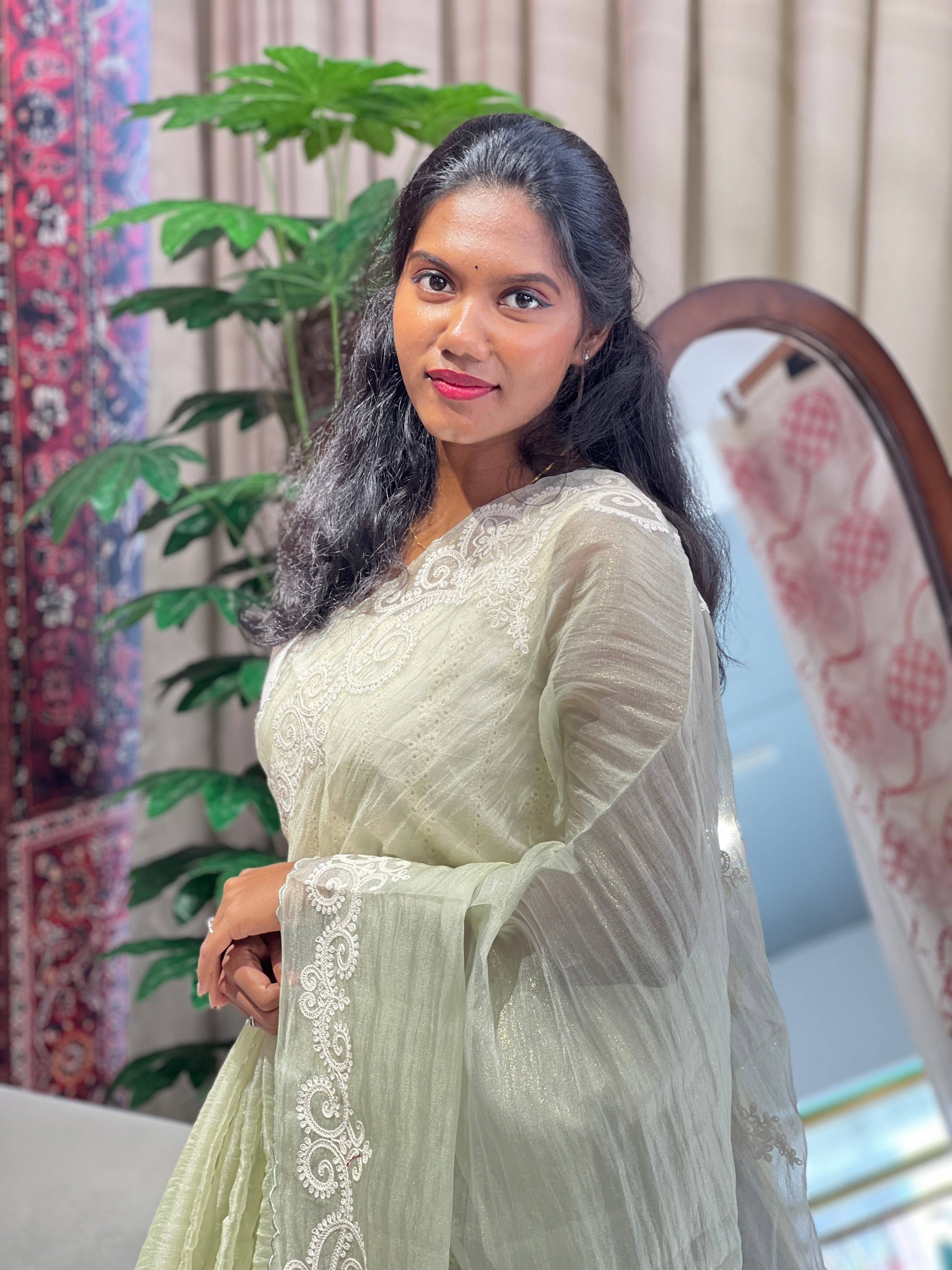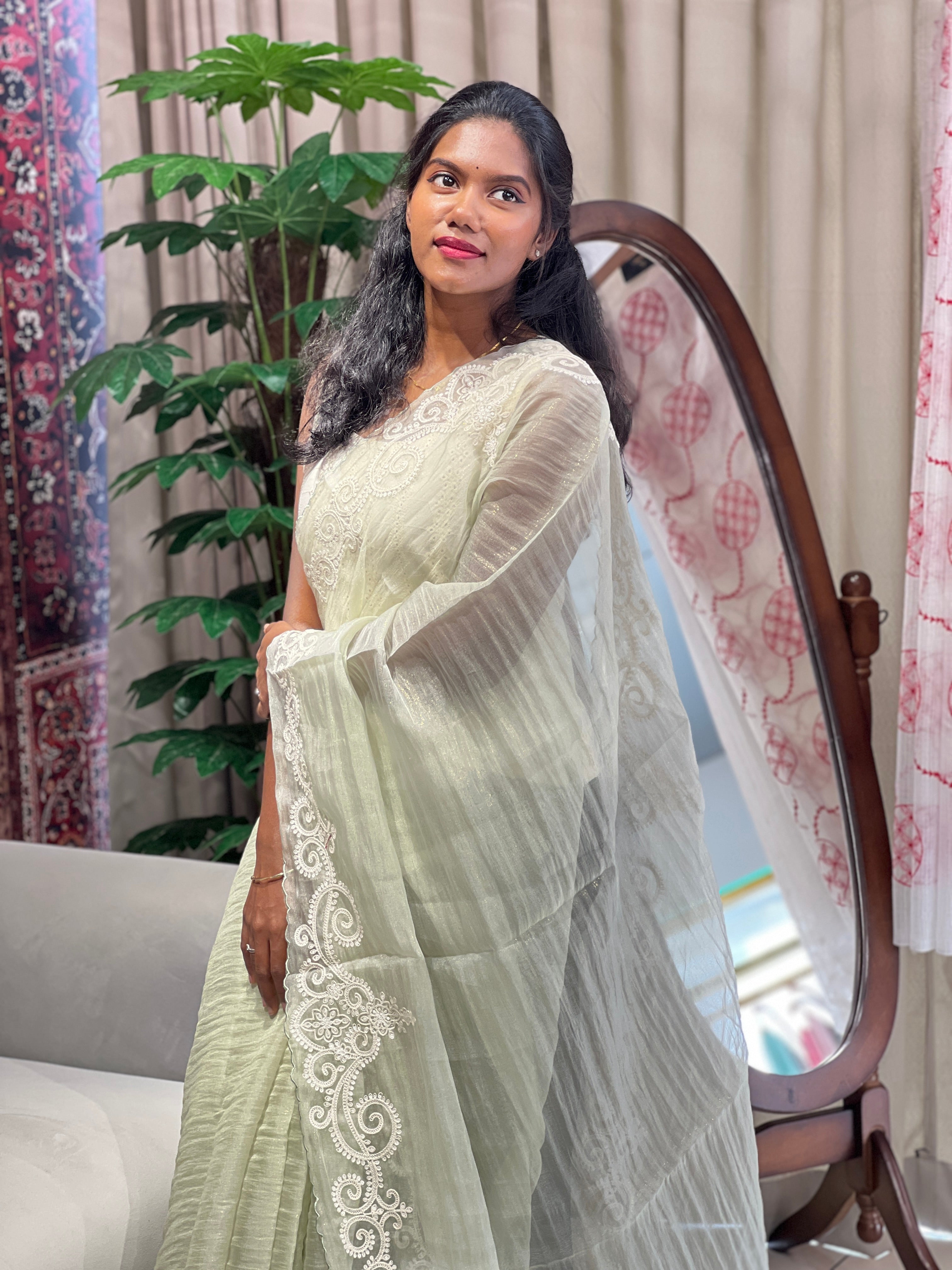• Machine Embroidery Detailed Crushed Shimmer Organza Saree | BLD2002