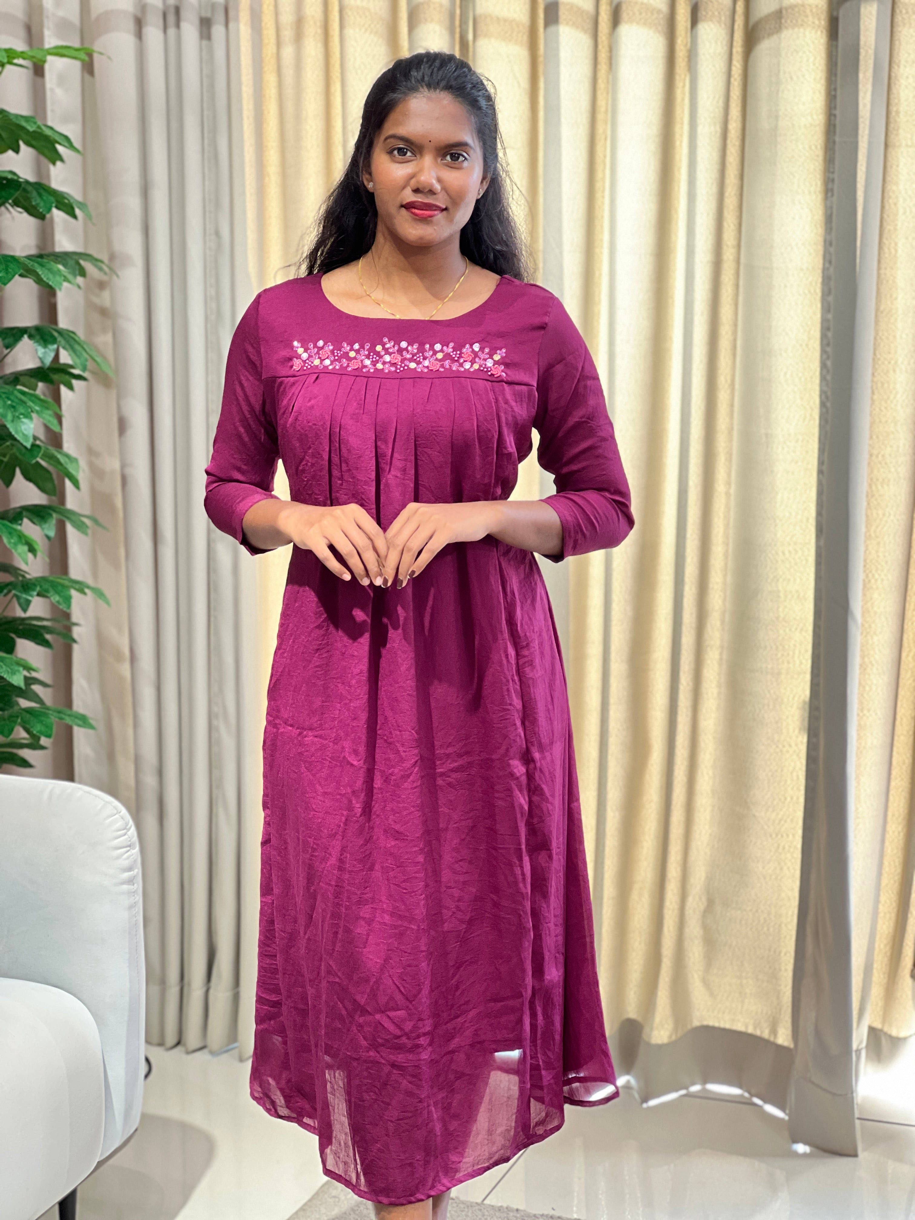 • Machine Embroidery Detailed Crushed Silk Kurta | SRF178