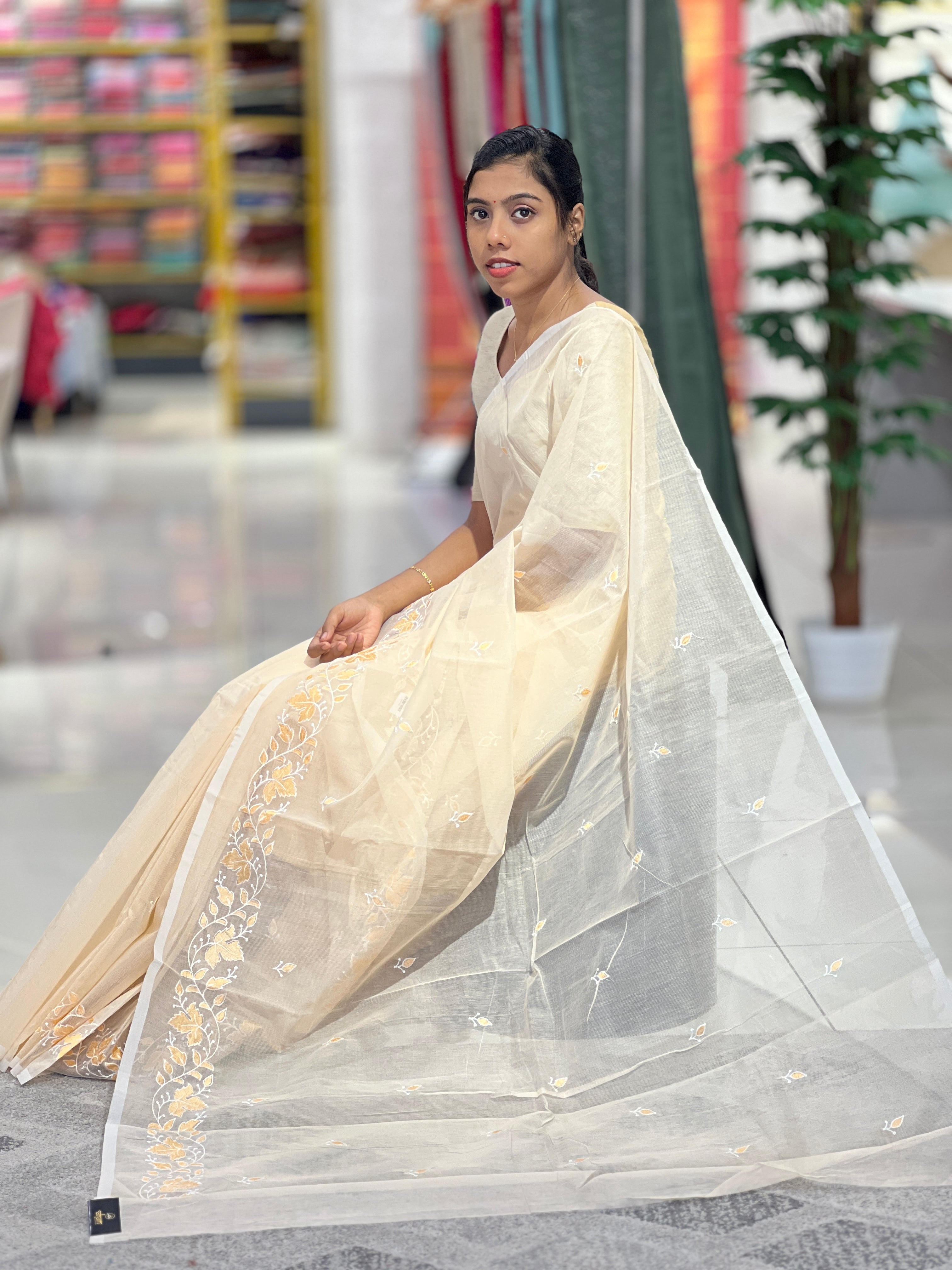 - Style: Scattered Leaf Embroidery, Machine Embroidered Borders