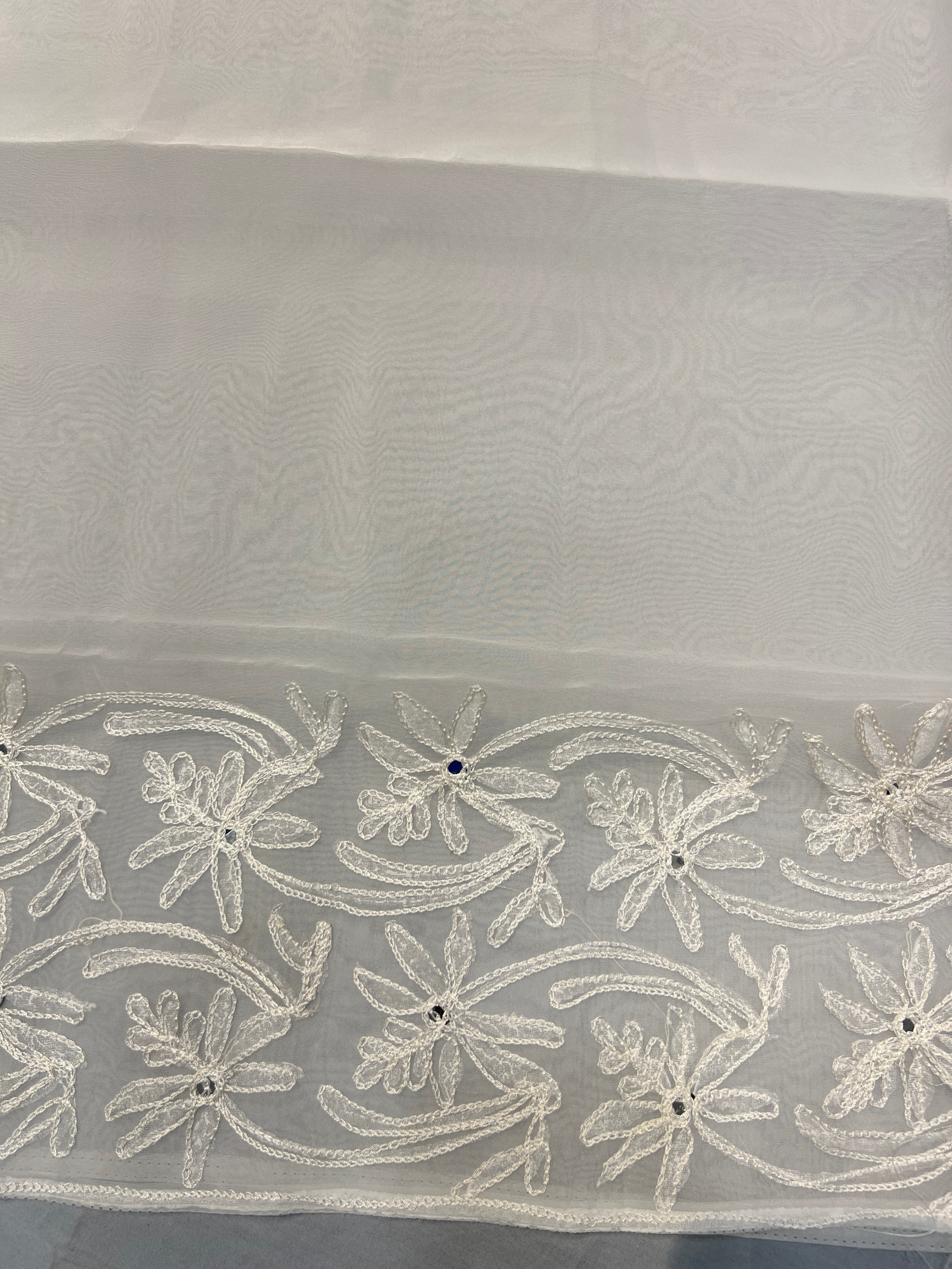 - Style: Print Highlighted with Machine Embroidery Detailing, Zig Zag Pattern, Floral Pallu Detailing