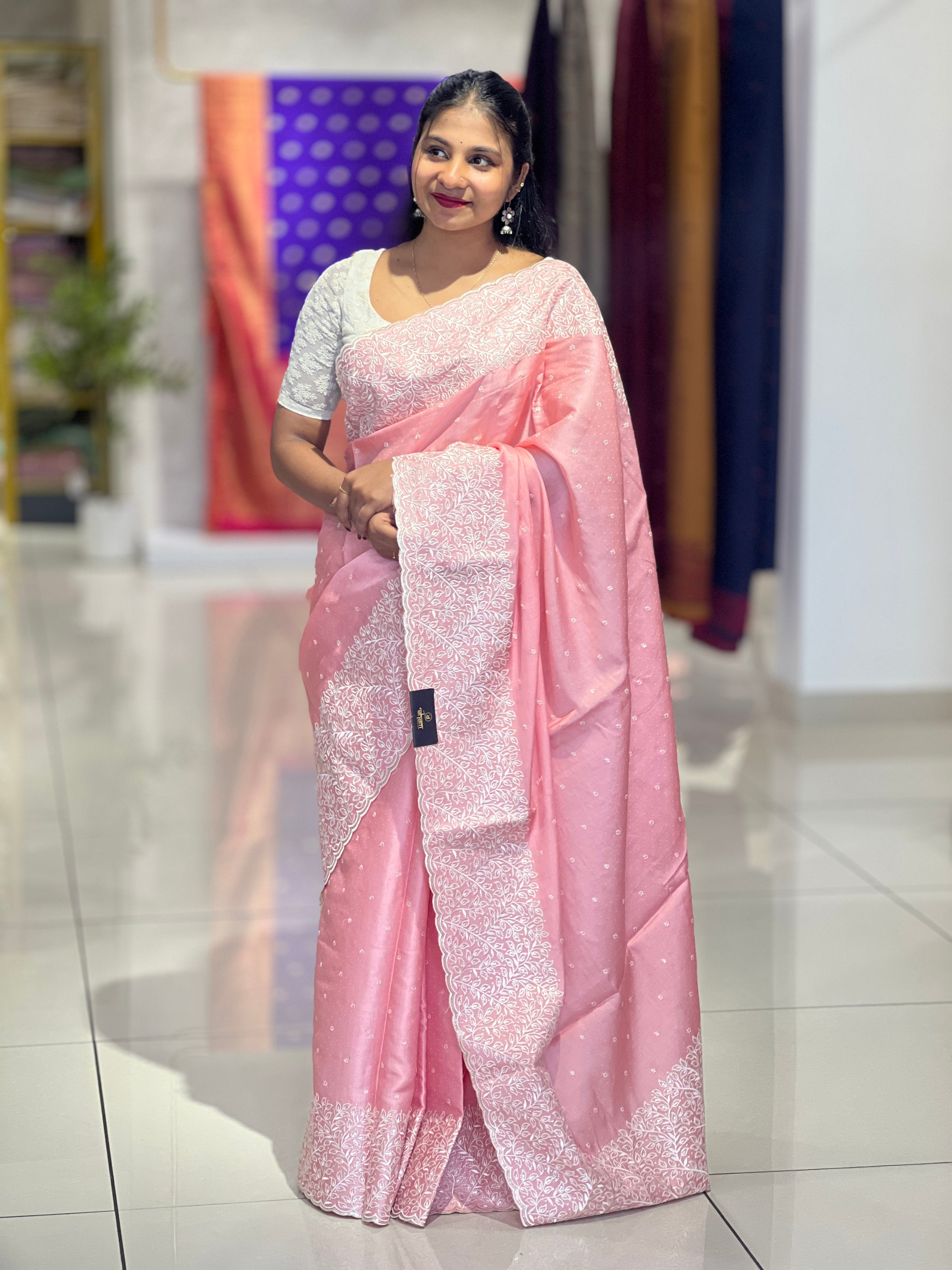 Machine Embroidery Detailed Semi Tussar Saree | SUN545