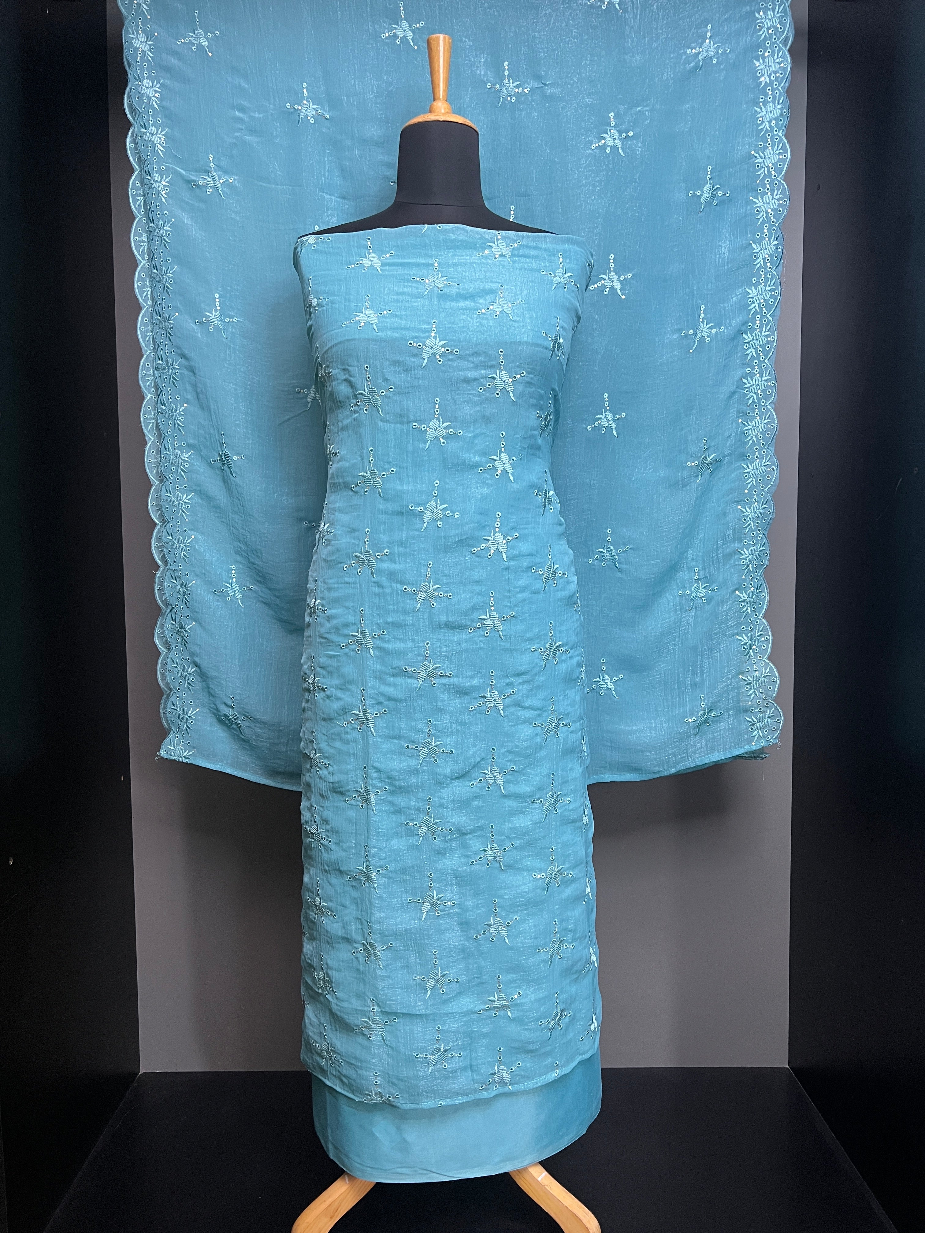 • Machine Embroidery Detailed Shimmer Organza Salwar Set | SW2155