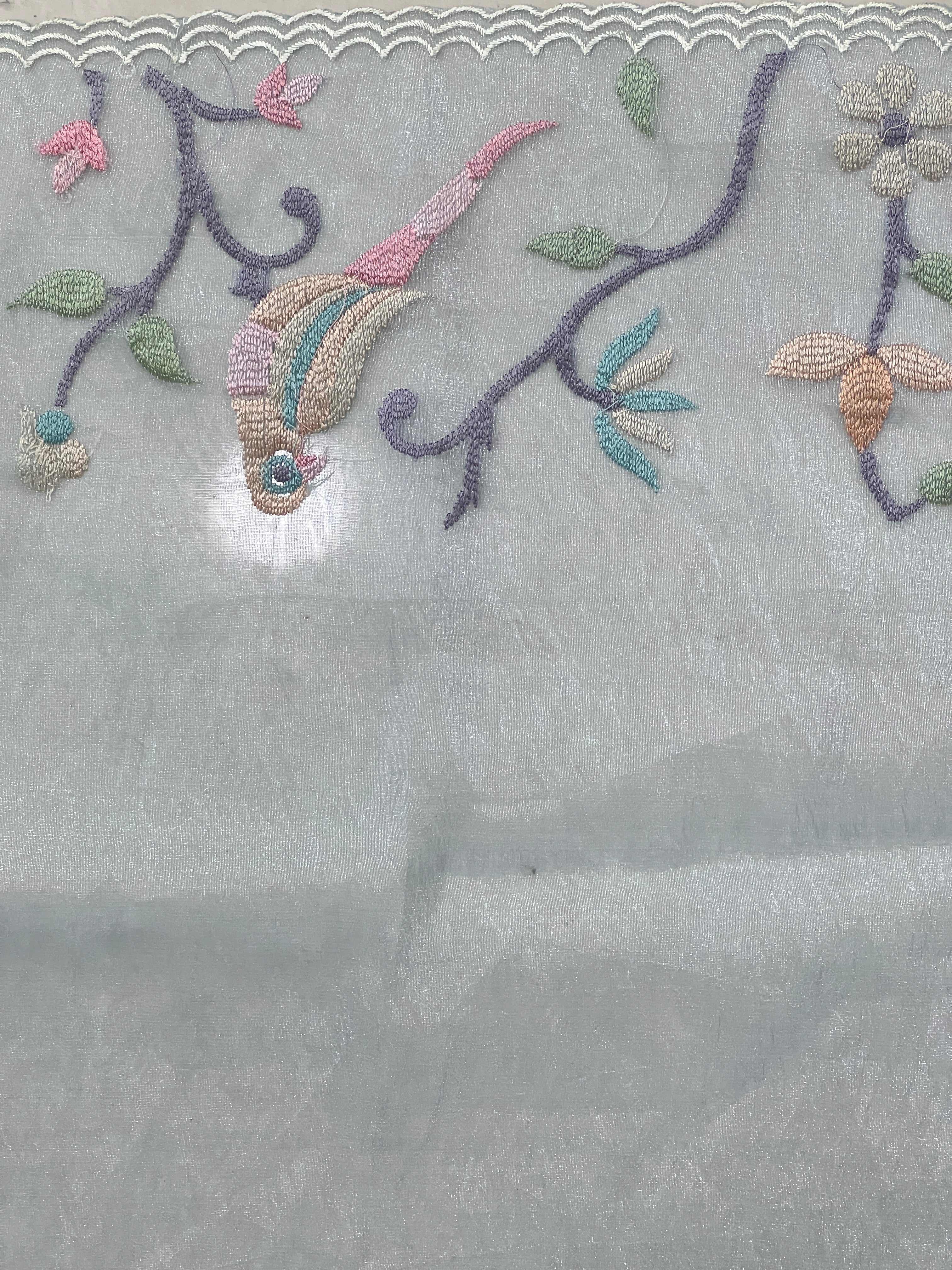 • Style: Floral & Birds Machine Embroidery, Scallop Edges