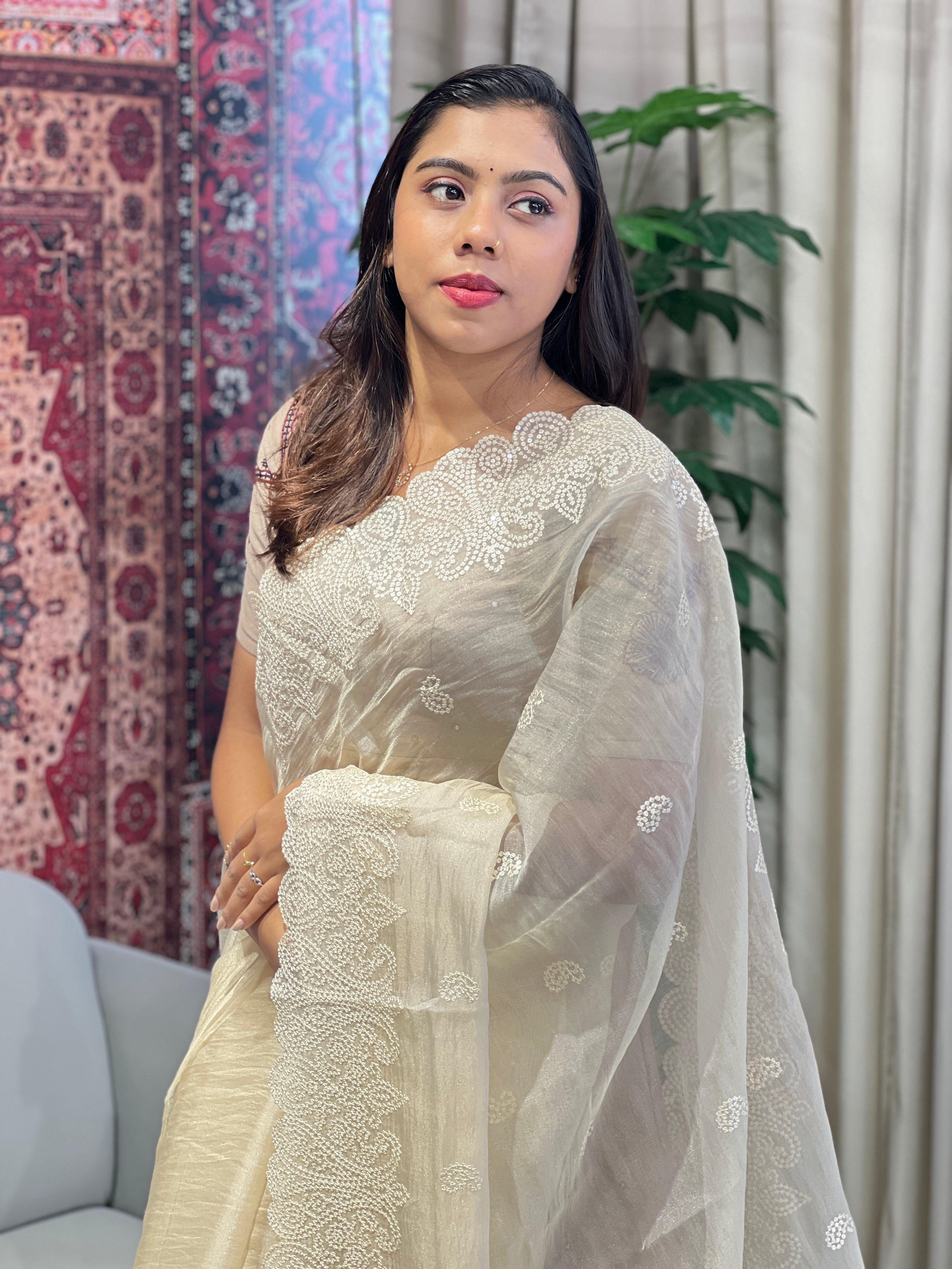 - Style: Machine Embroidery With Sequins Highlight, Paisley Pattern, Scallop Finish