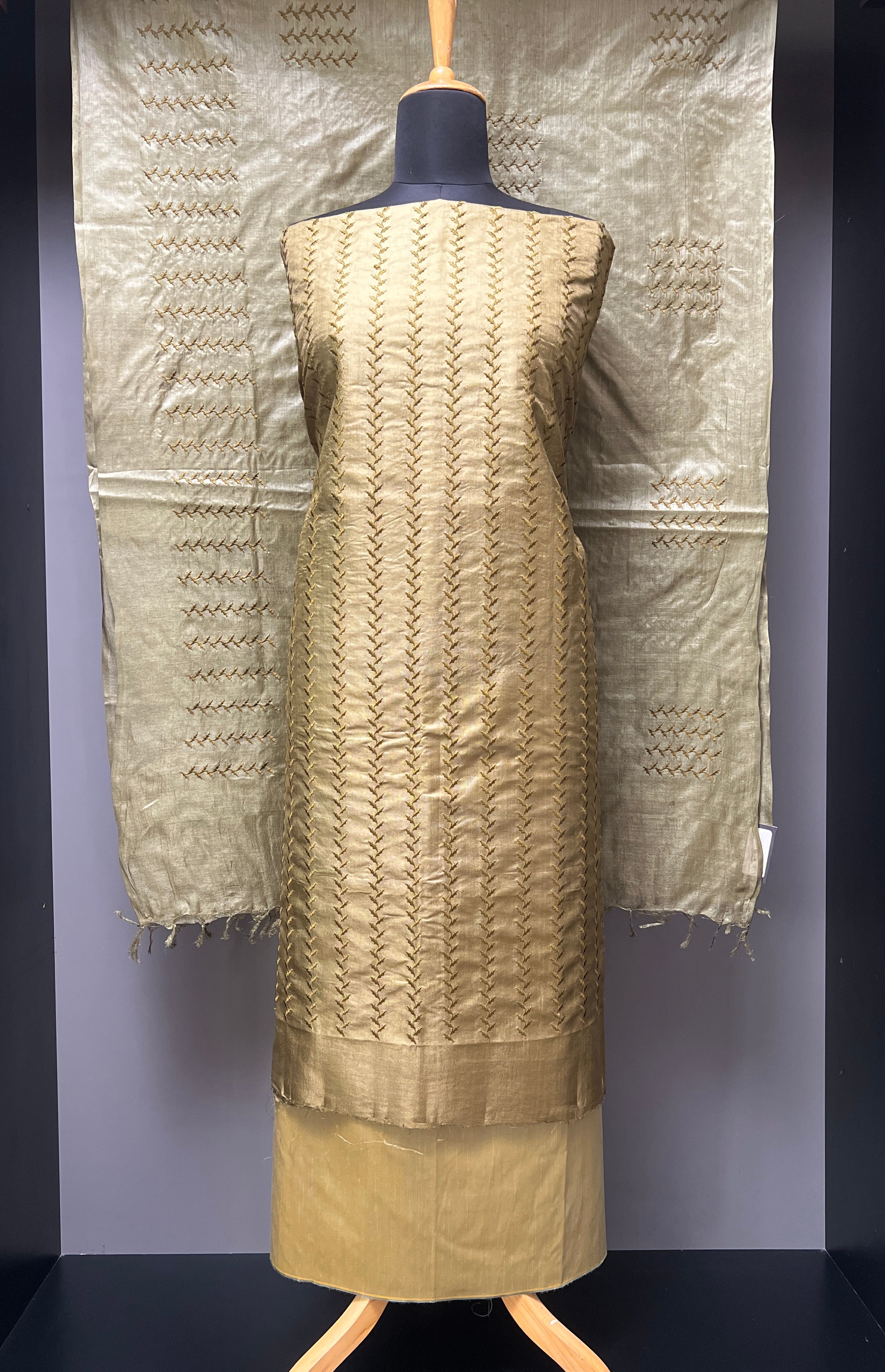 Machine Embroidery Detailed Tussar Salwar Set | MNH495