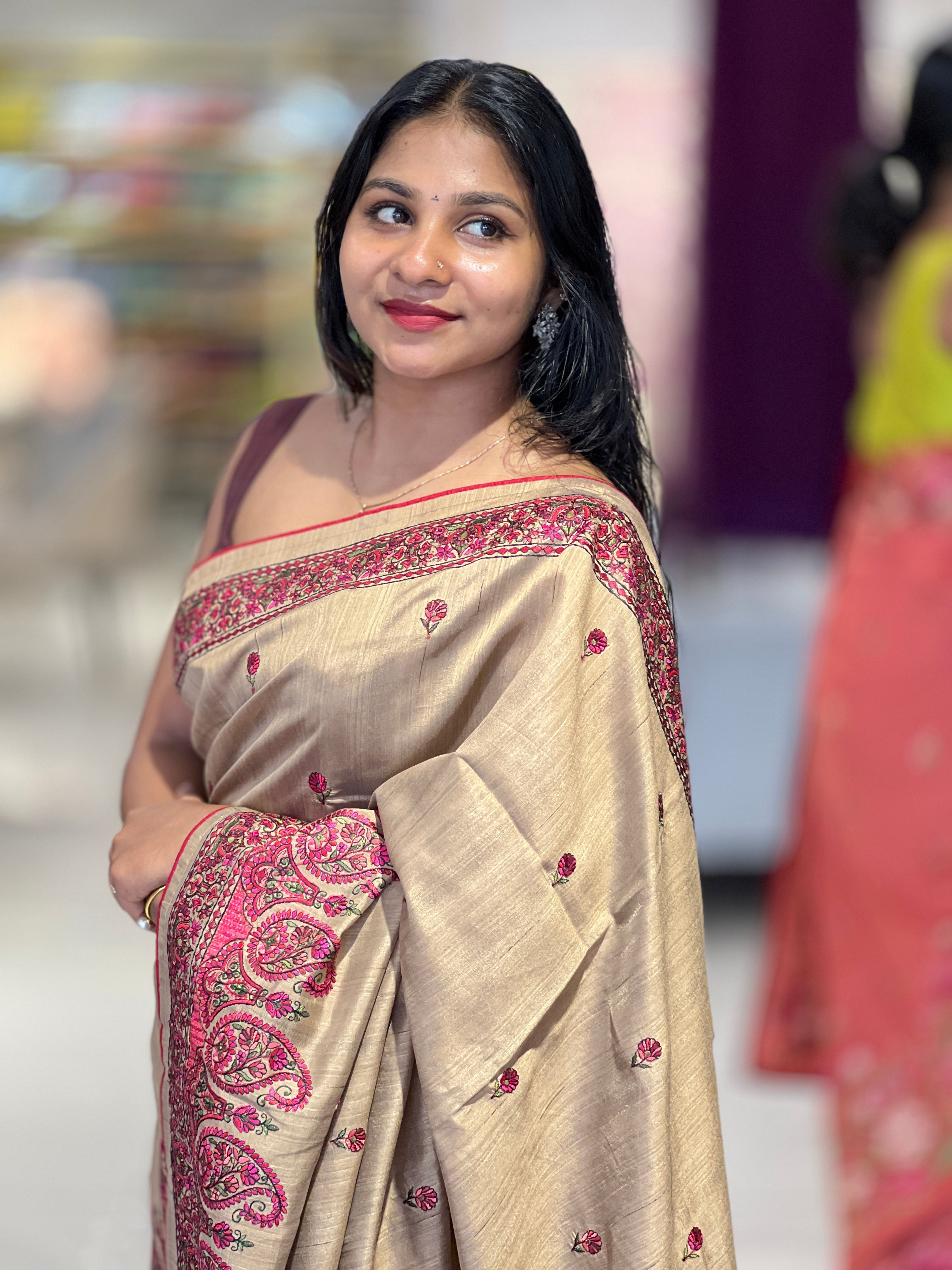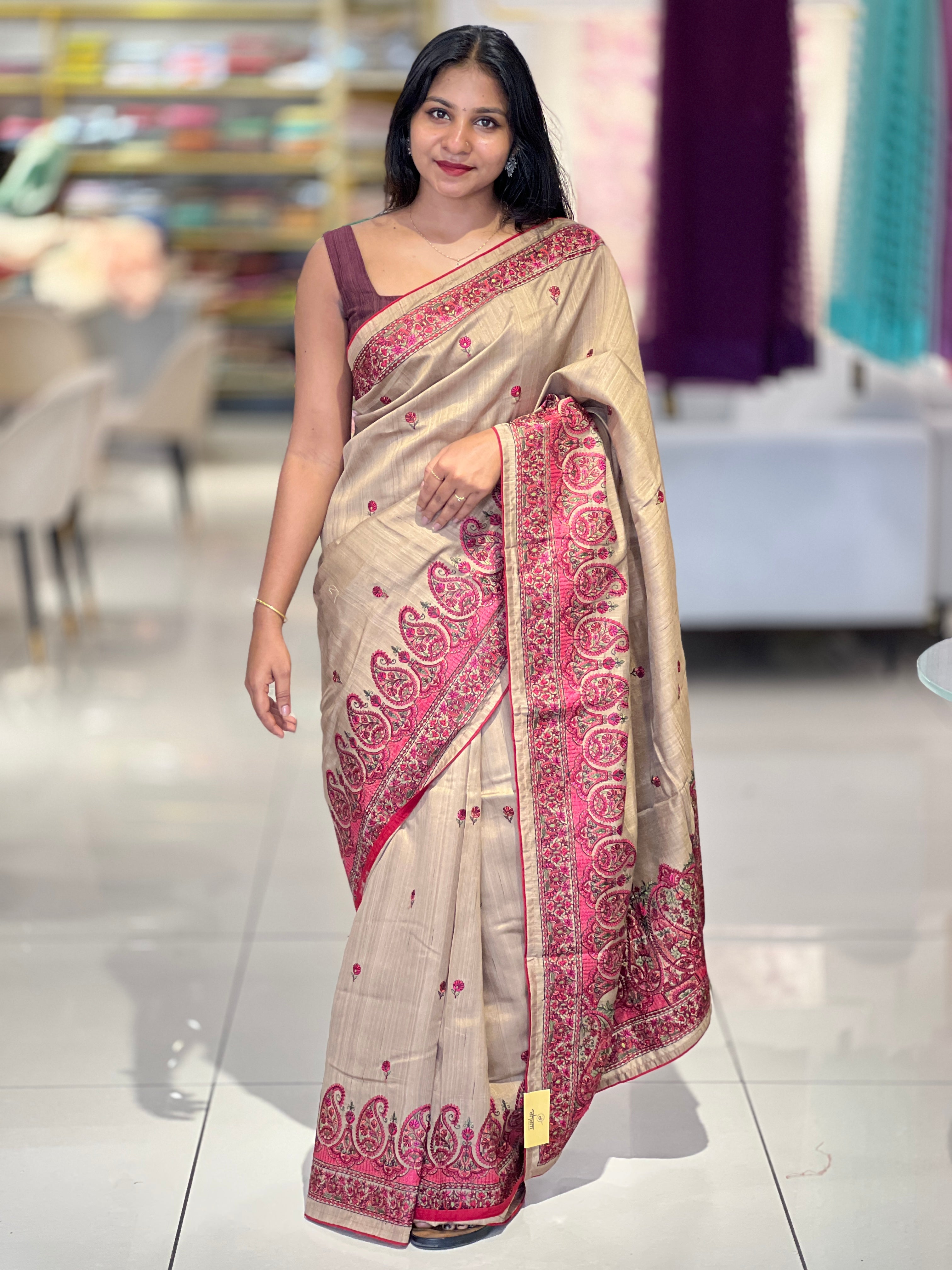 Machine Embroidery Detailed Tussar Saree | SUN413