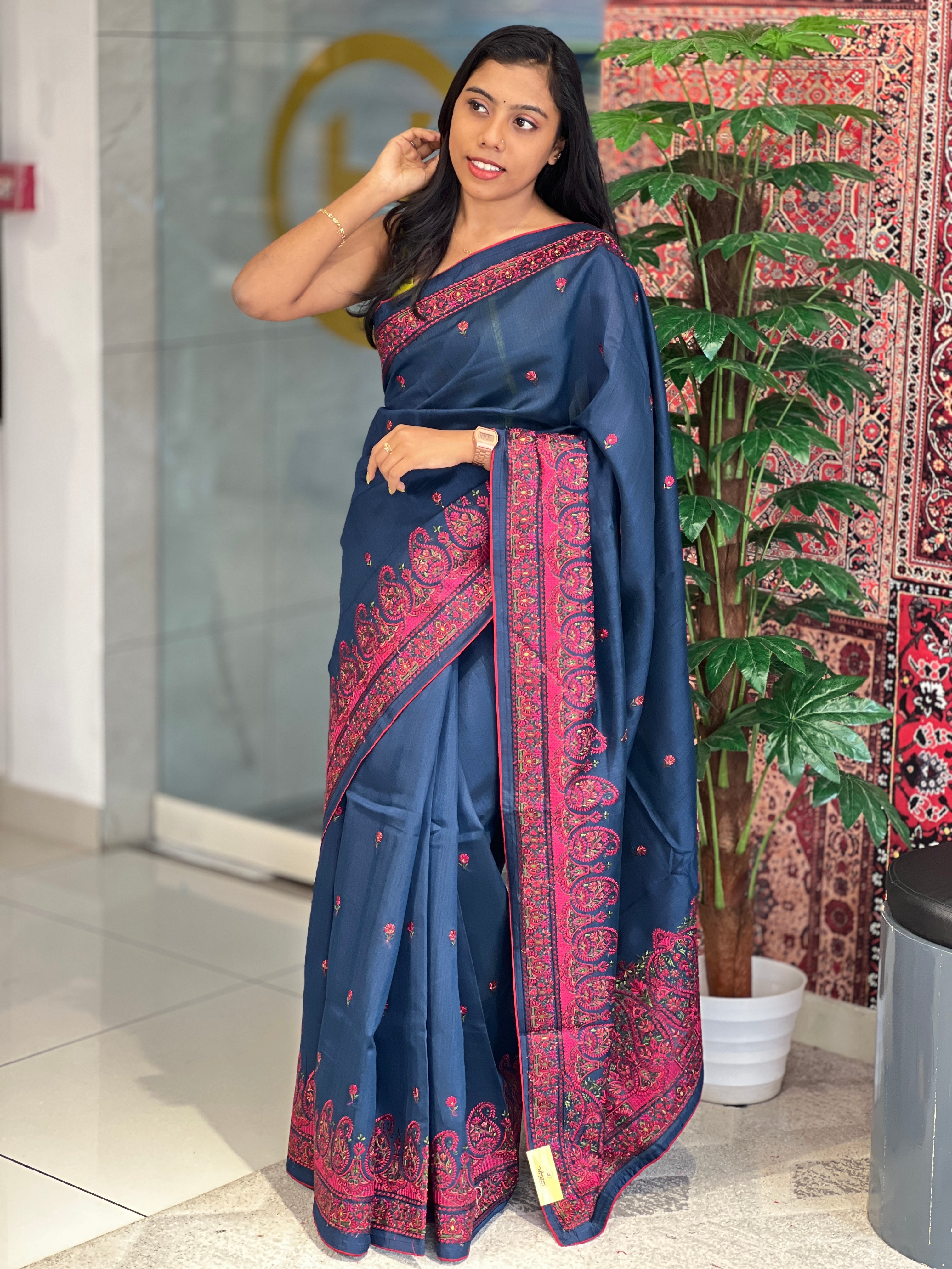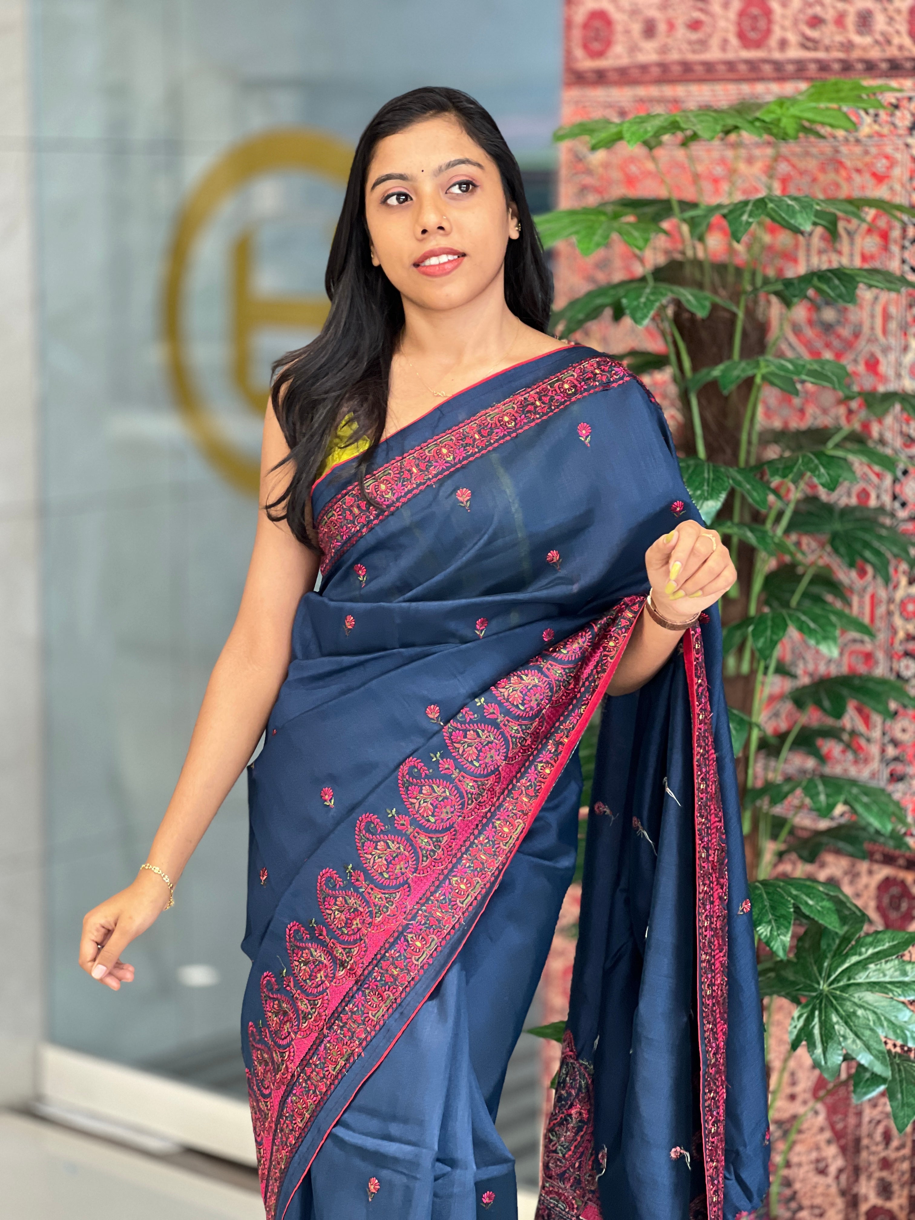 Machine Embroidery Detailed Tussar Saree | SUN416