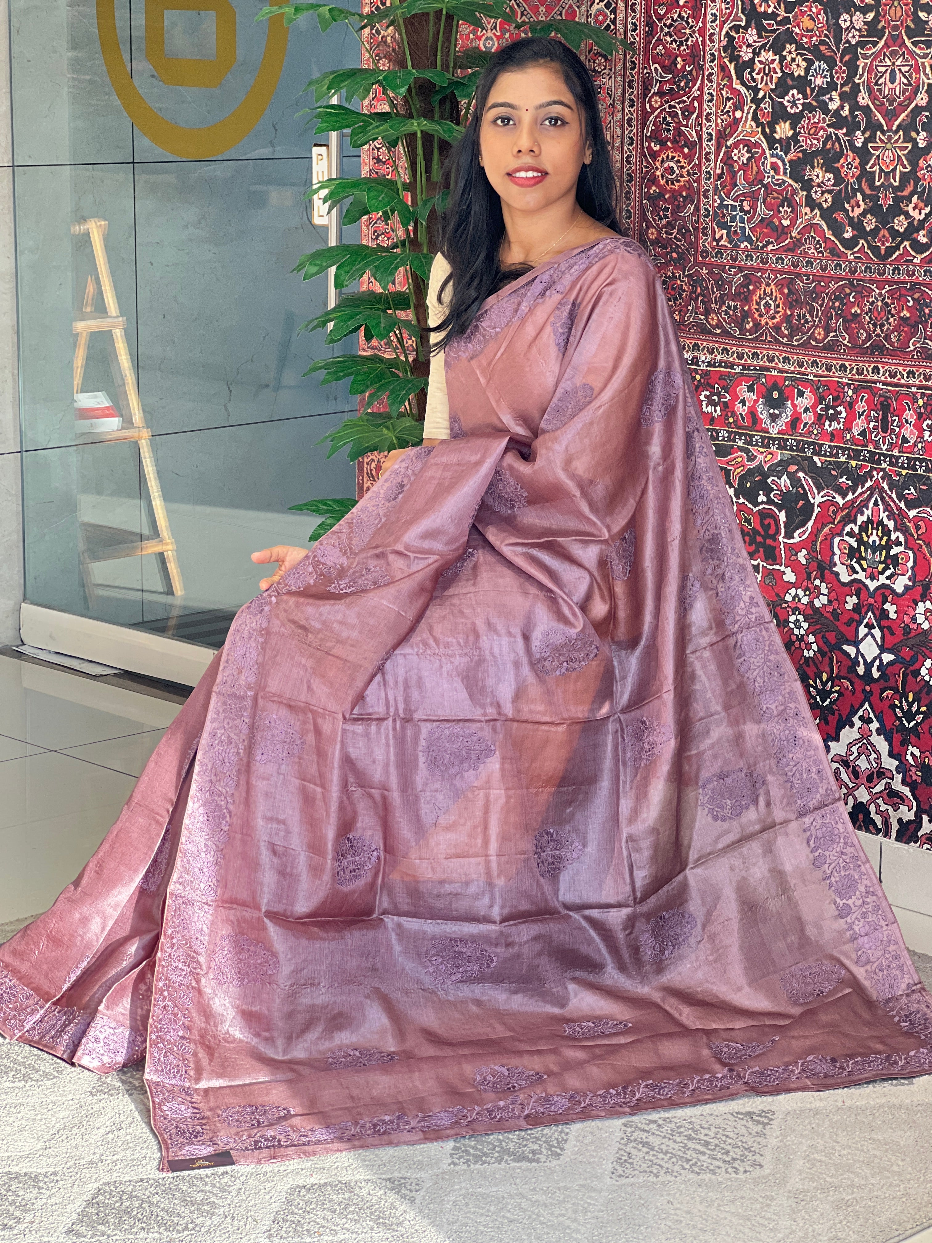 • Machine Embroidery Detailed Tussar Saree | YNG573