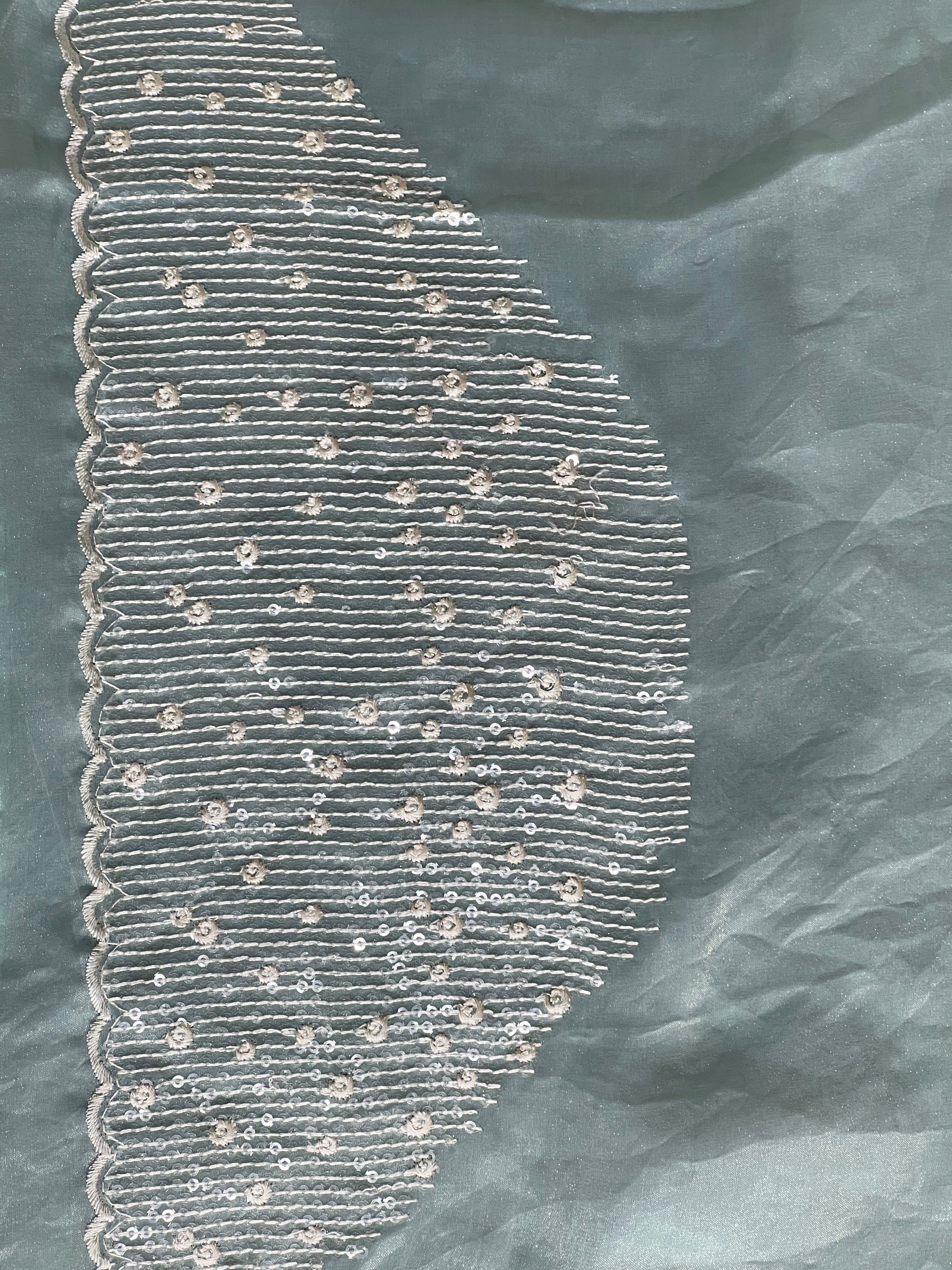 - Style: Machine Embroidery Detailed Border, Scallop Finish