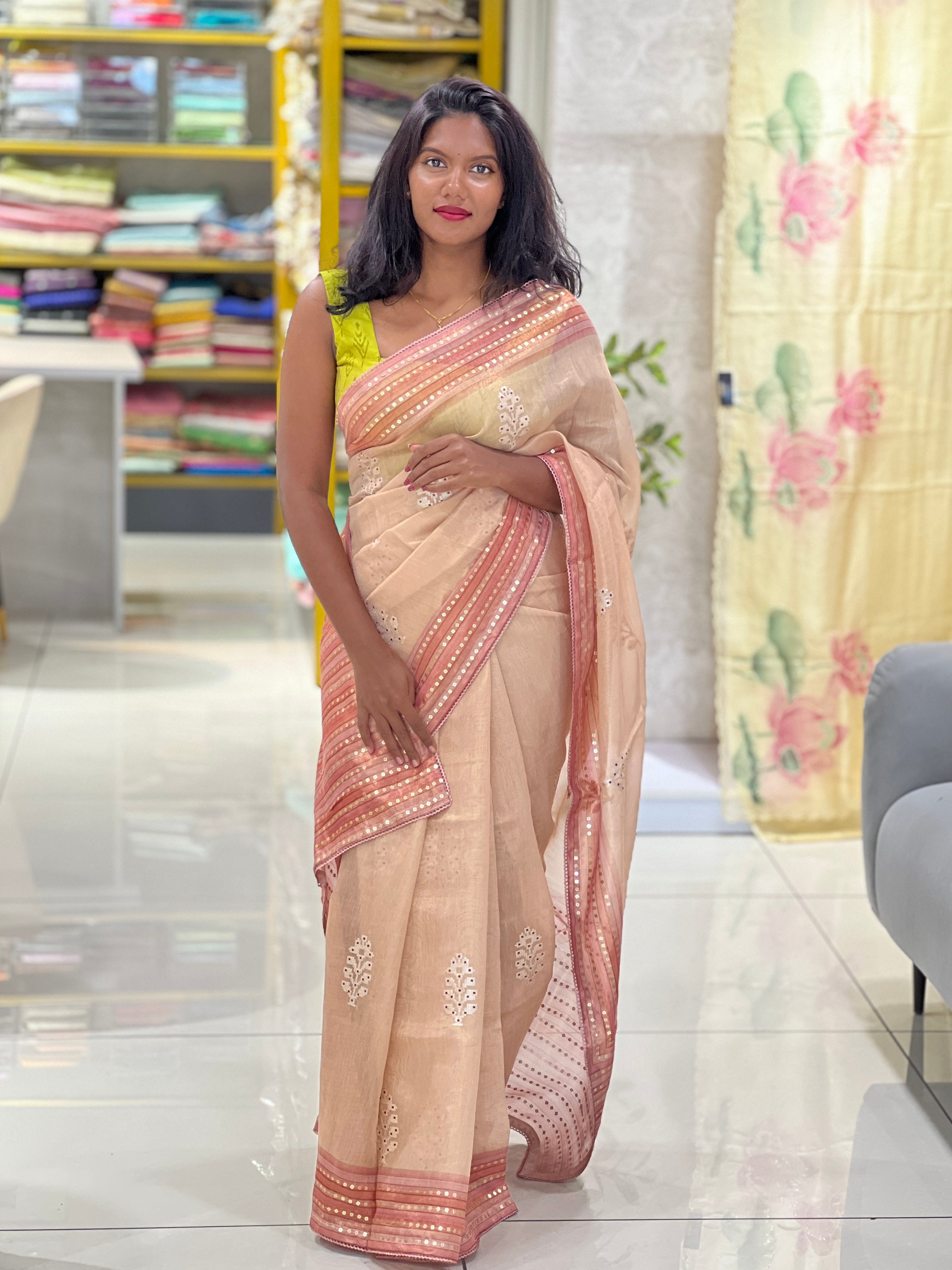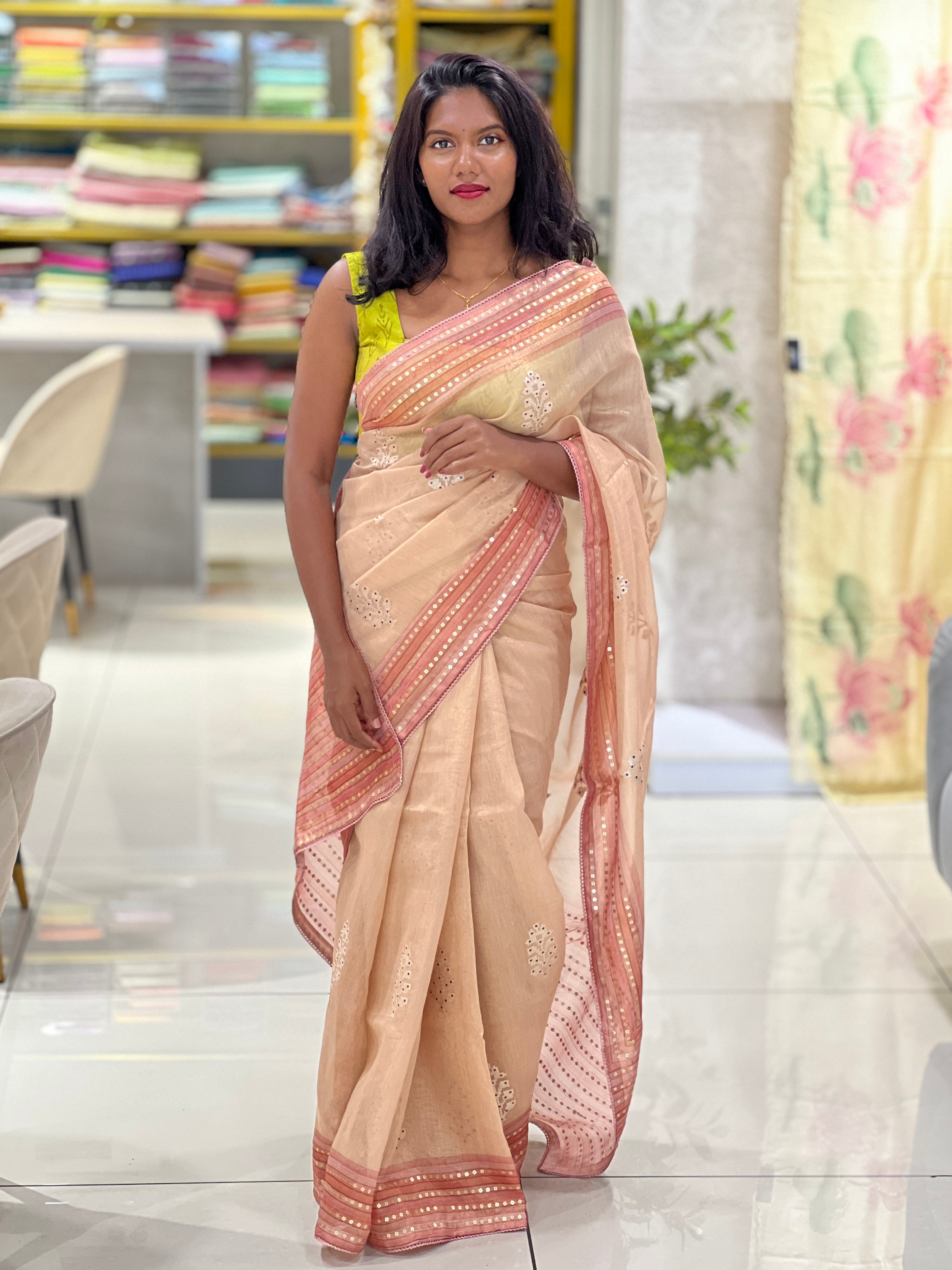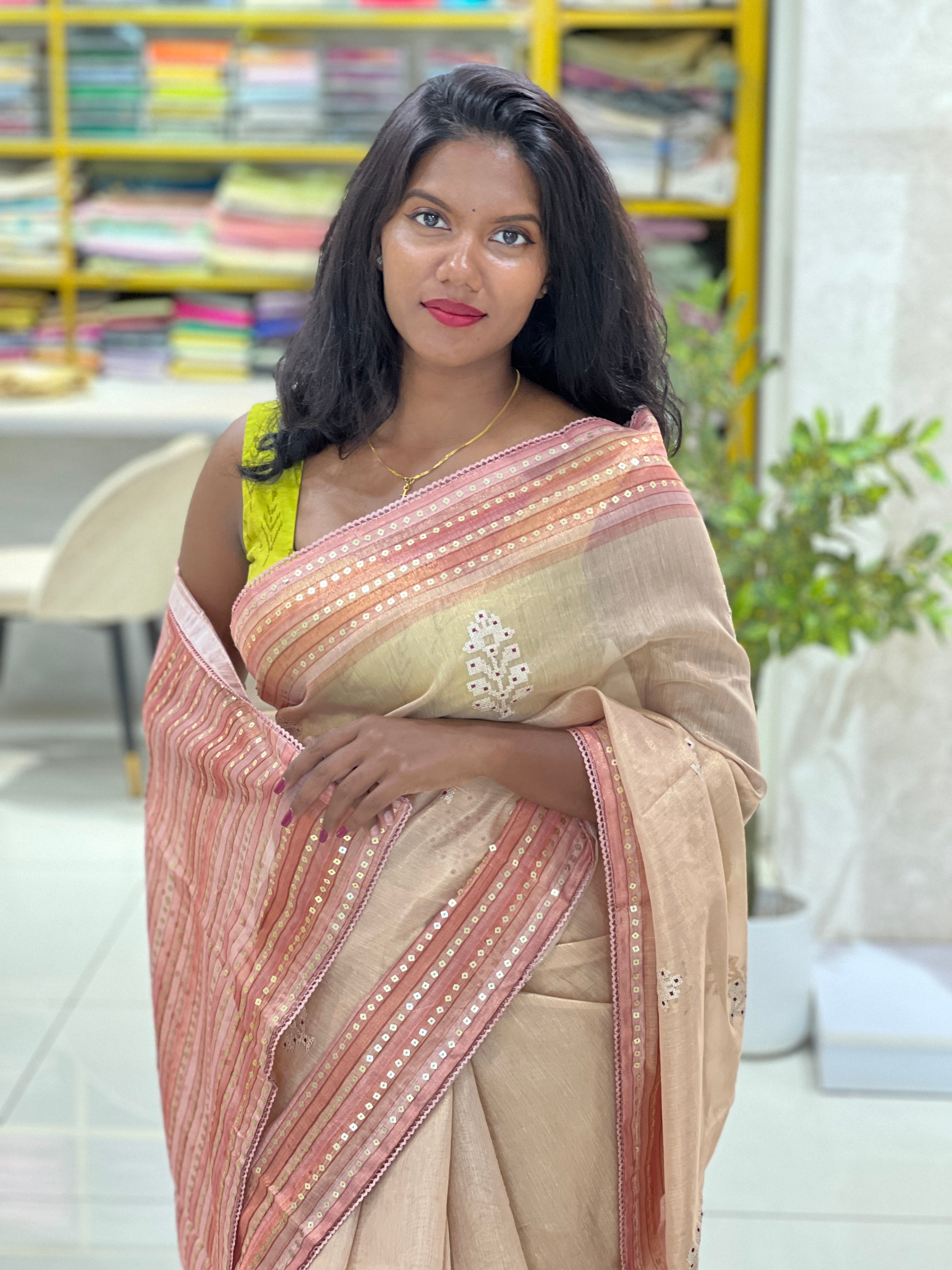 - Style: Machine Embroidery, Leaf Pattern, Pallu and Border Detailing
