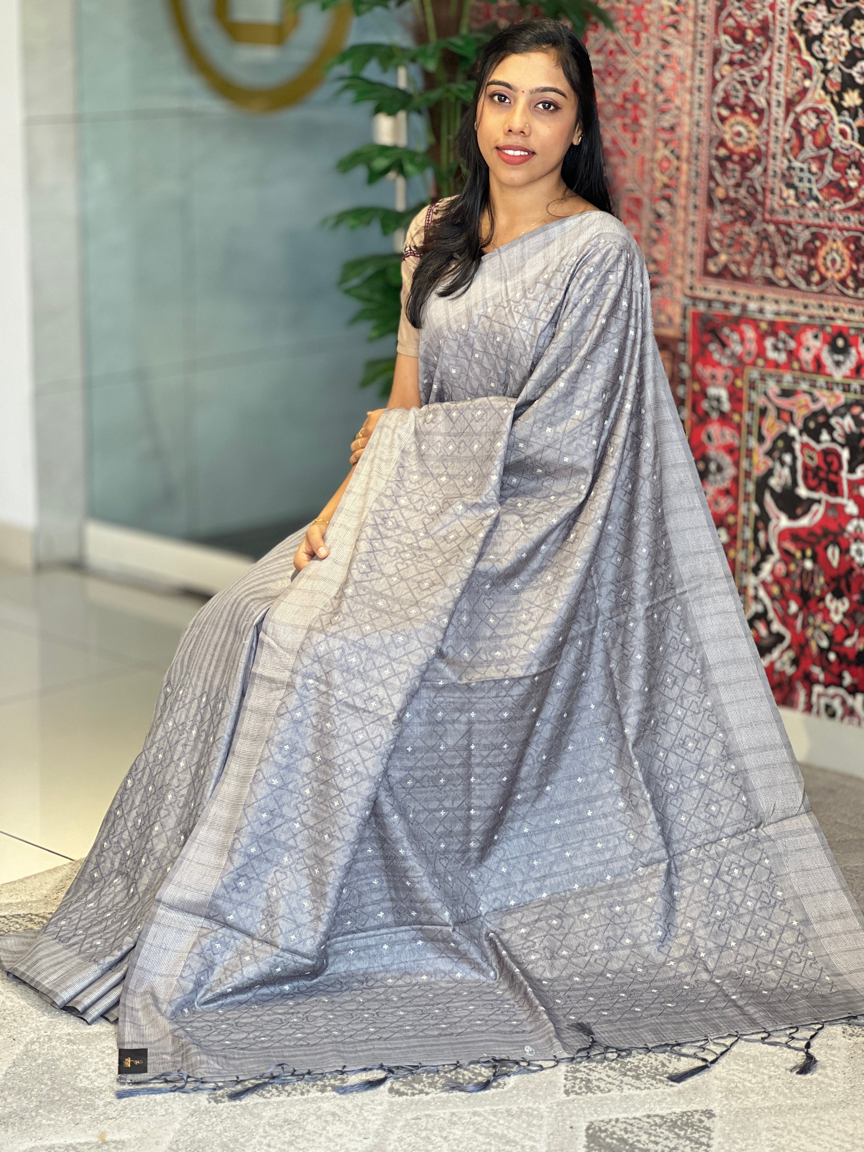 - Style: Machine Embroidery Geometric Pattern, Machine Kantha Border Detailing, Multi Tassels Attached