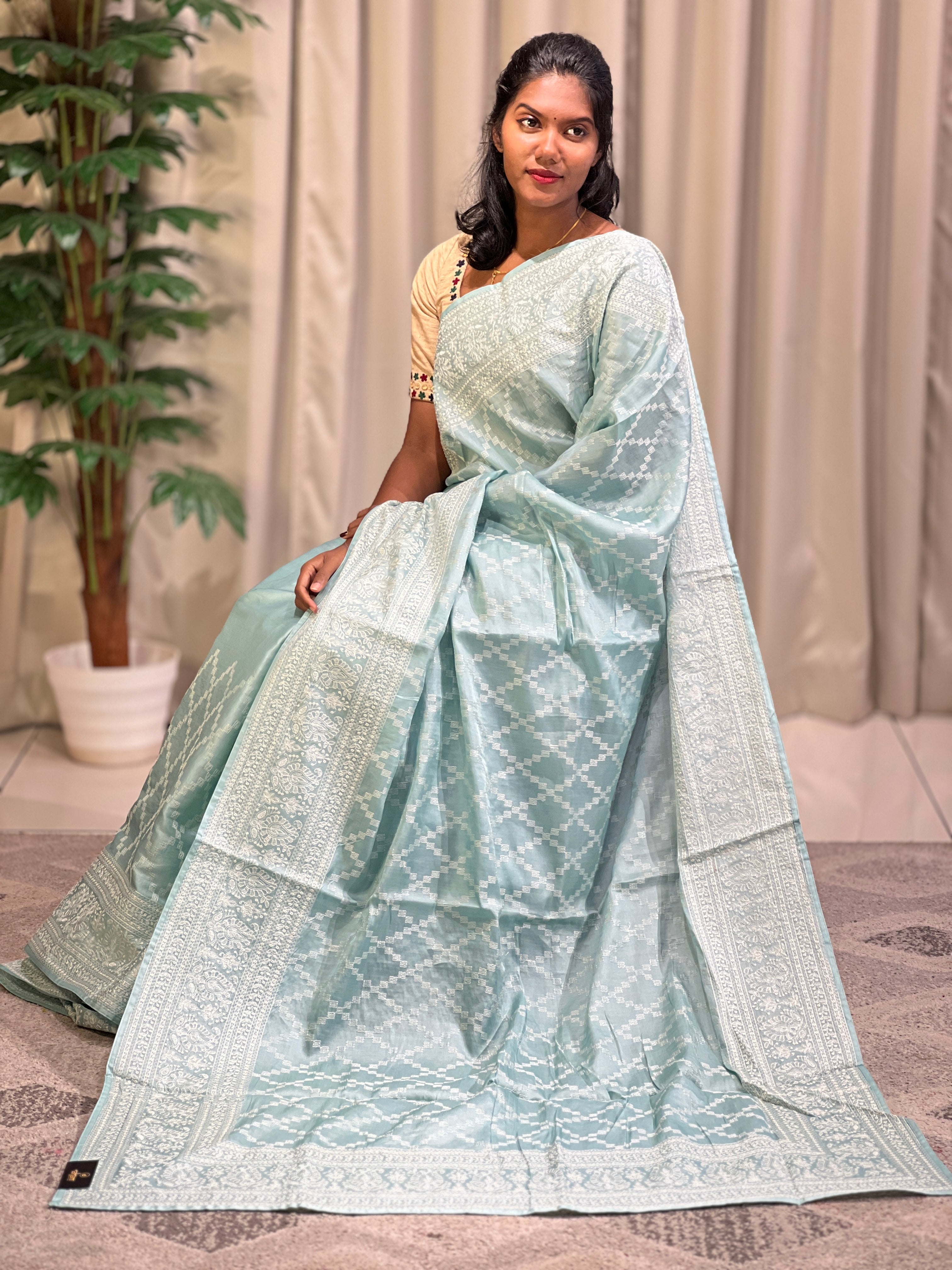 Machine Embroidery Geometric Patterned Tussar Finish Saree | SUN366
