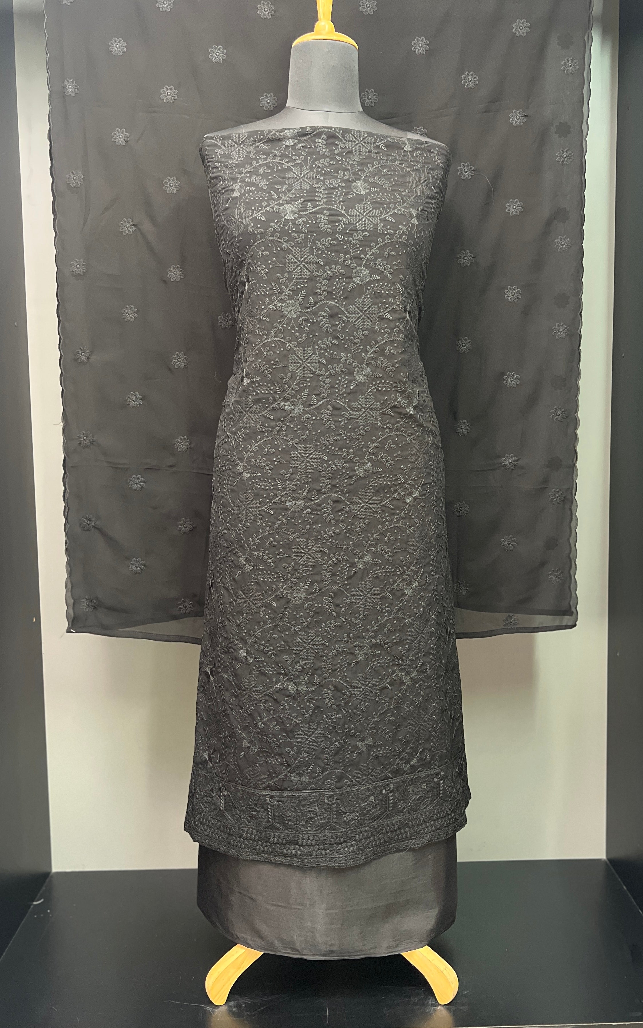- Style: Lucknowi Inspired Machine Embroidery Detailing