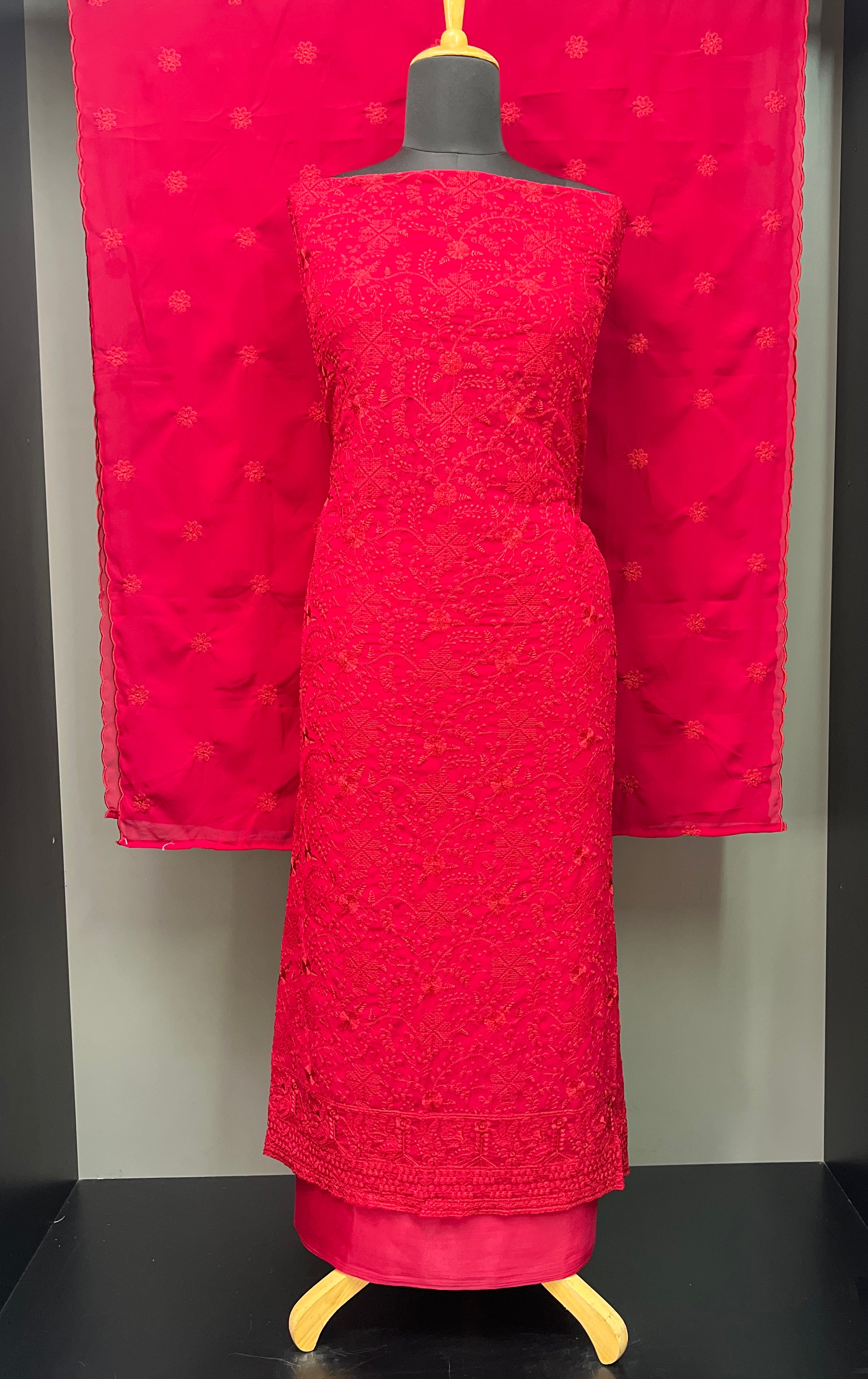 - Style: Lucknowi Inspired Machine Embroidery Detailing