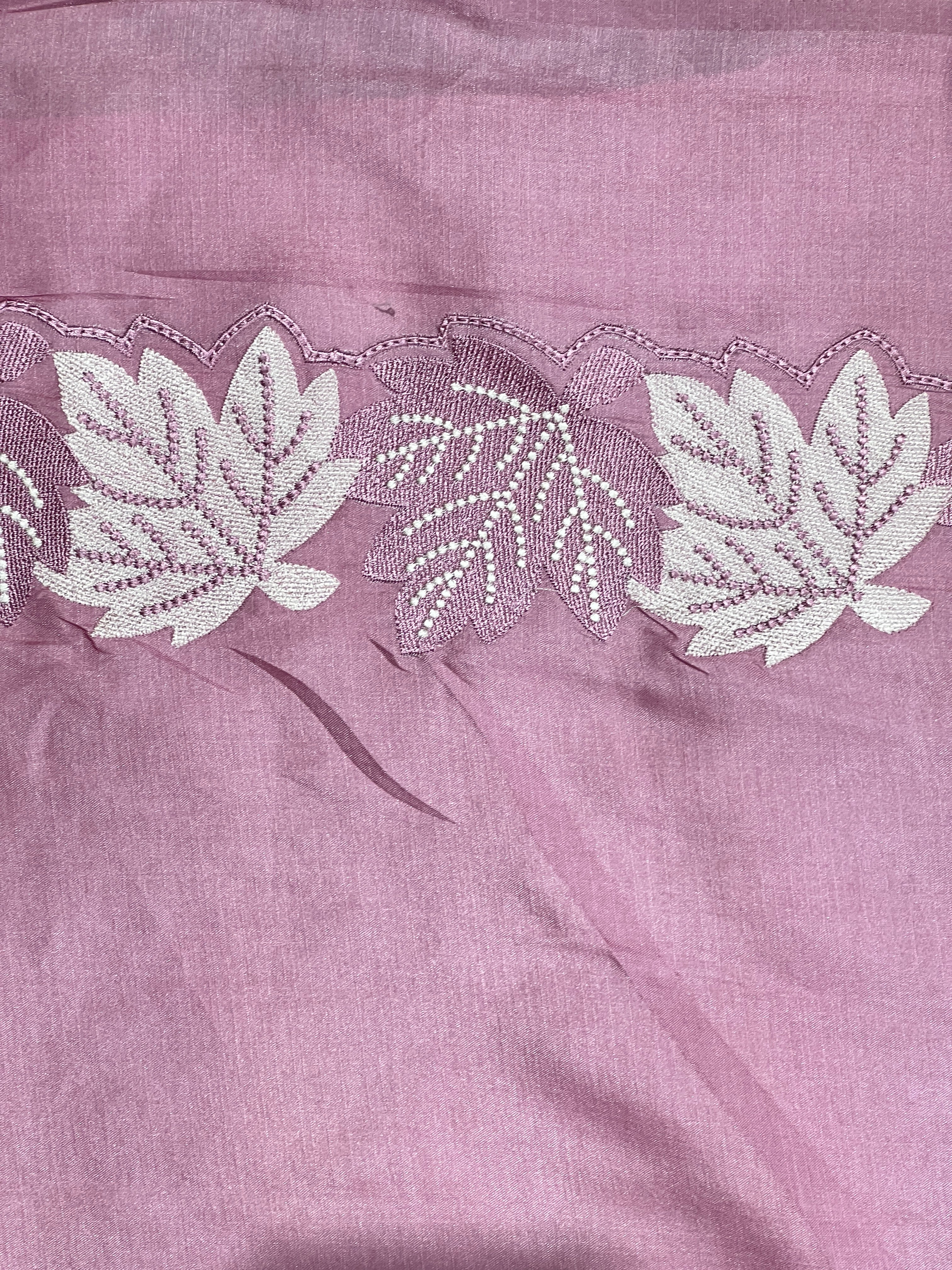 • Style: Machine Embroidery Detailing, Scattered Floral Motif, Leaf Pattern, Uneven Scallop Finish