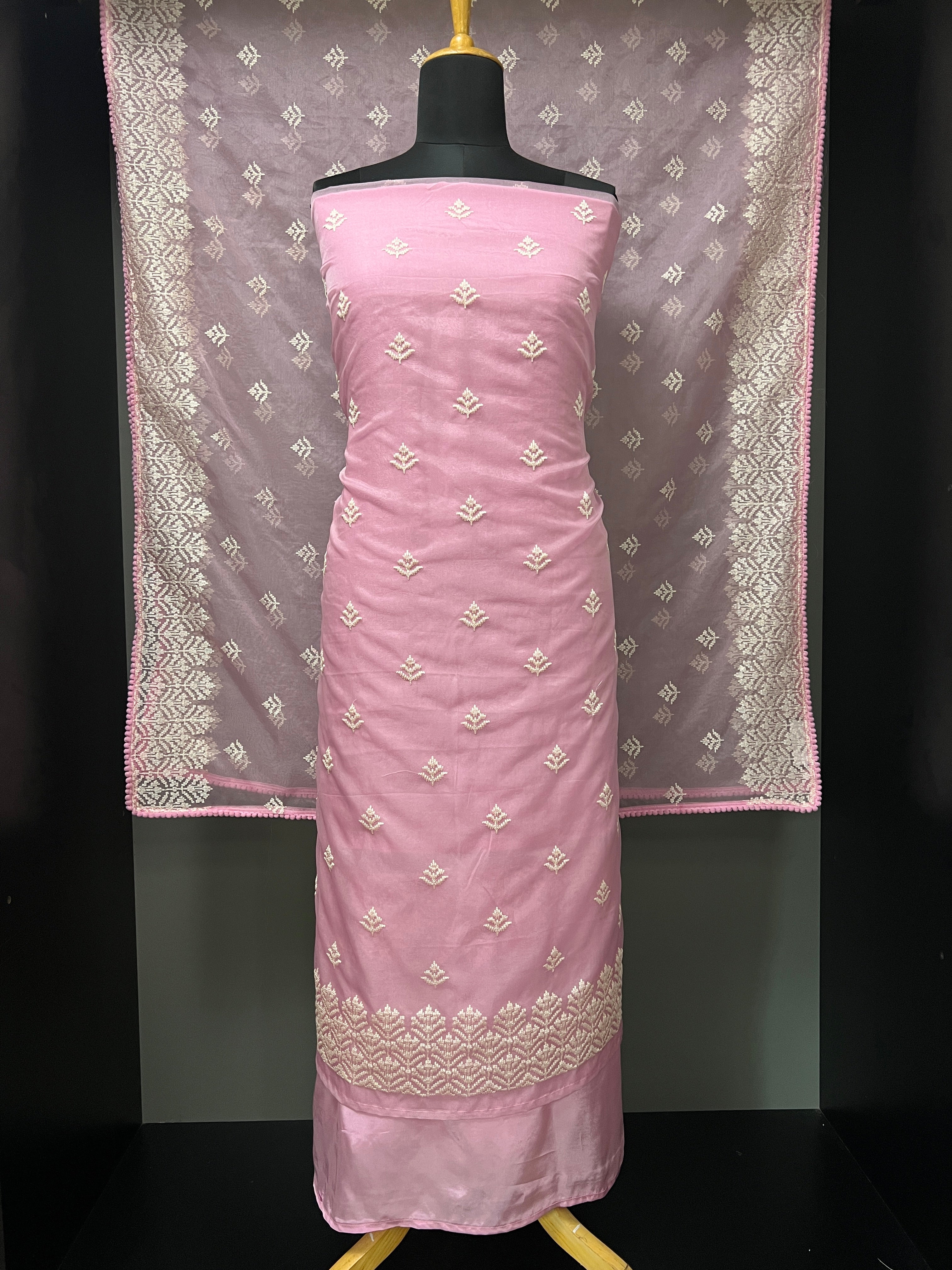 • Machine Embroidery Silk Organza Salwar Set | ZAH128