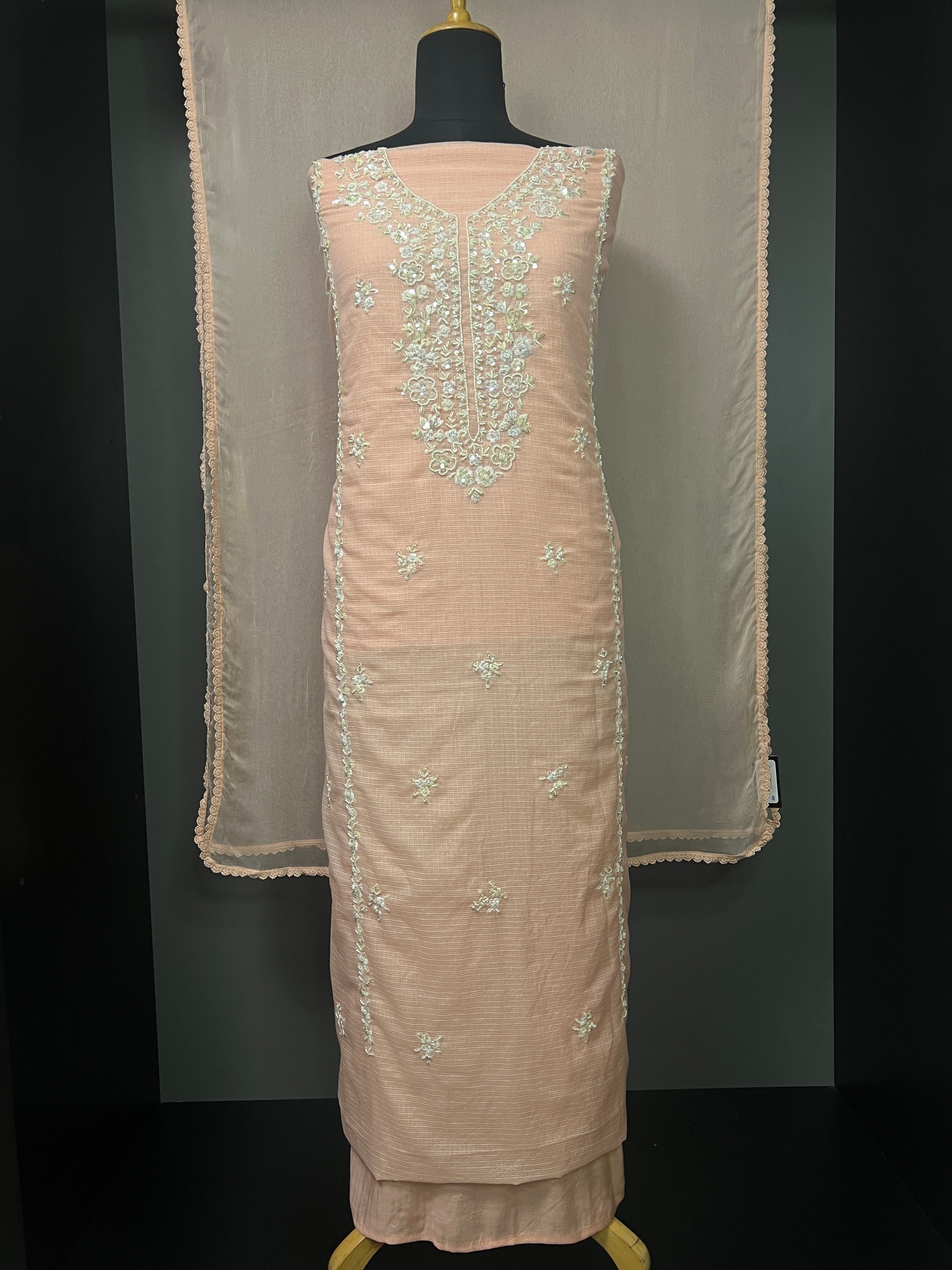- Style: Yoke Portion Machine Embroidery Pattern, Sequence and Beads Highlight, Scattered Floral Embroidery Pattern