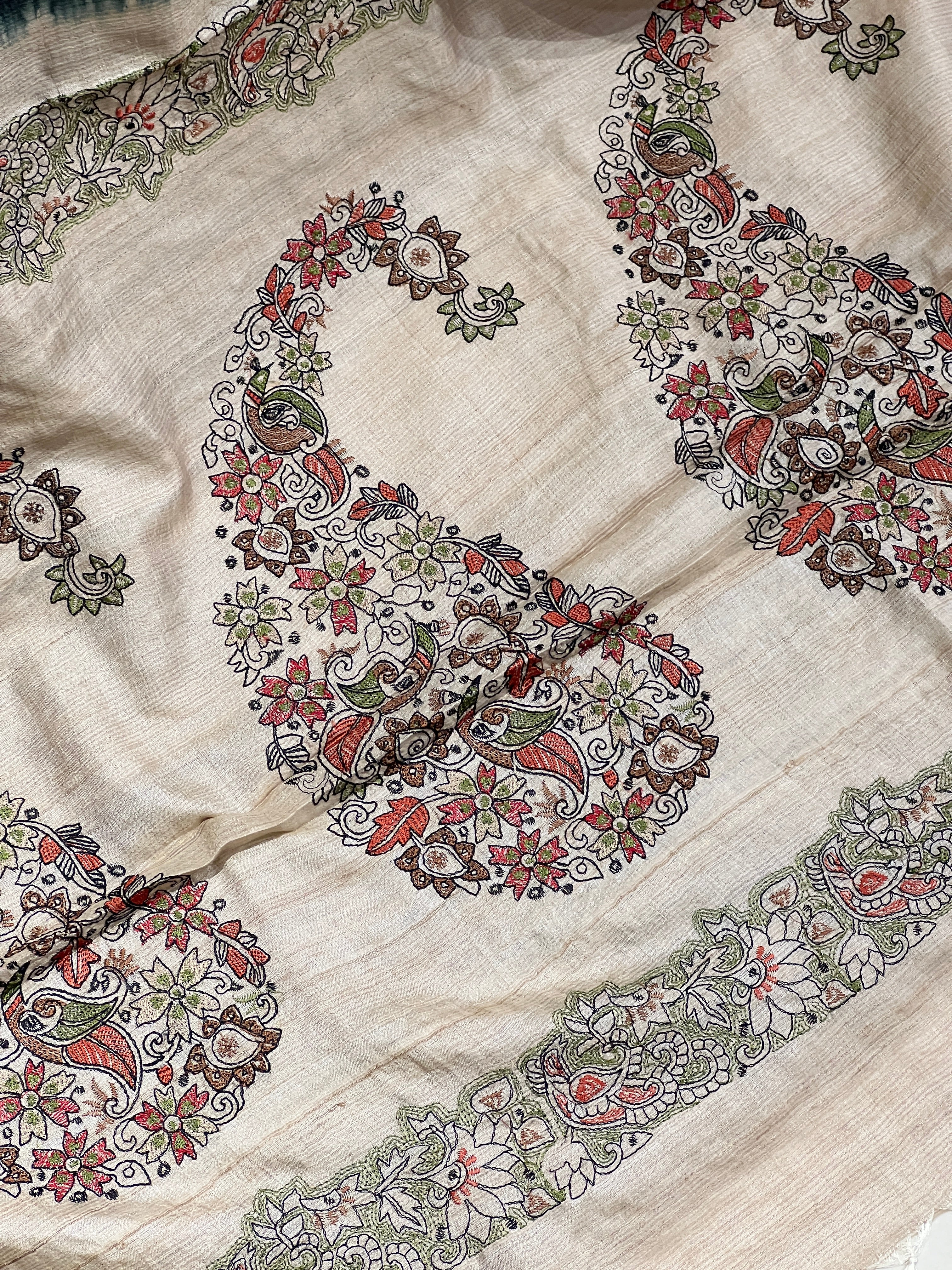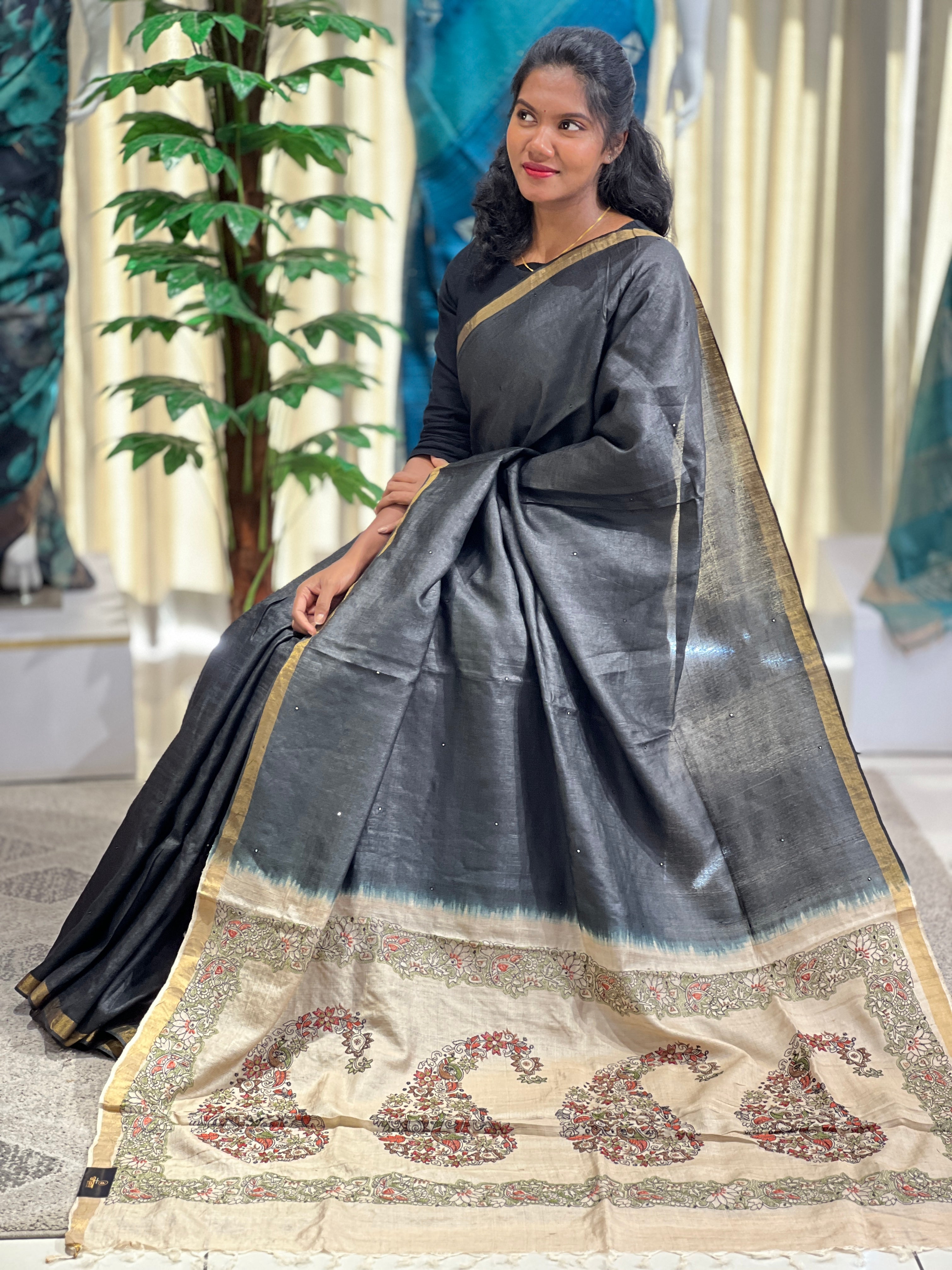 - Style: Machine Embroidery Pattern, Temple Border Detailing, Scattered Stone Sticking, Contrast and Paisley Patterned Pallu, Tassels Attaching