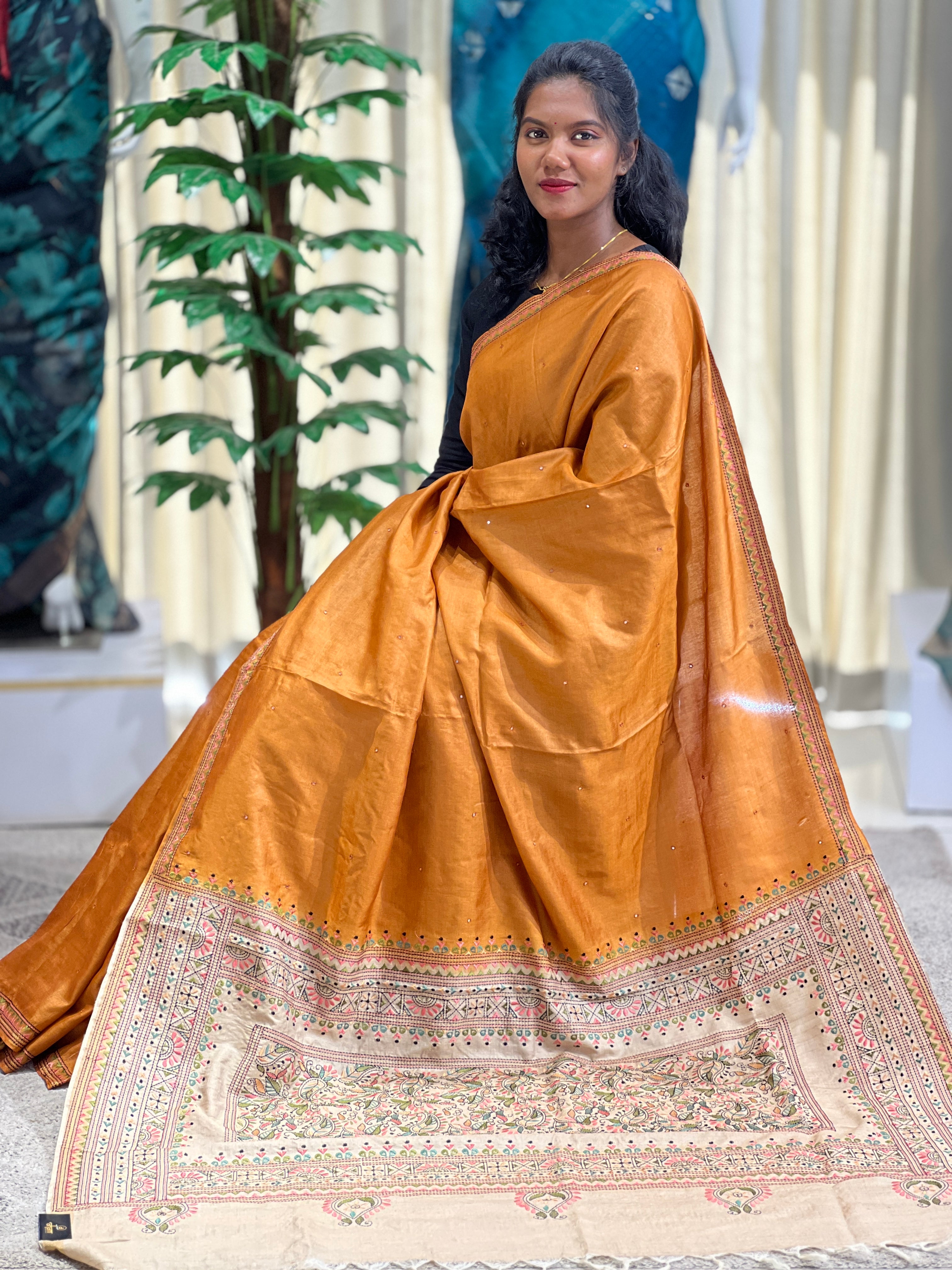 - Style: Machine Embroidery Pattern, Temple Border Detailing, Scattered Stone sticking, Contrast Pallu