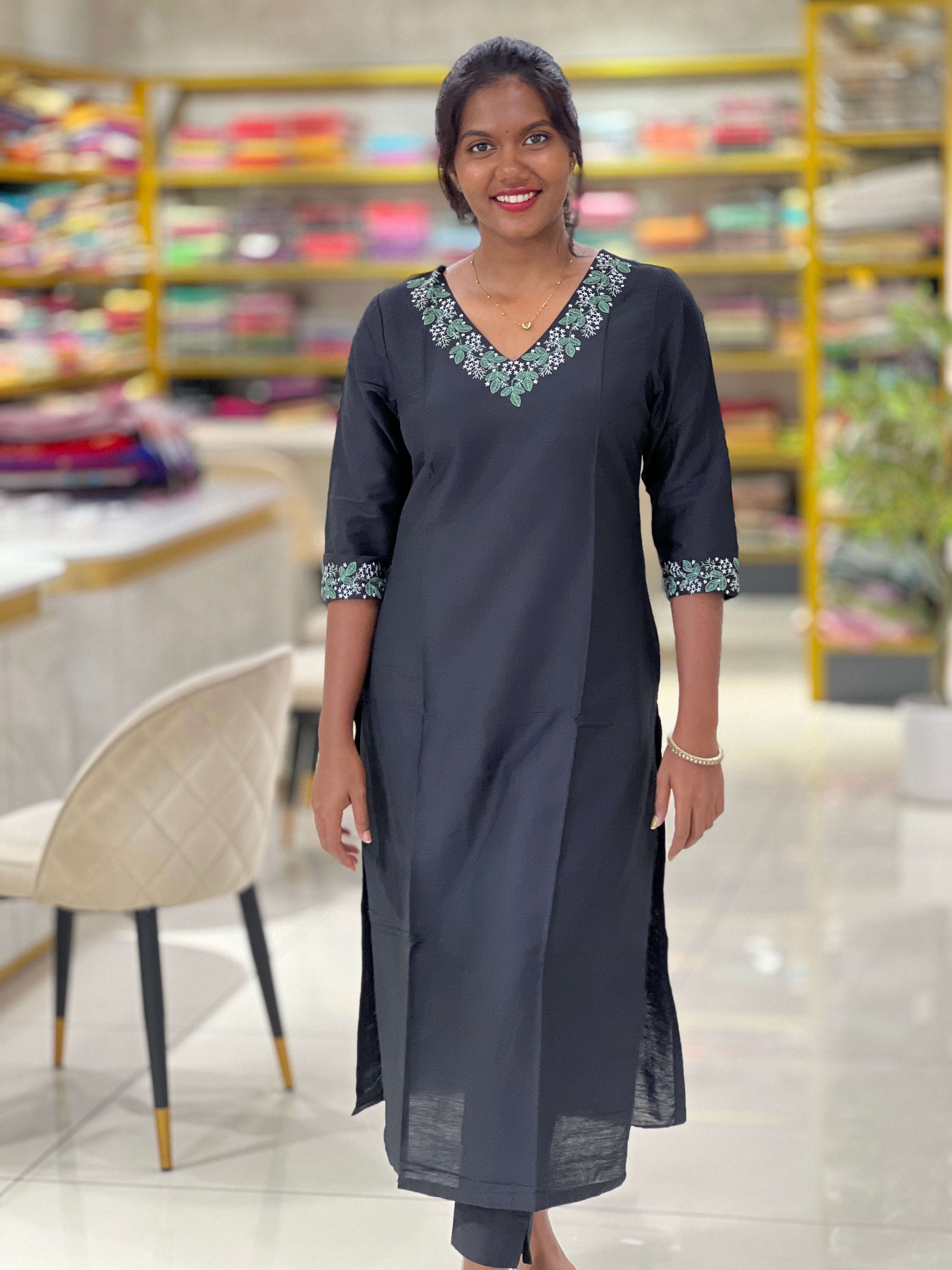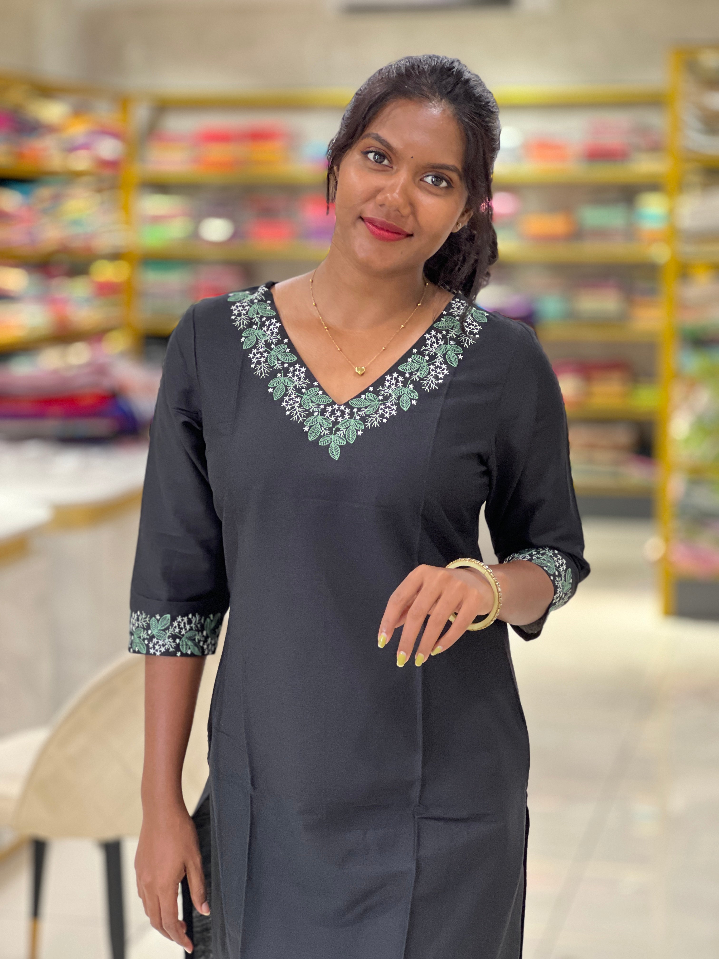 - Style: Machine Embroidery on Neck and Sleeves, Side Slit Pattern