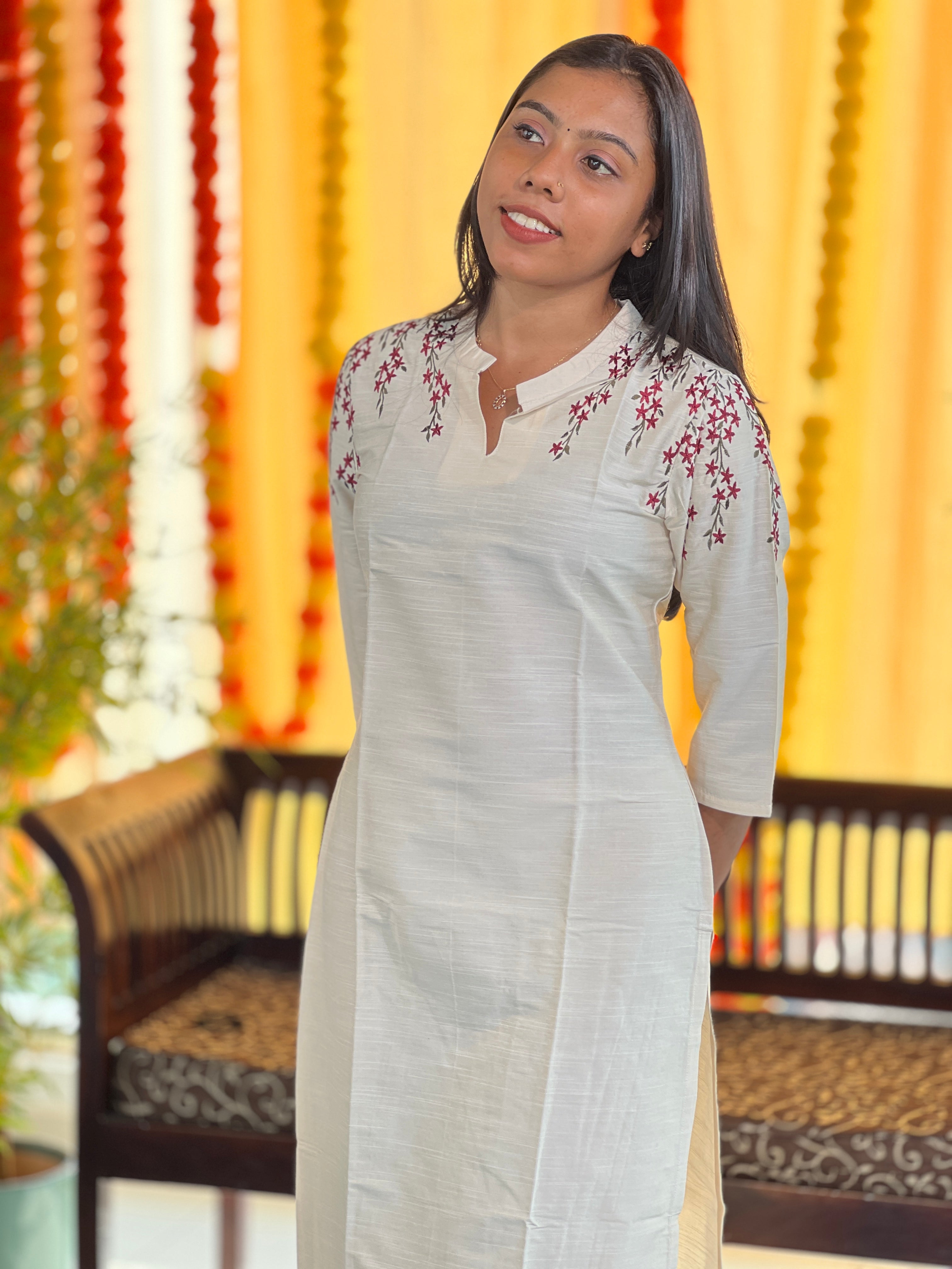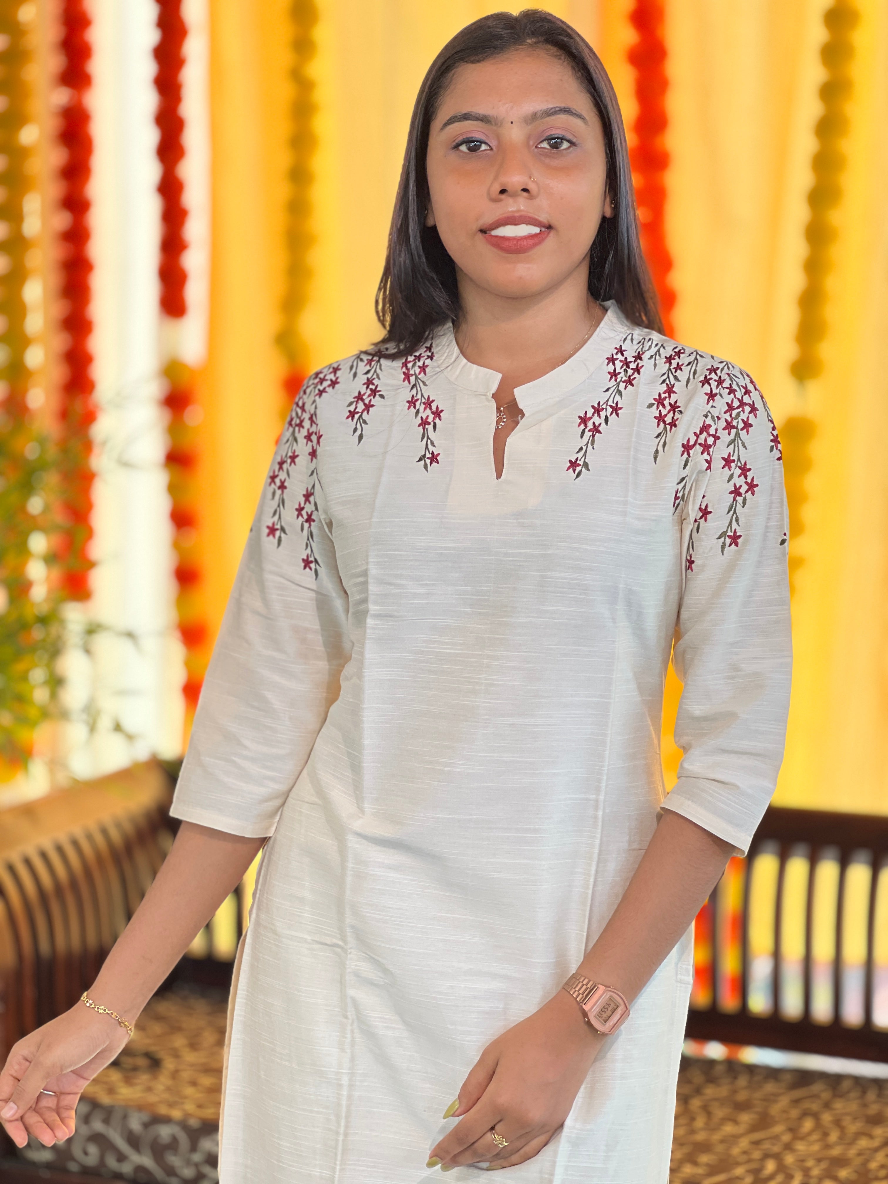 - Style: Machine Embroidery , Side Slit Pattern , Embroidery Detailing on Sleeves
