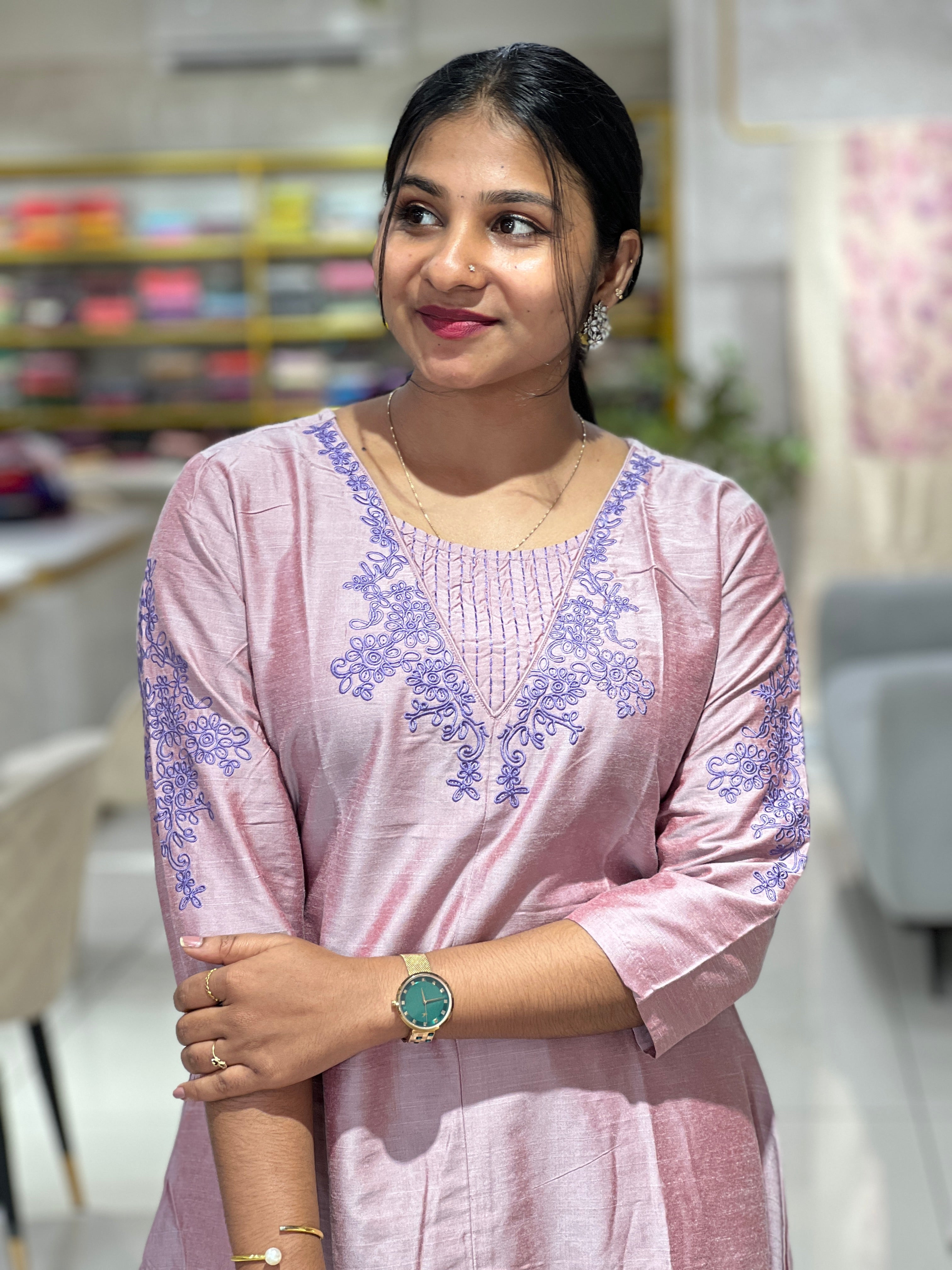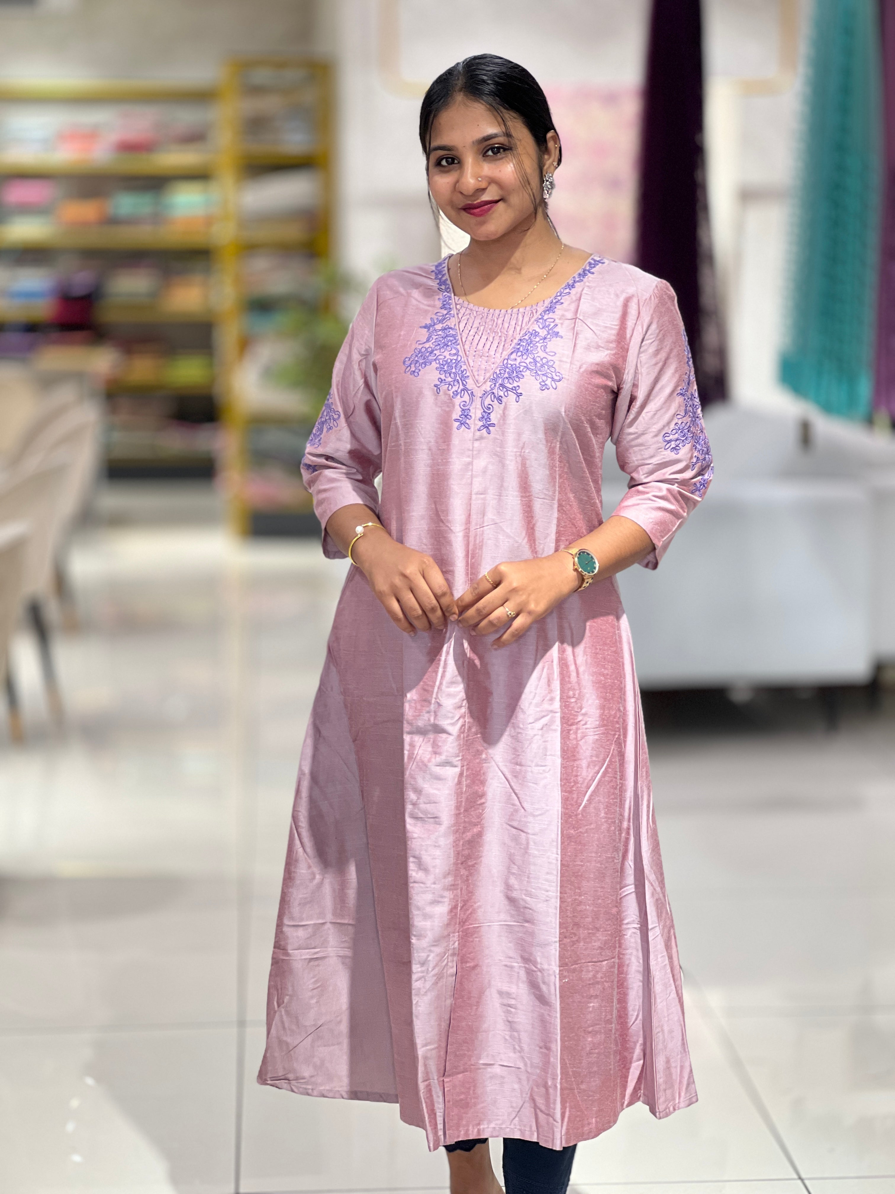 - Style: Machine Embroidery on Neck and Sleeves, A-Line Pattern