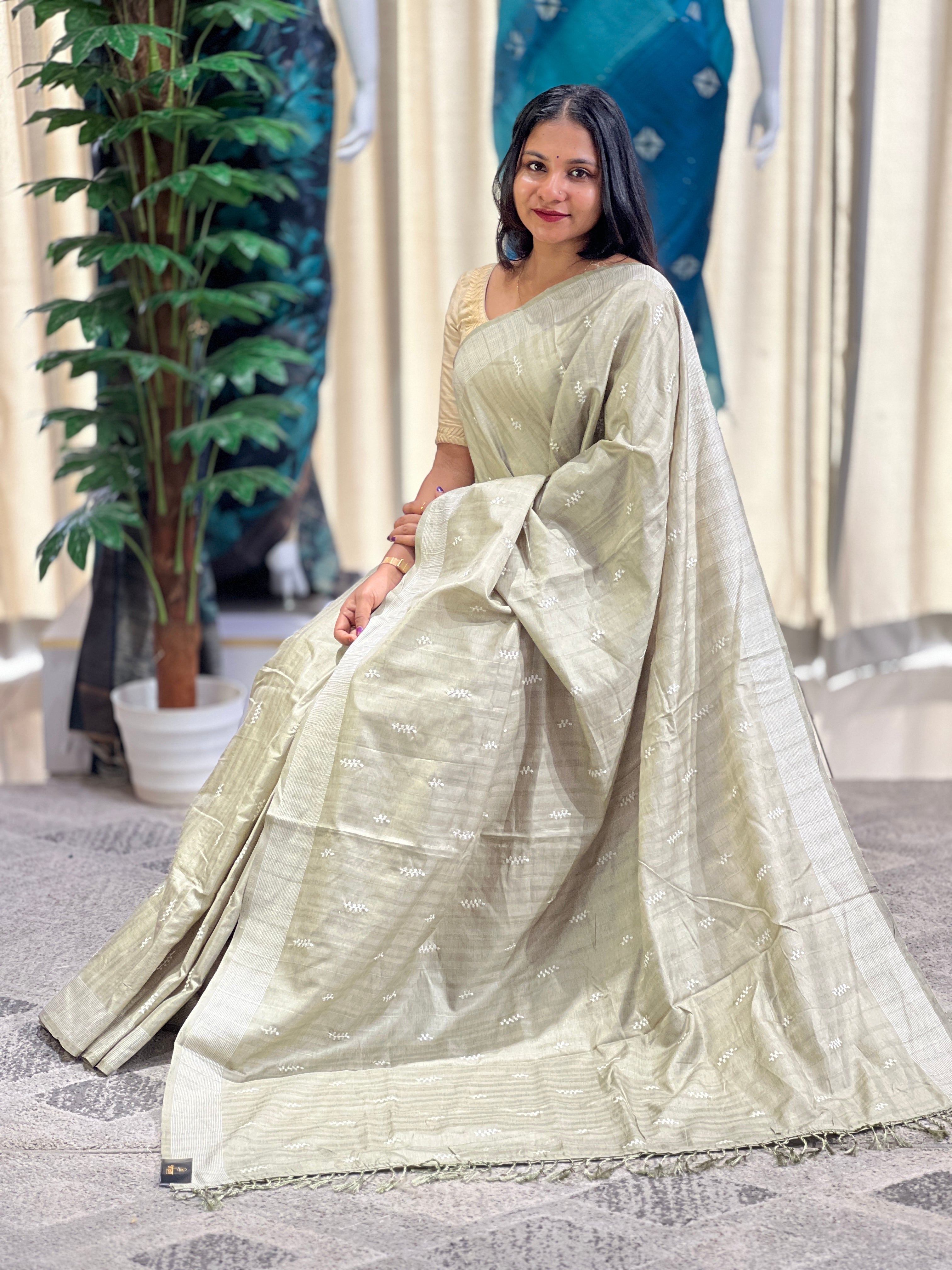 • Machine Embroidery Semi Tussar Saree | SUN289