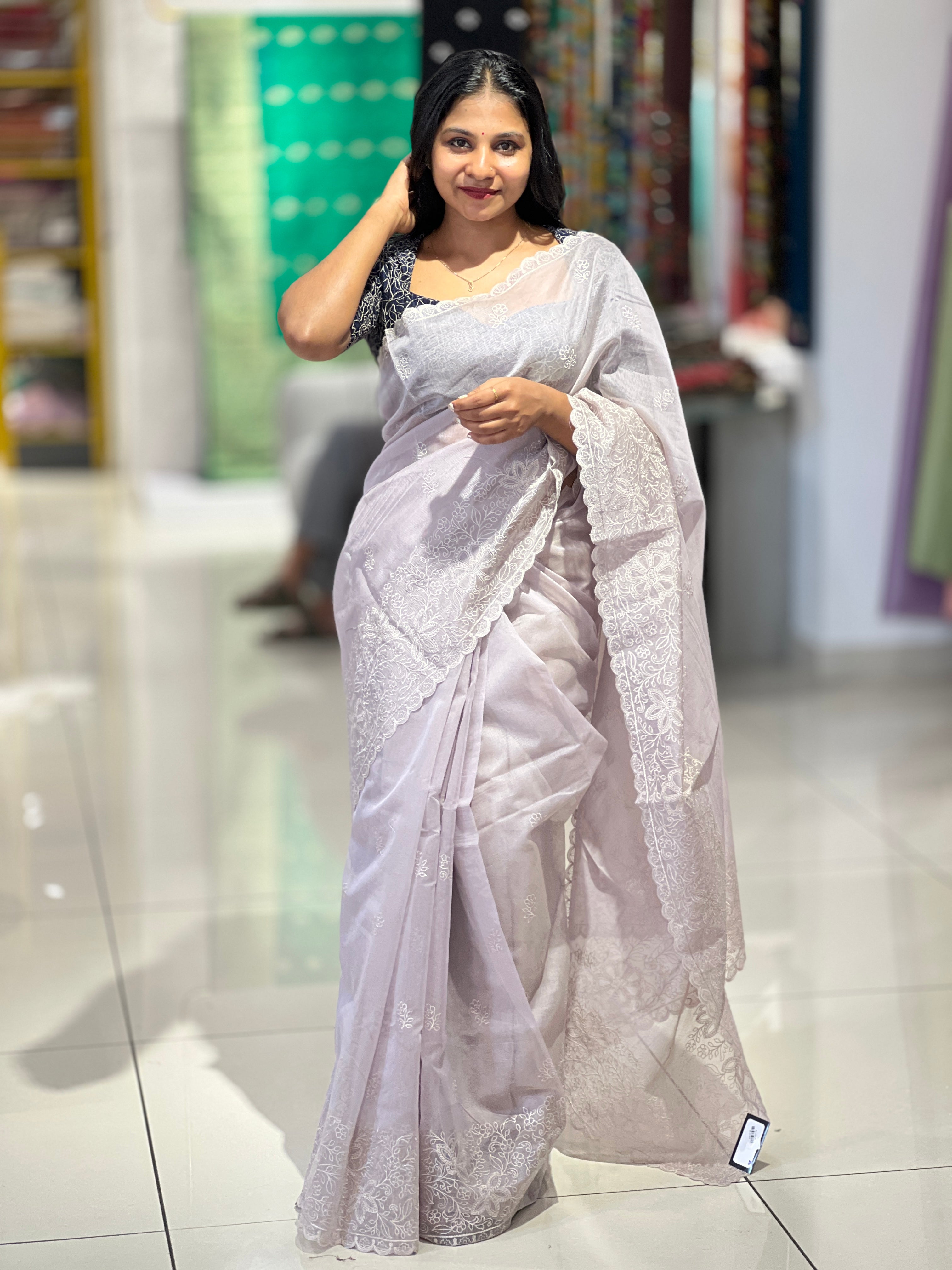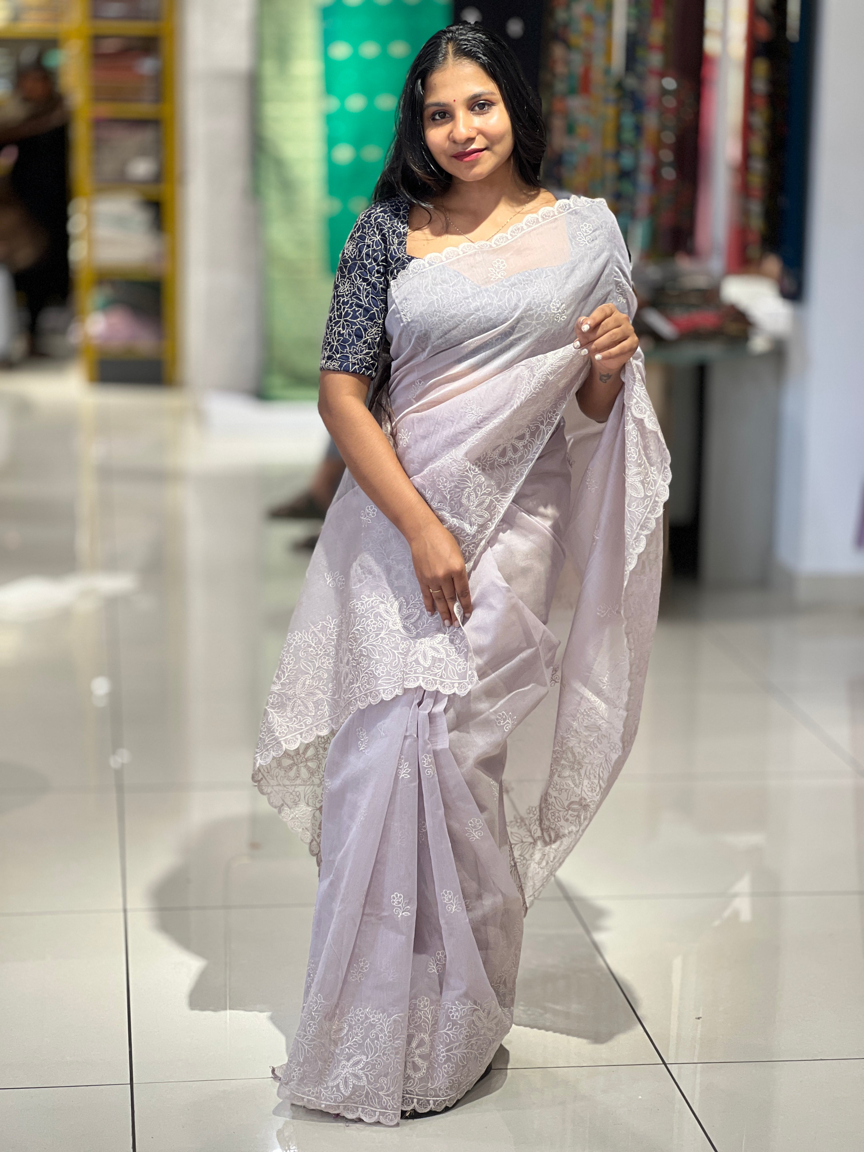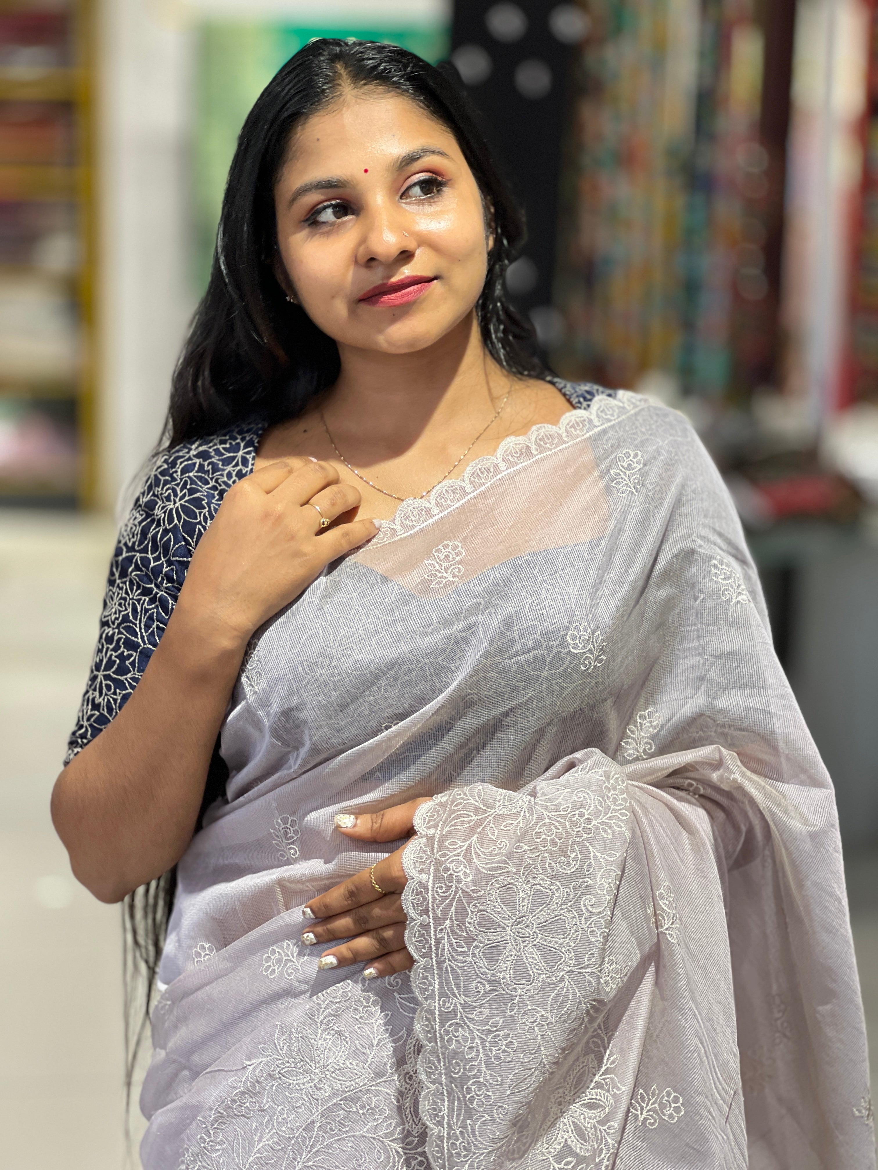 - Style: Machine Embroidery Detailing, Scattered Floral Embroidery Pattern, Scallop Finish