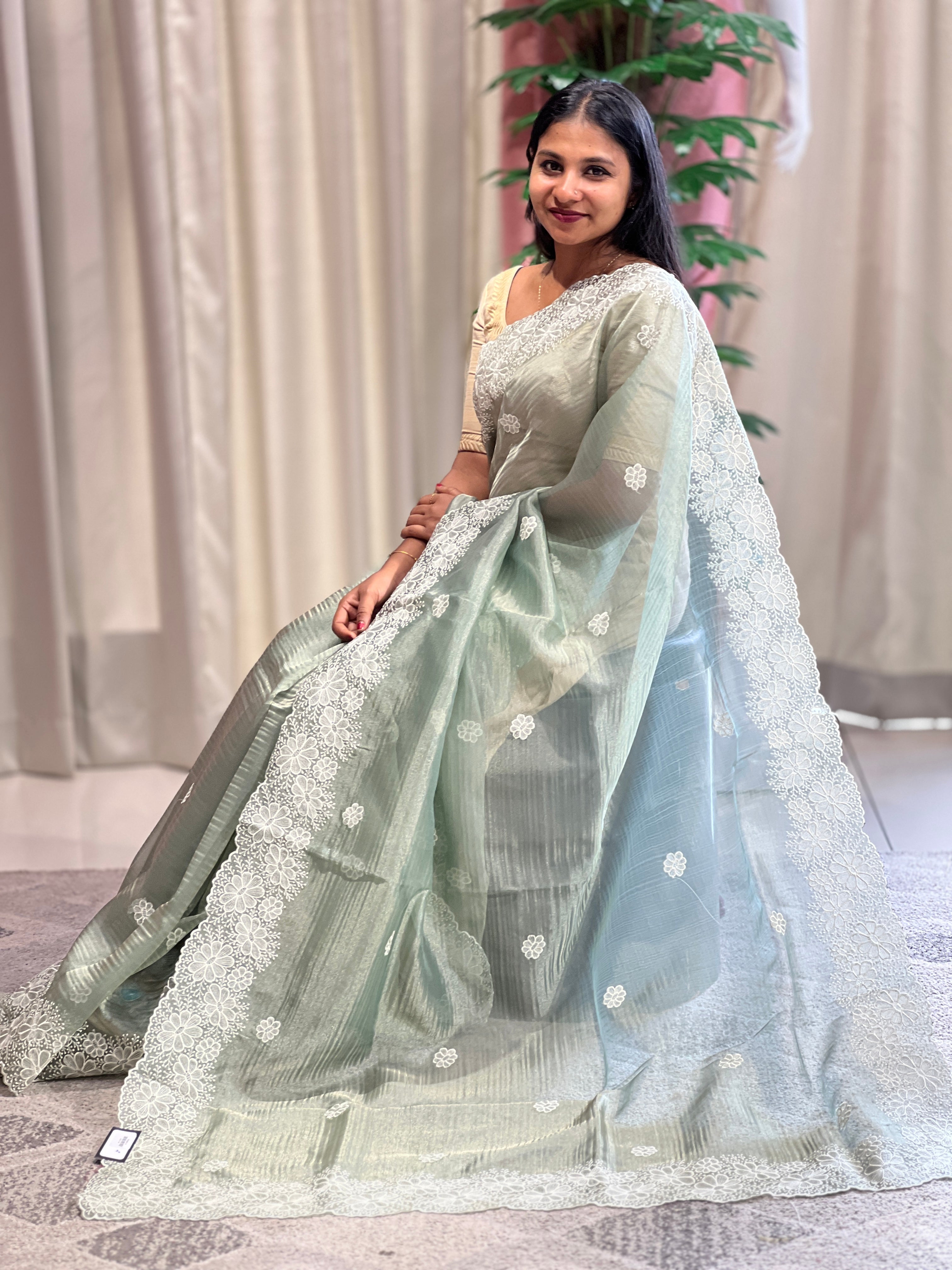 • Machine Embroidery Tissue Organza Saree | BLD1144