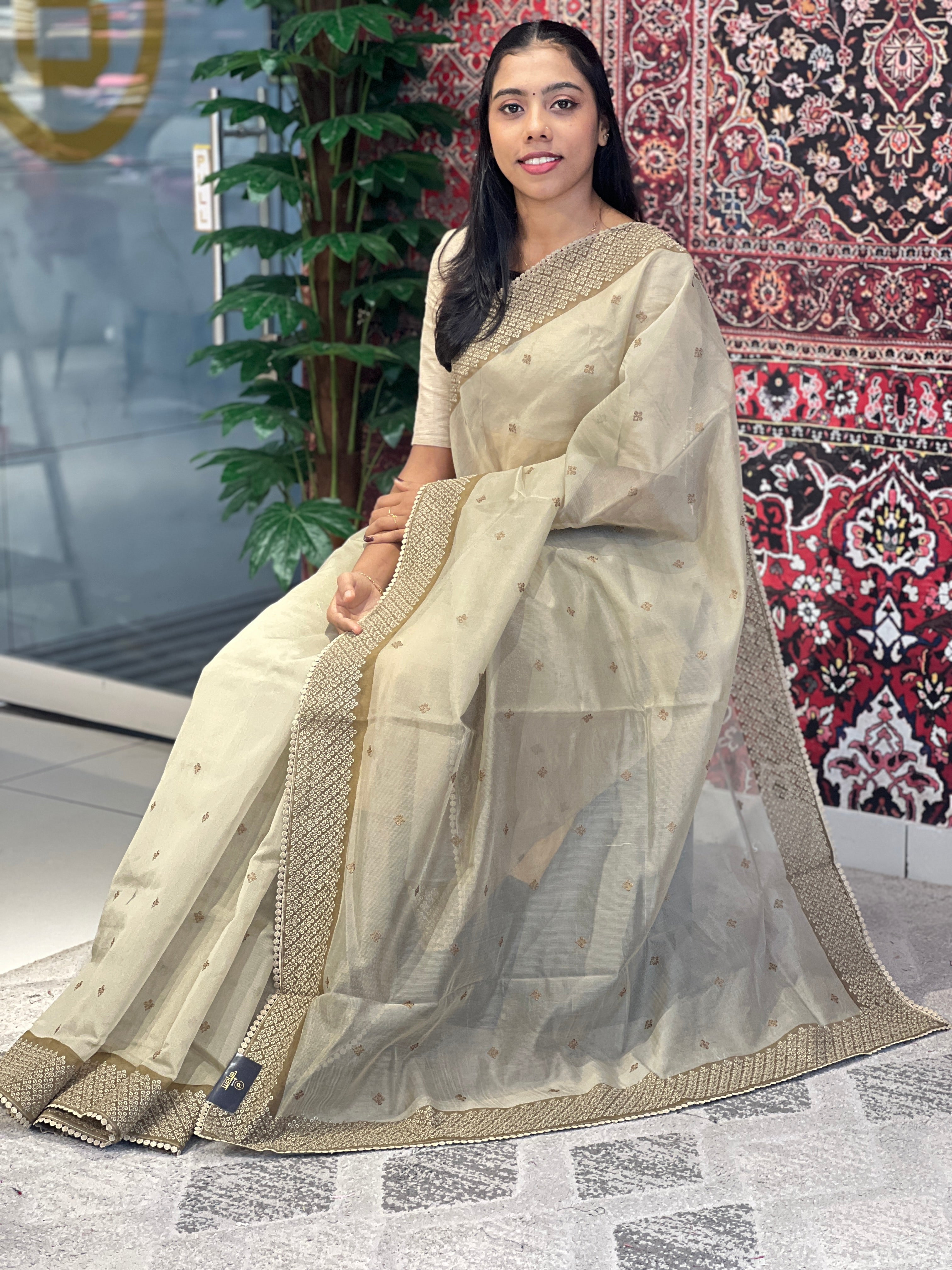 • Machine Embroidery With Lace Detailed Supernet Kota Saree | BLD1319