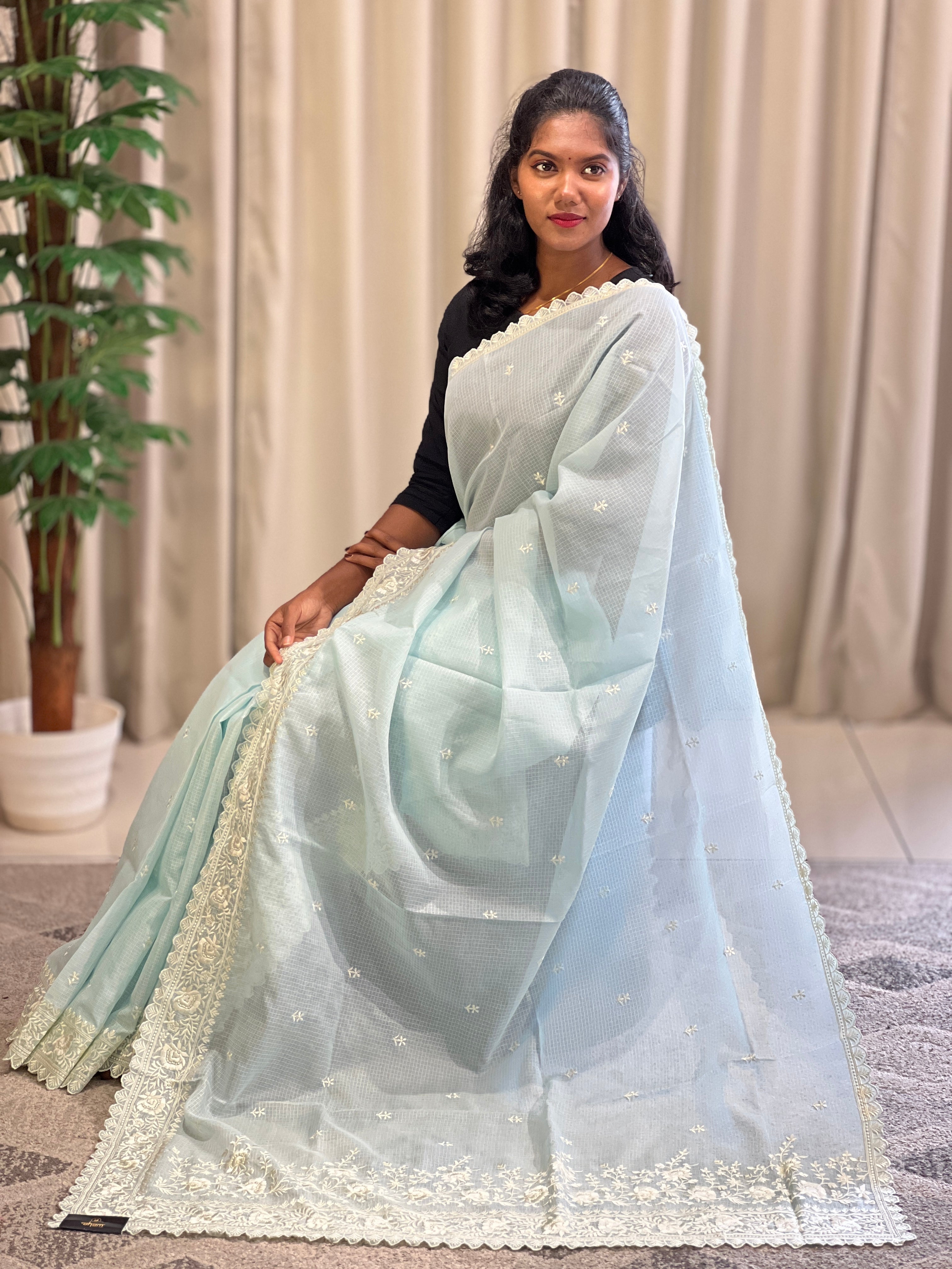 - Style: Machine Floral Embroidery, Lace & Scallop Finish, Scattered Floral Embroidery Pattern