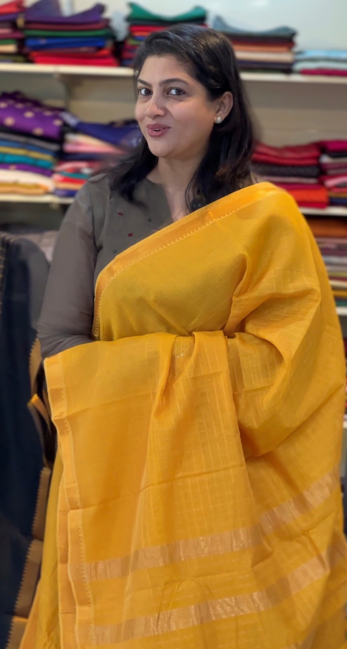 - Style: Mangalgiri Temple Borders, Zari Woven Check Patterned Body, Zari Stripe Patterned Pallu