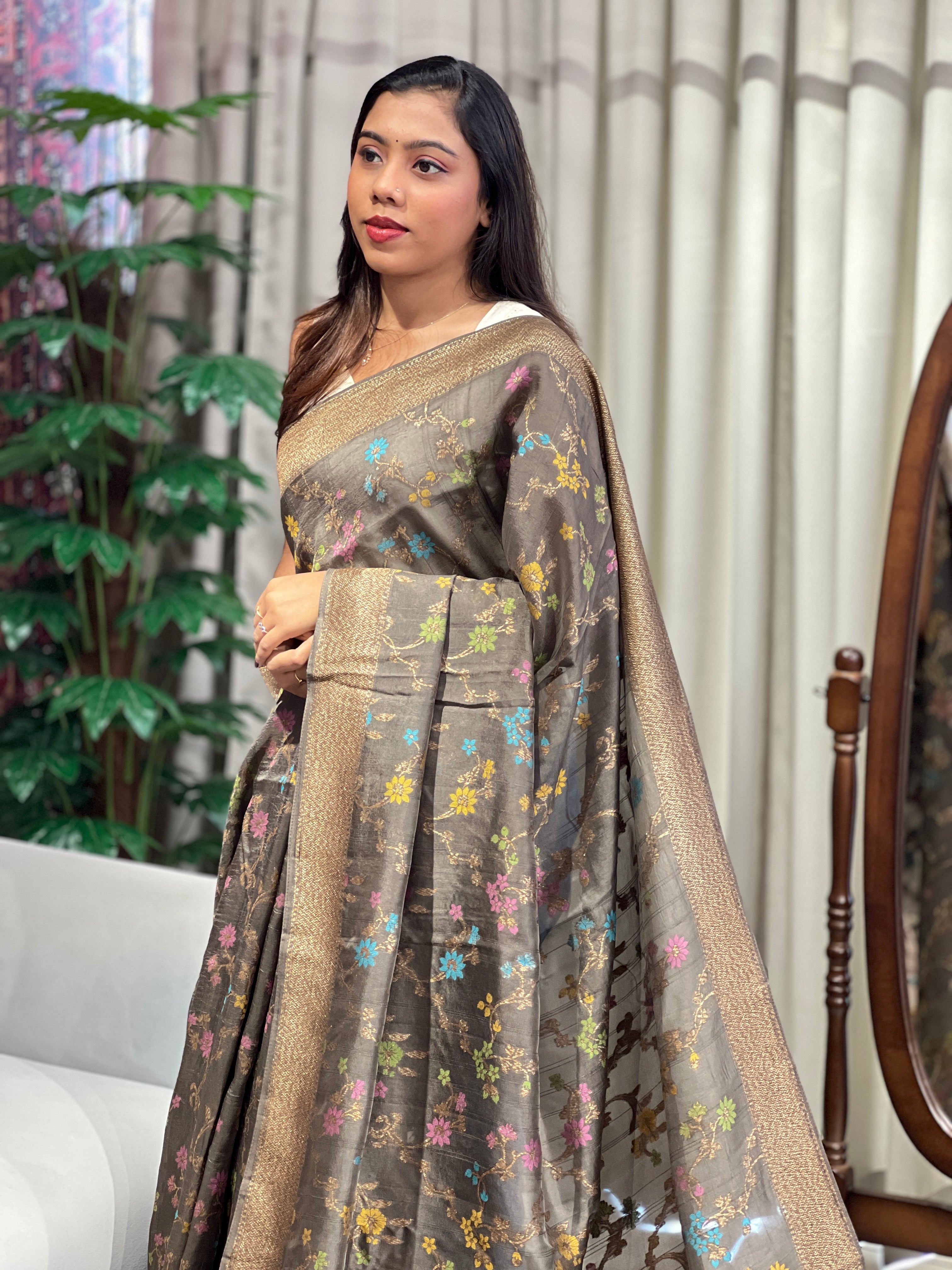 • Meenakari Patterned Semi Tussar Saree | YNG1228