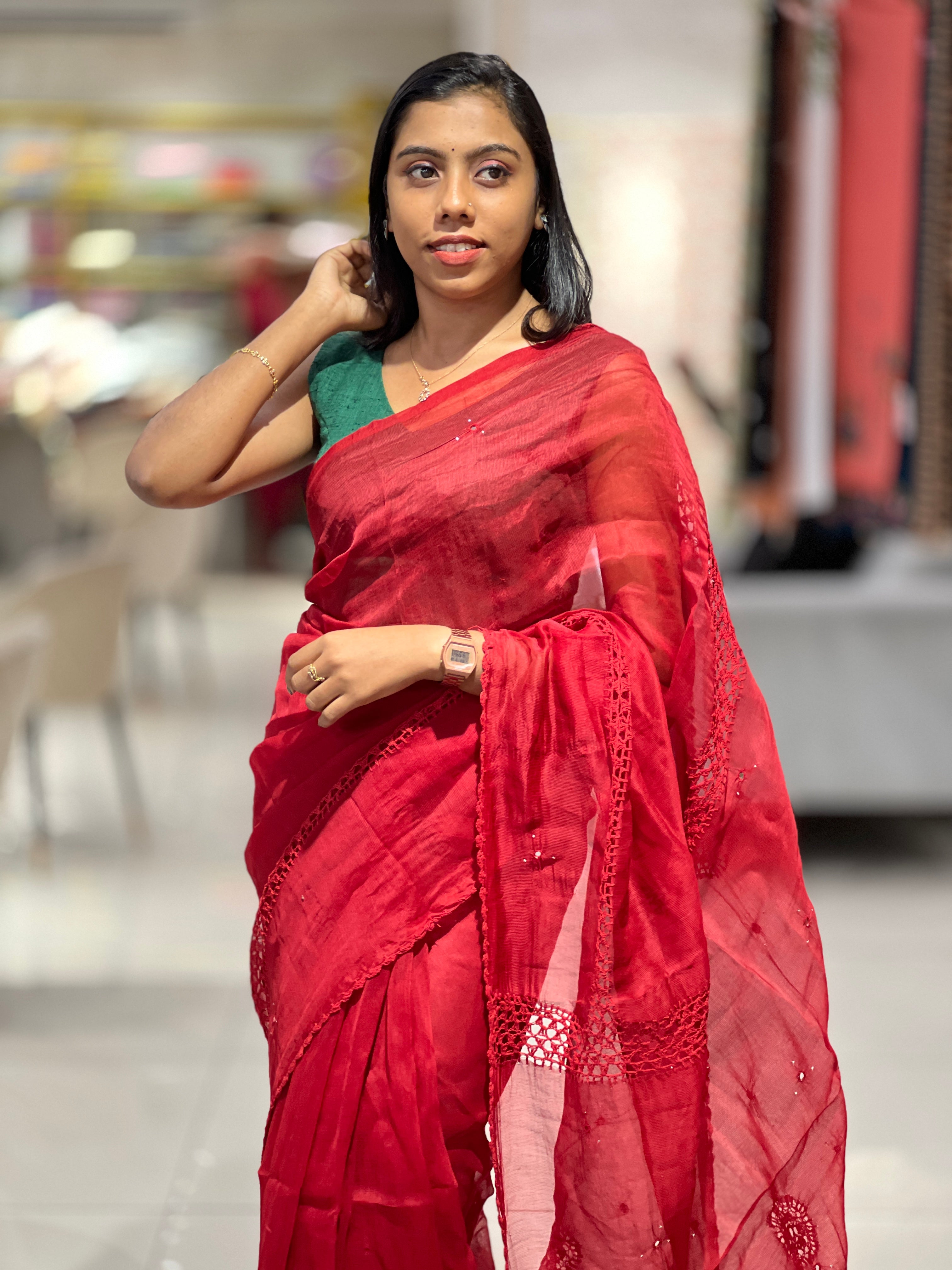 • Mirror & Crochet Lace Detailed Kota Saree | SF1344