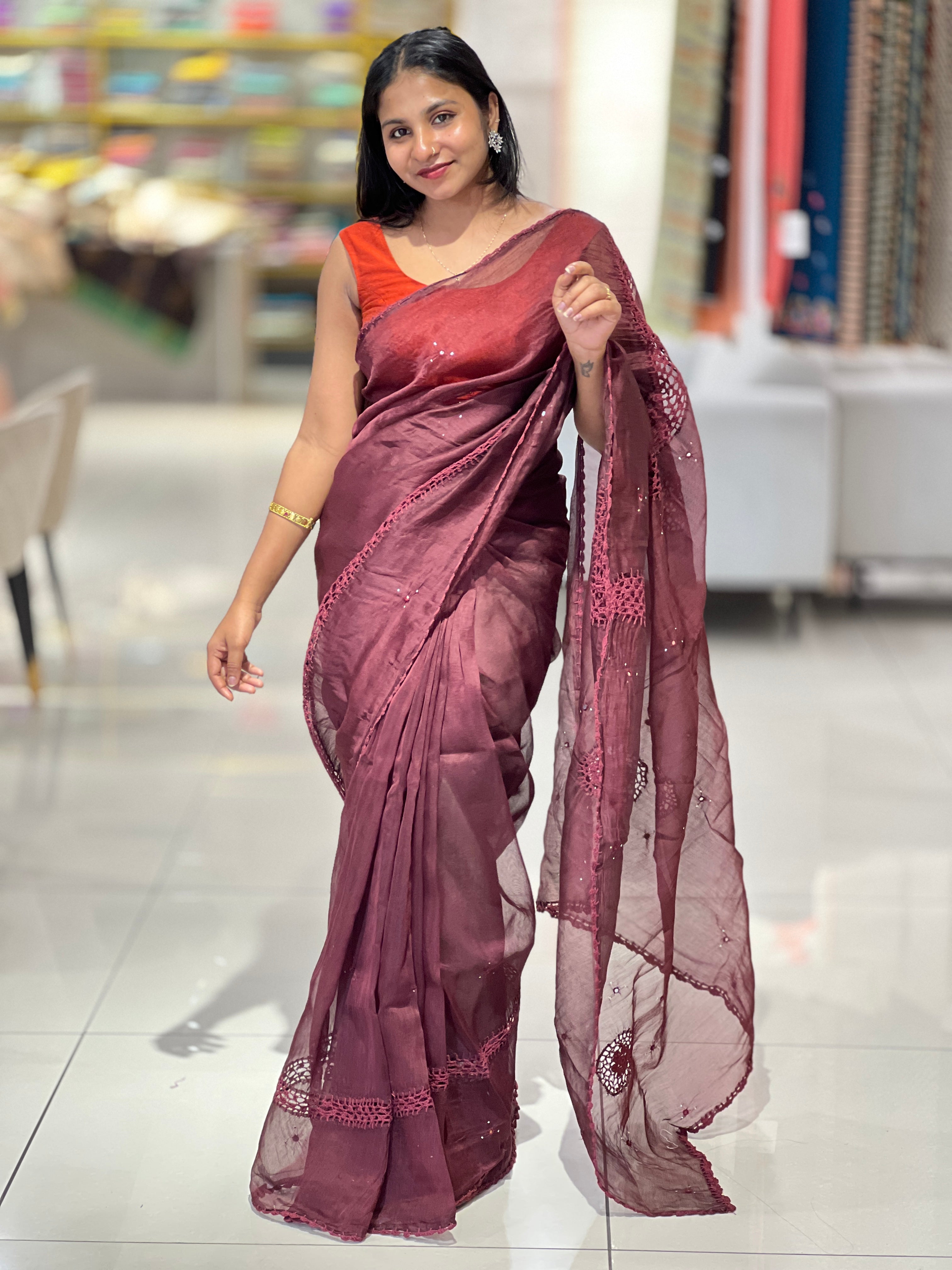 • Mirror & Crochet Lace Detailed Kota Saree | SF1345