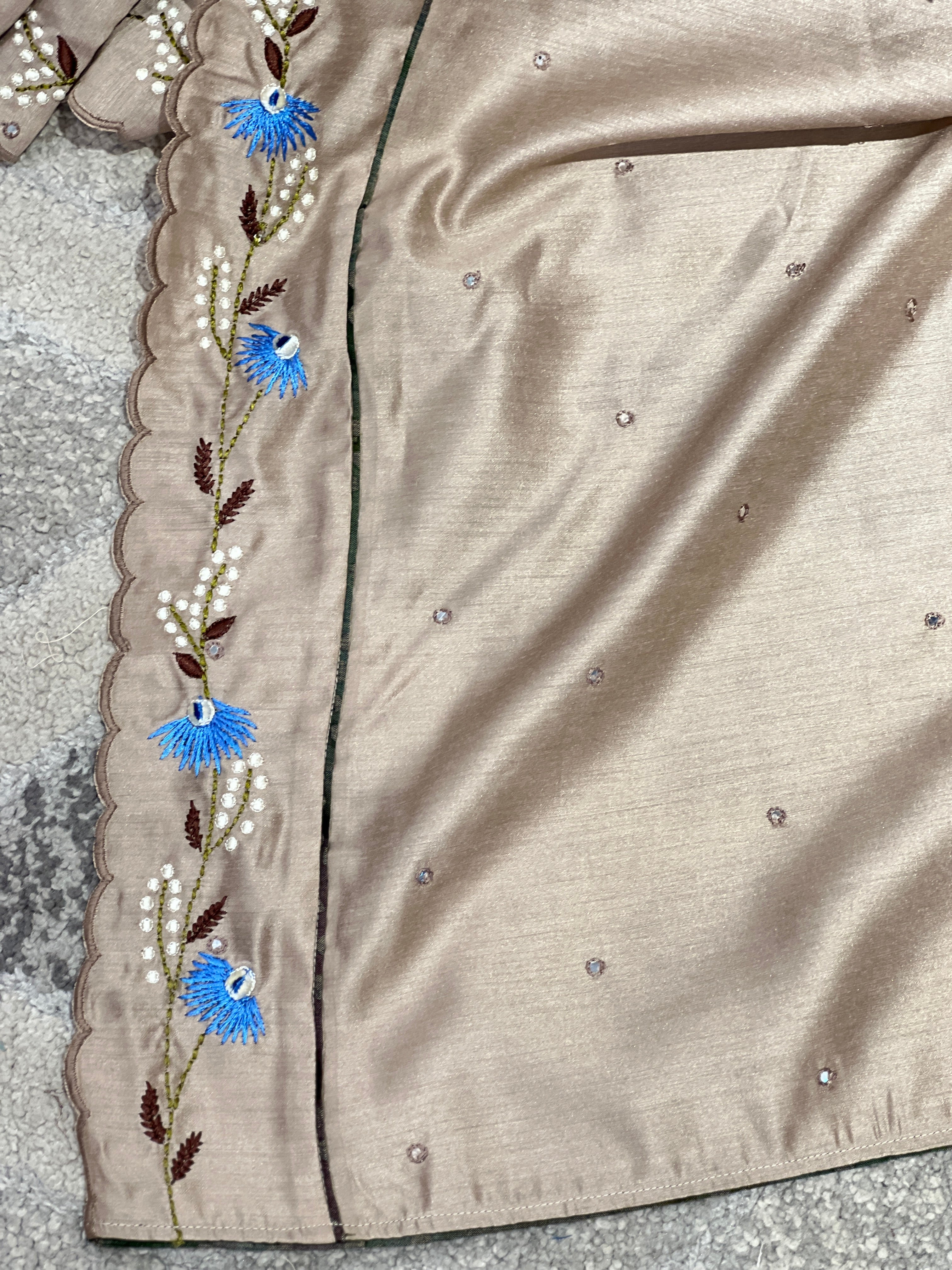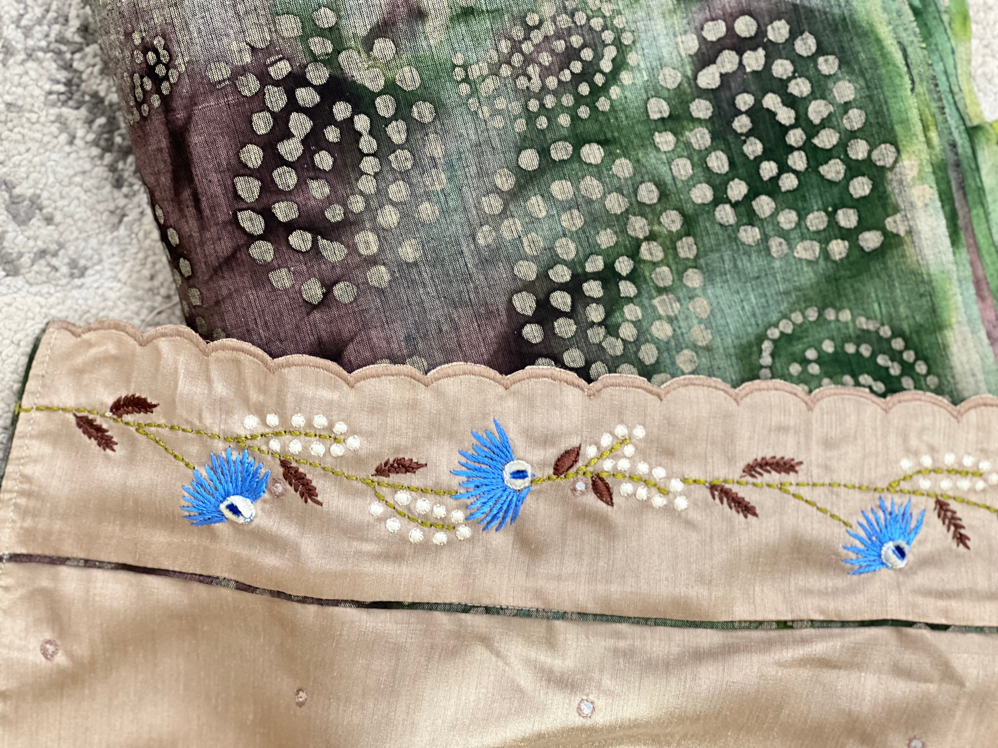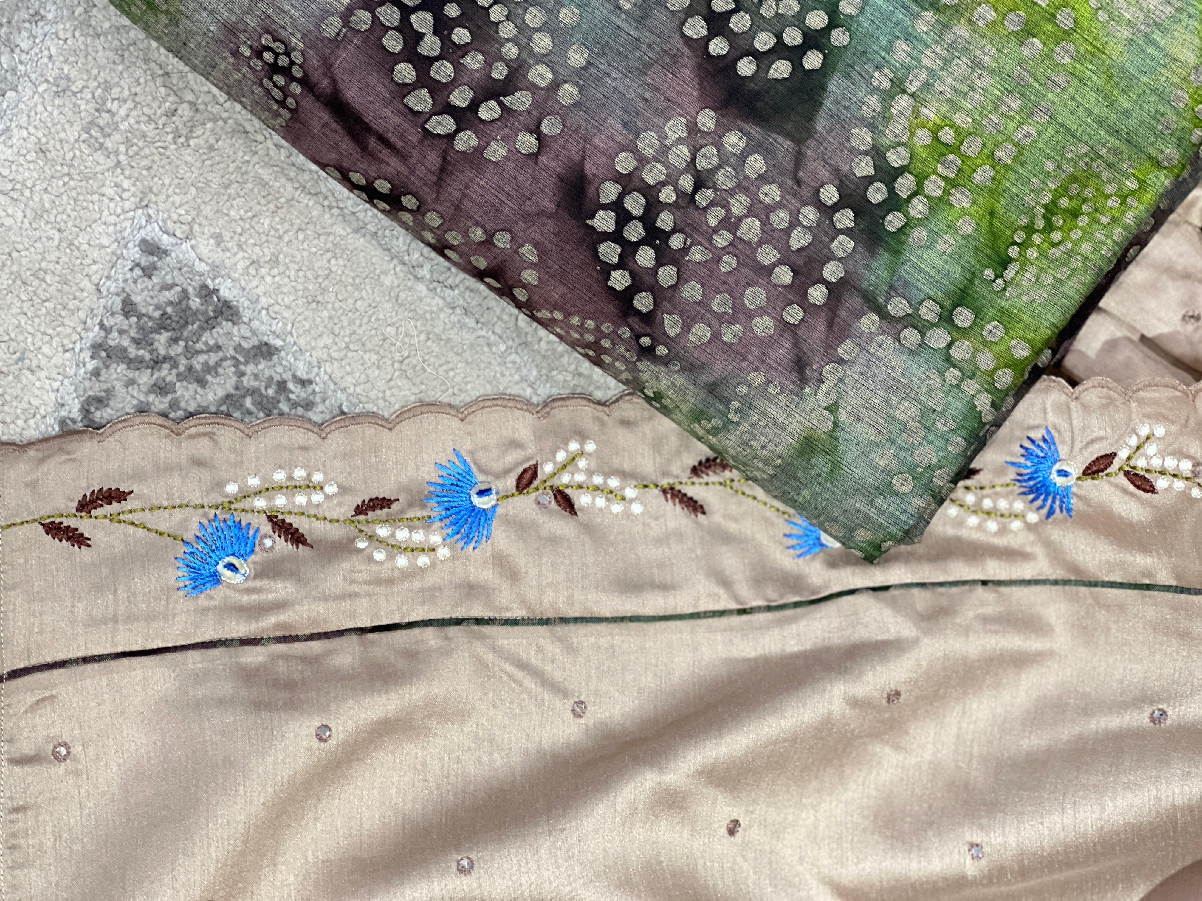 - Style: Scattered Mirror Work Detailing, Batik Detailed Joint Facing, Embroidered Lower Borders, Scallop Edges