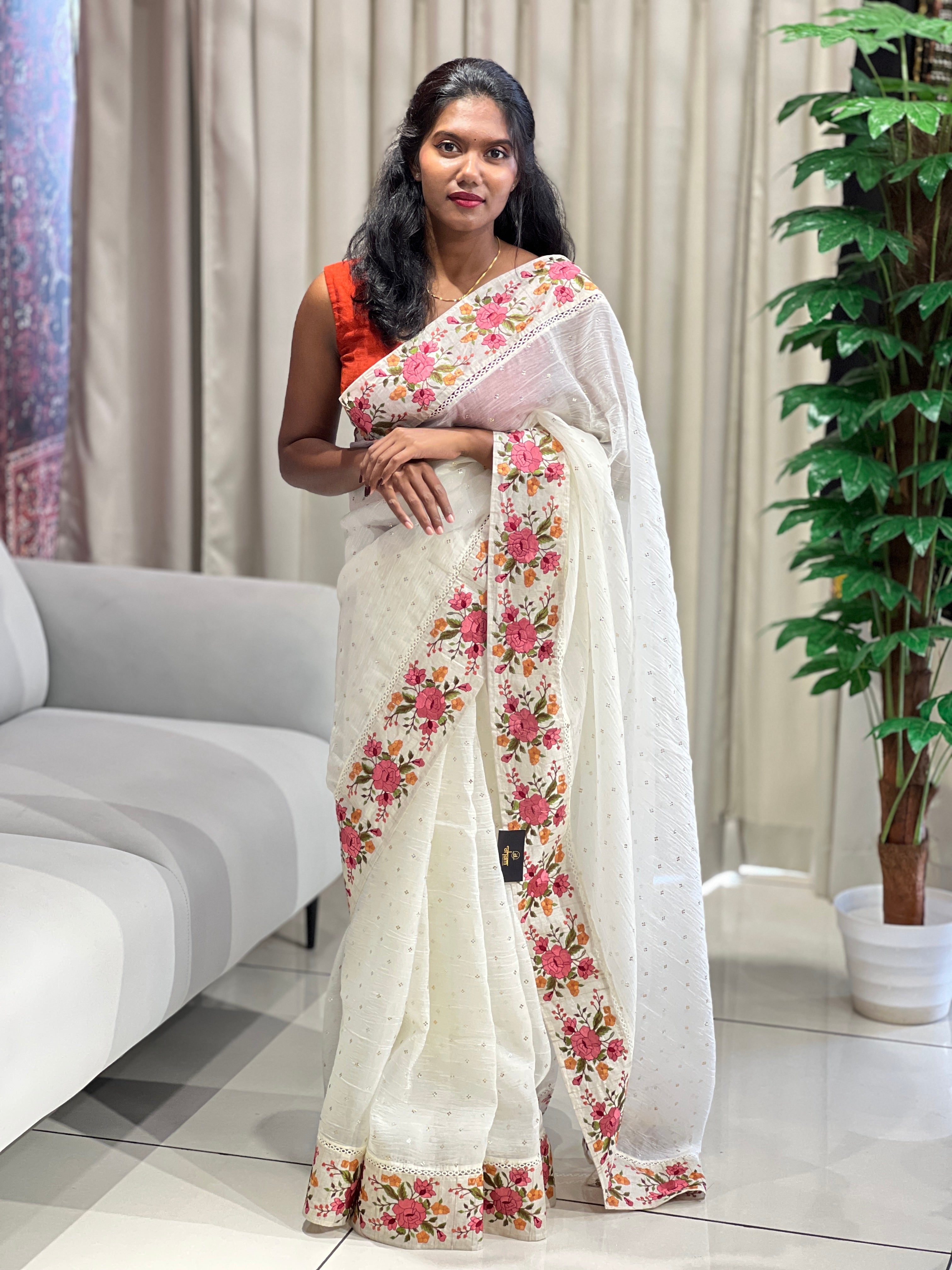 - Style: Mukaish Work Detailing, Satin Stitch Border Highlighted With Lace Finish