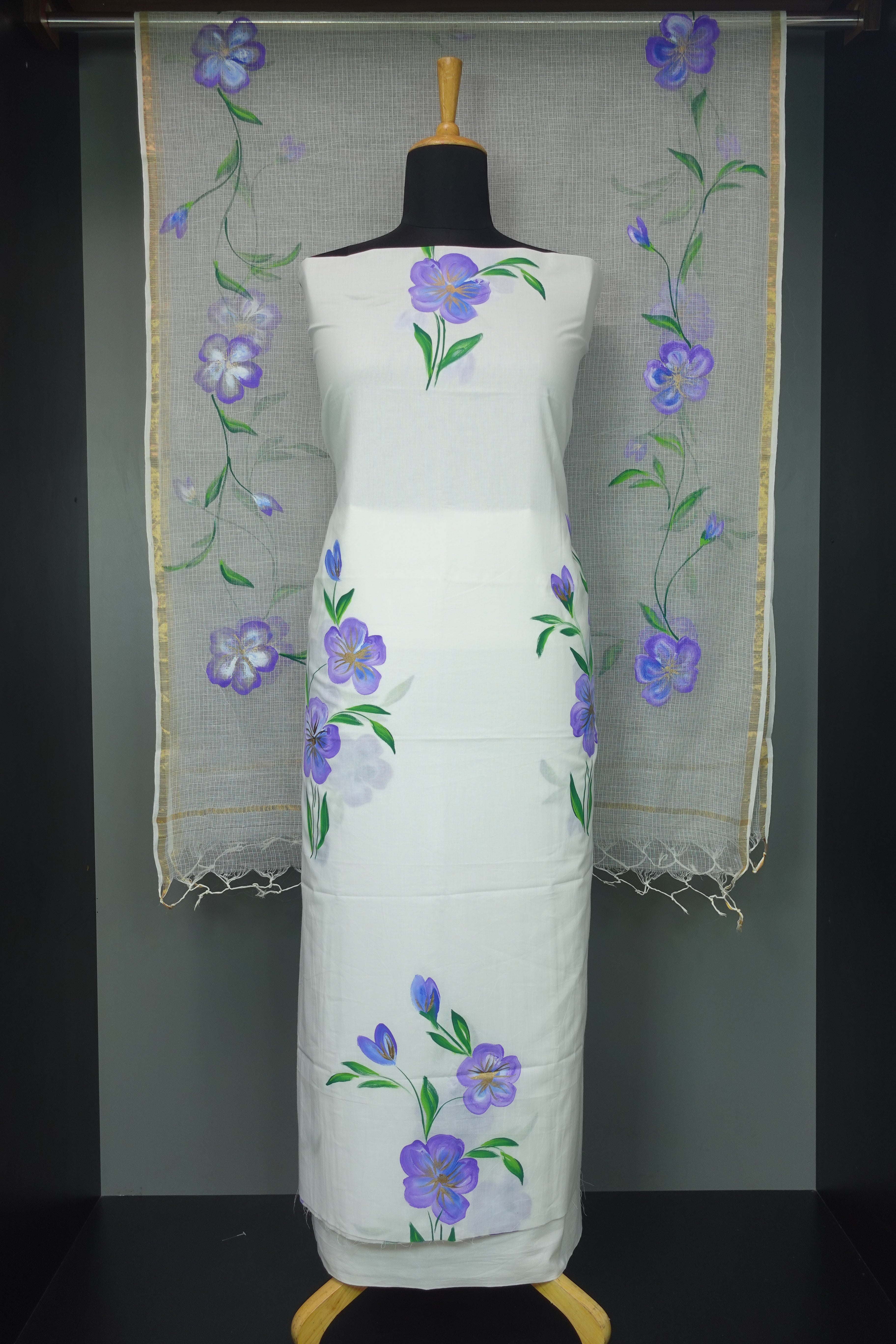 • Mul Cotton Salwar Set With Floral Paint Detailing | JKL462