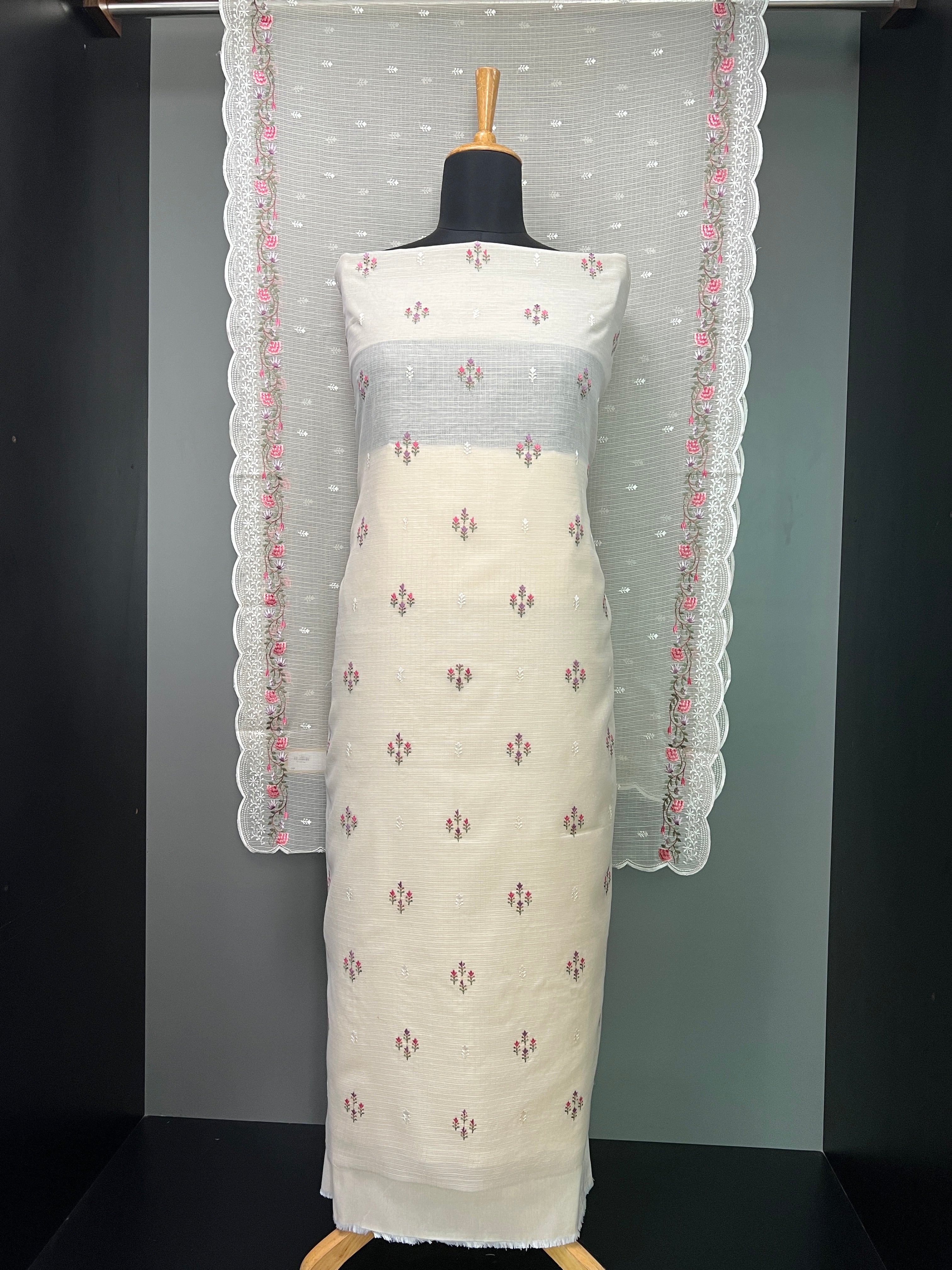 • Style: Scattered White Thread Embroidery Butta, Multi-Color Floral Embroidery Detailed Borders, Scallop Edges