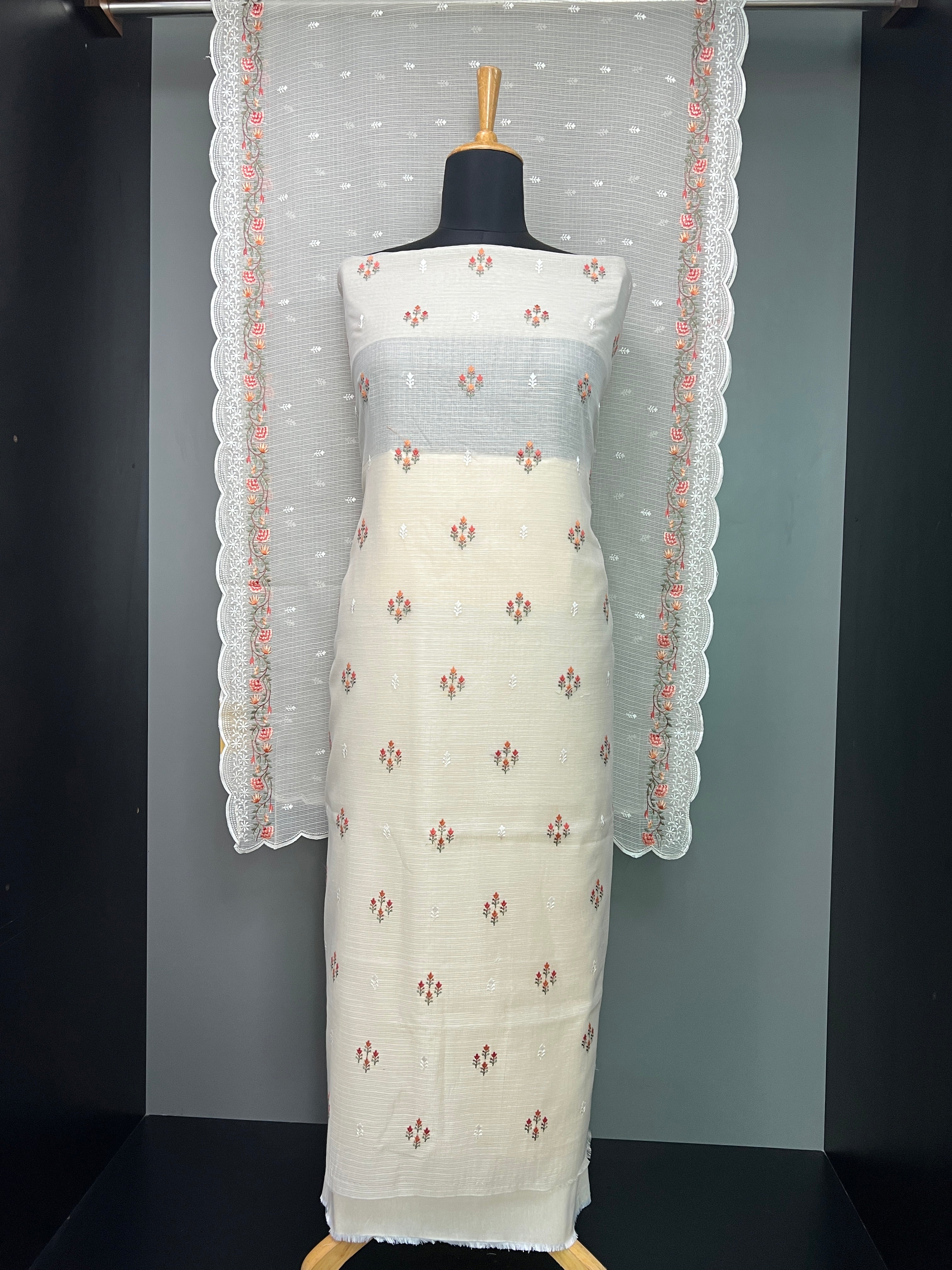 • Style: Scattered White Thread Embroidery Butta, Multi-Color Floral Embroidery Detailed Borders, Scallop Edges