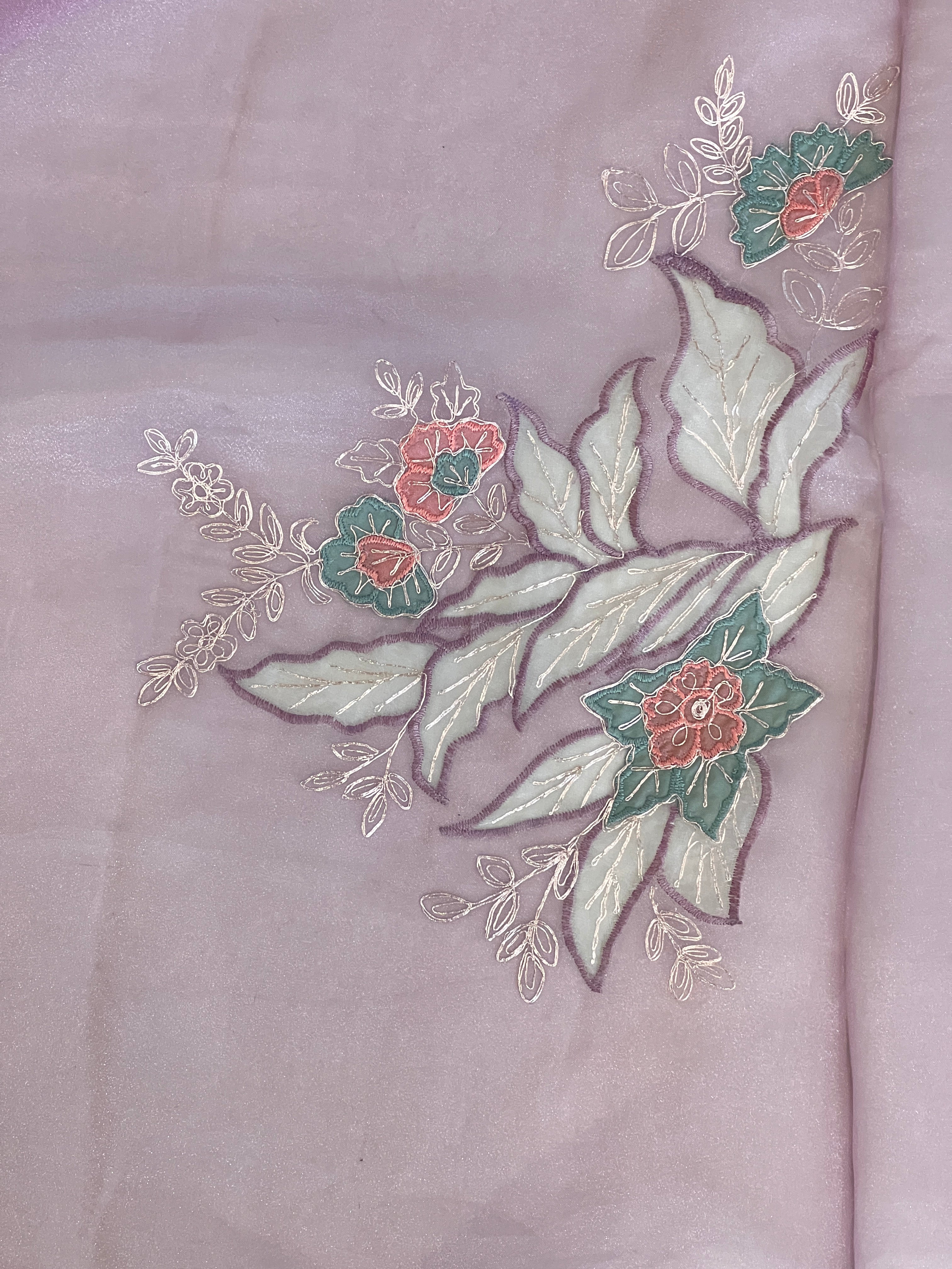 Multi-Colour Floral Applique Detailed Shimmer Organza Saree | BLD1589