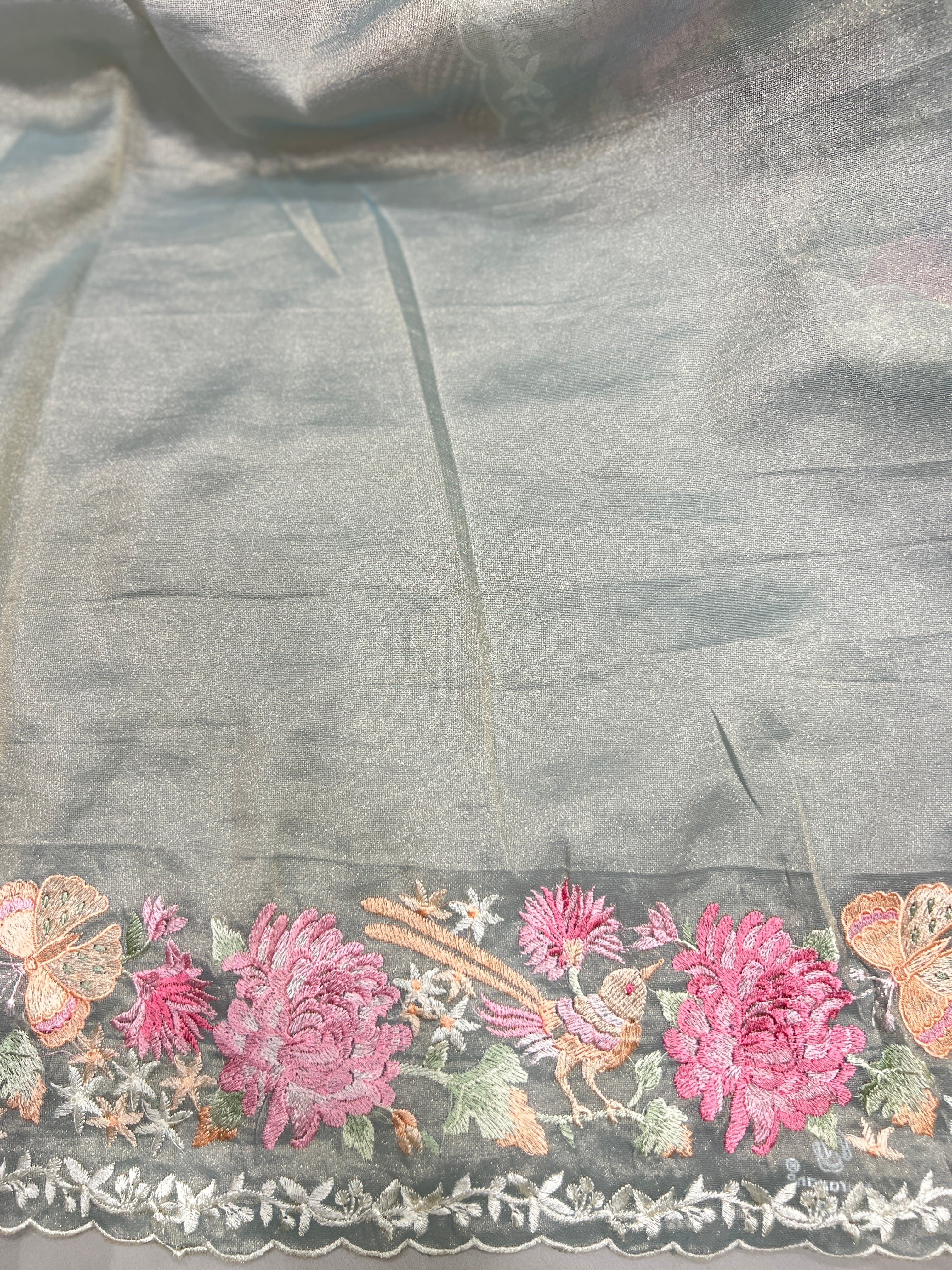 - Style: Multi-Colour Floral Embroidery Detailing, Scallop Edges