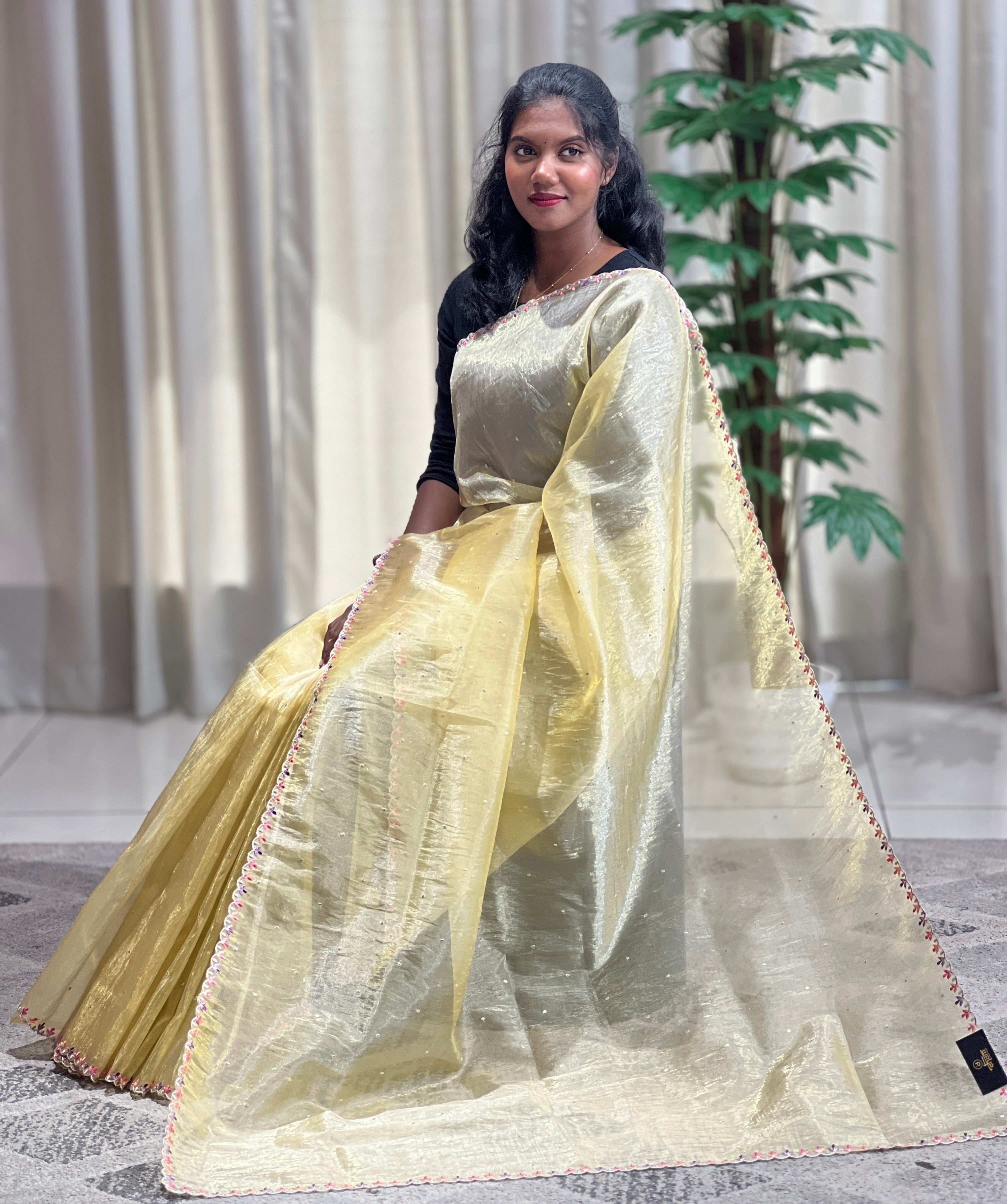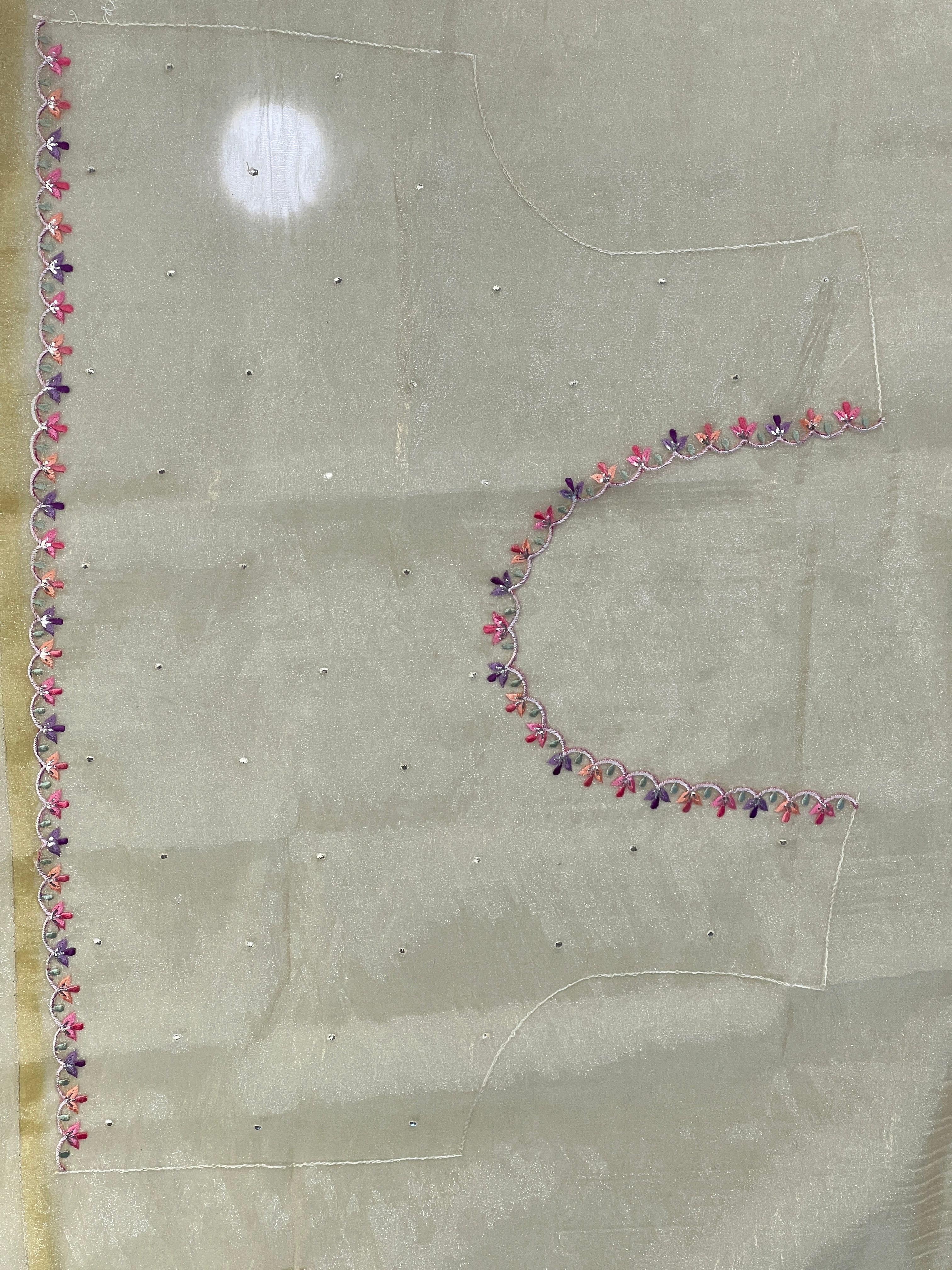 • Multi-Colour Floral Embroidery Patterned Glass Organza Saree | BLD465