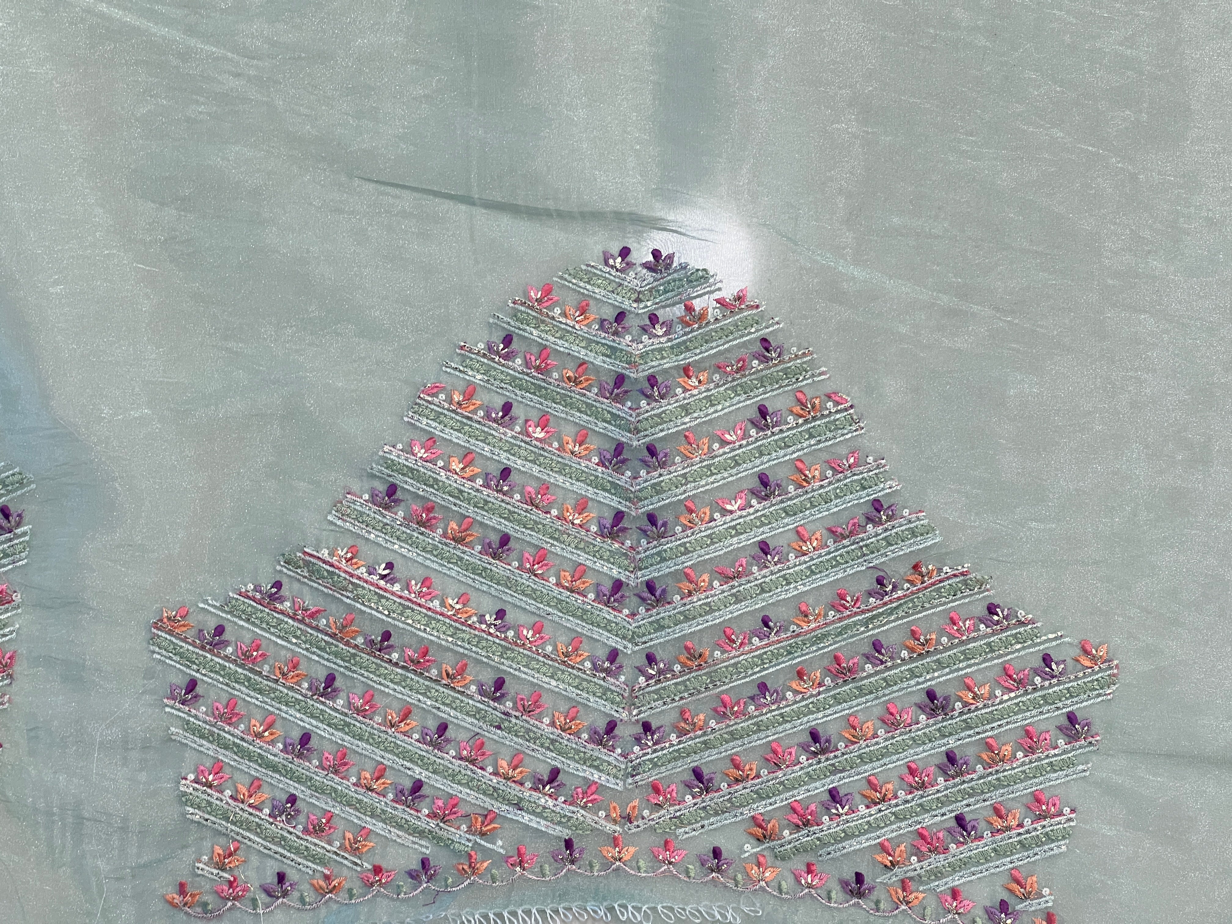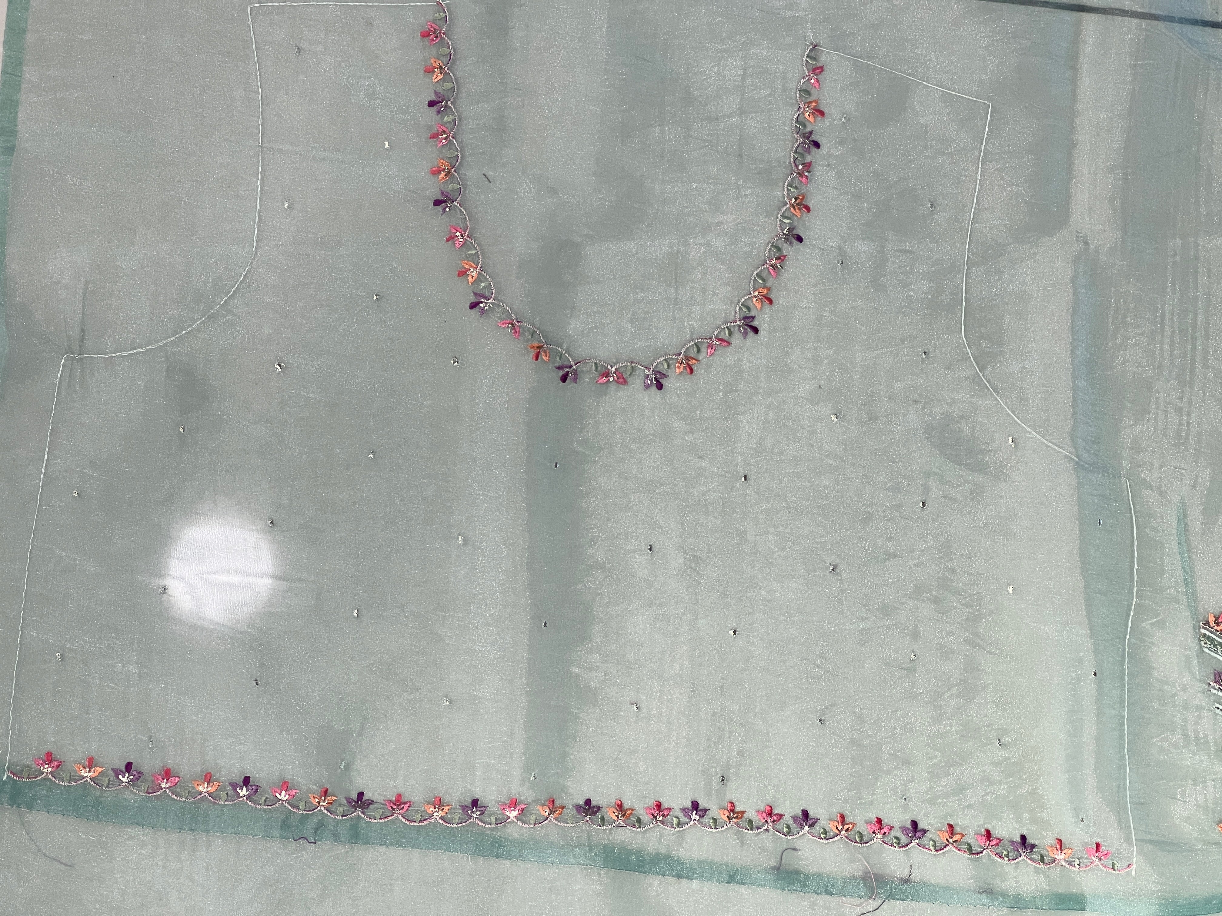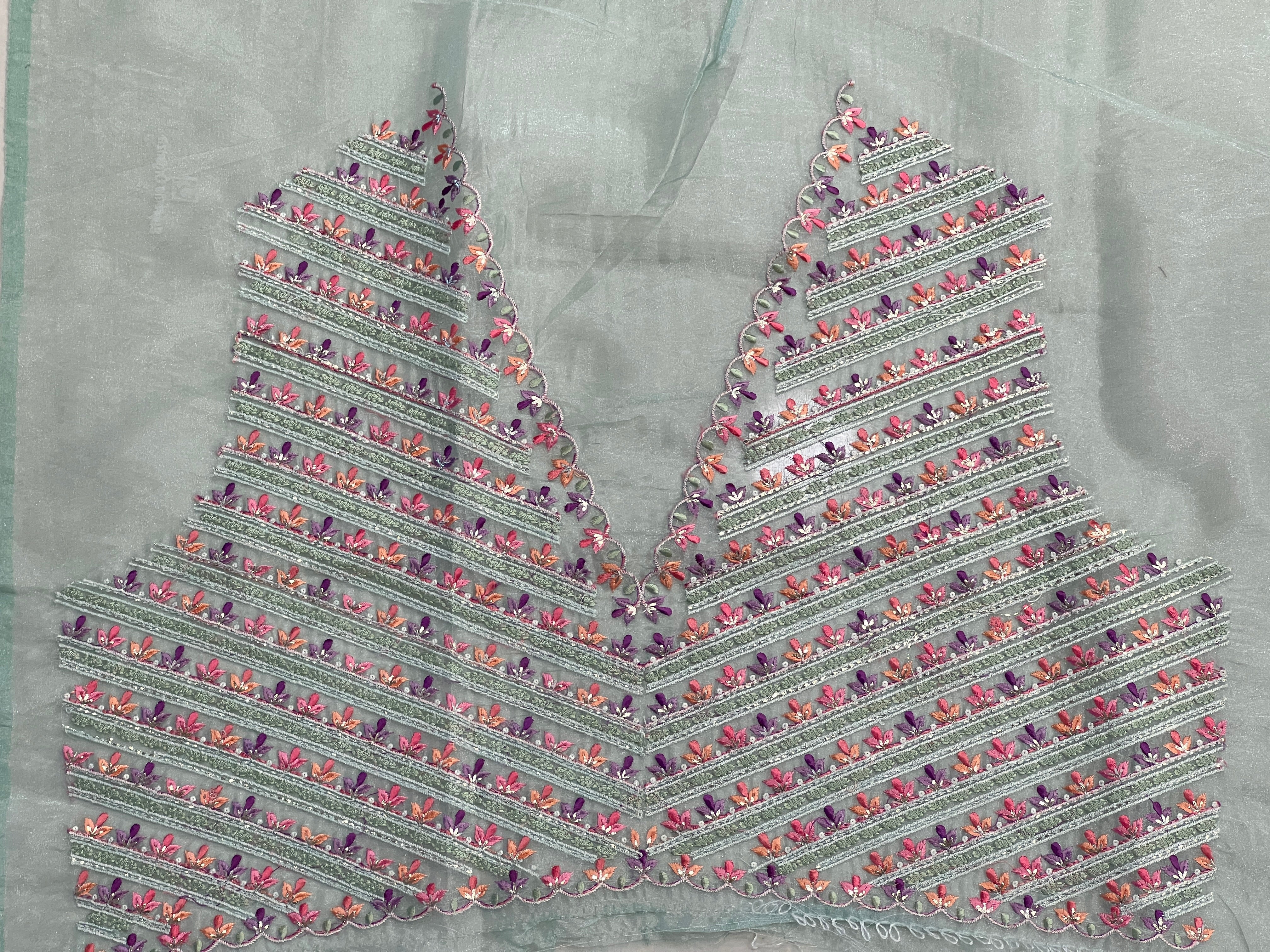 - Style: Embroidery Pattern, Multi-colour Thread Floral Border Detailing, Scallop Finish