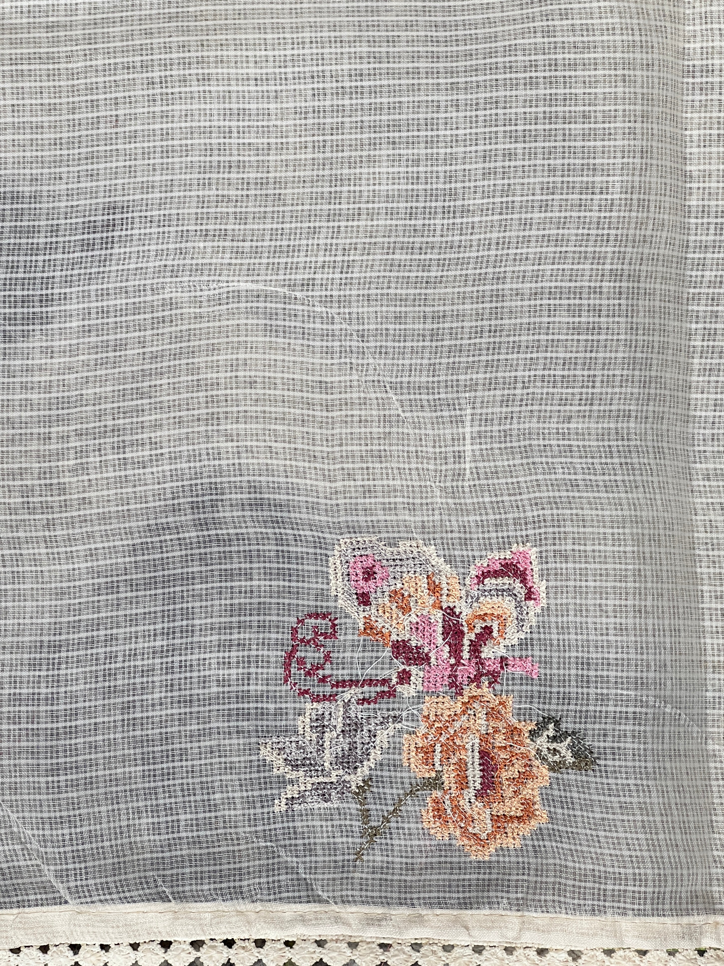 Multicolour Floral Machine Embroidery Detailed Silky Kota Saree | BLD1954