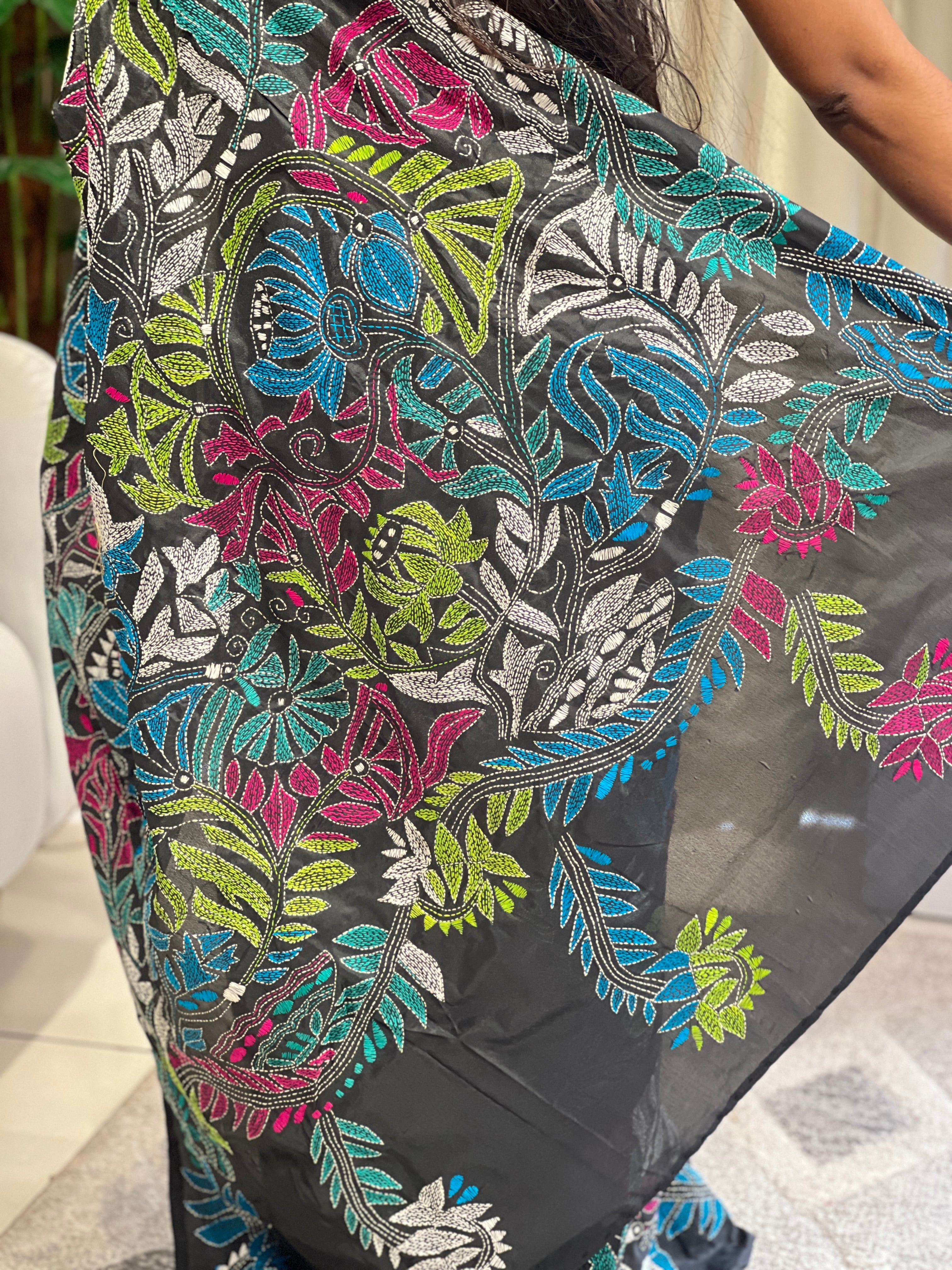 - Style: Scattered Embroidered Butta, Hand Nakshi Kantha Embroidery Detailed Borders & Pallu